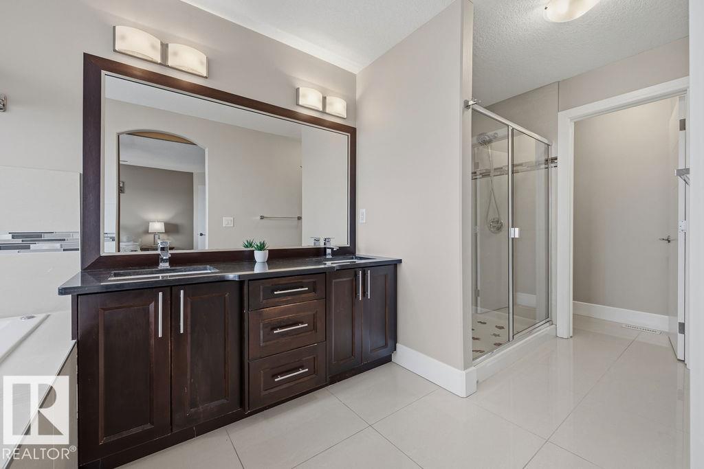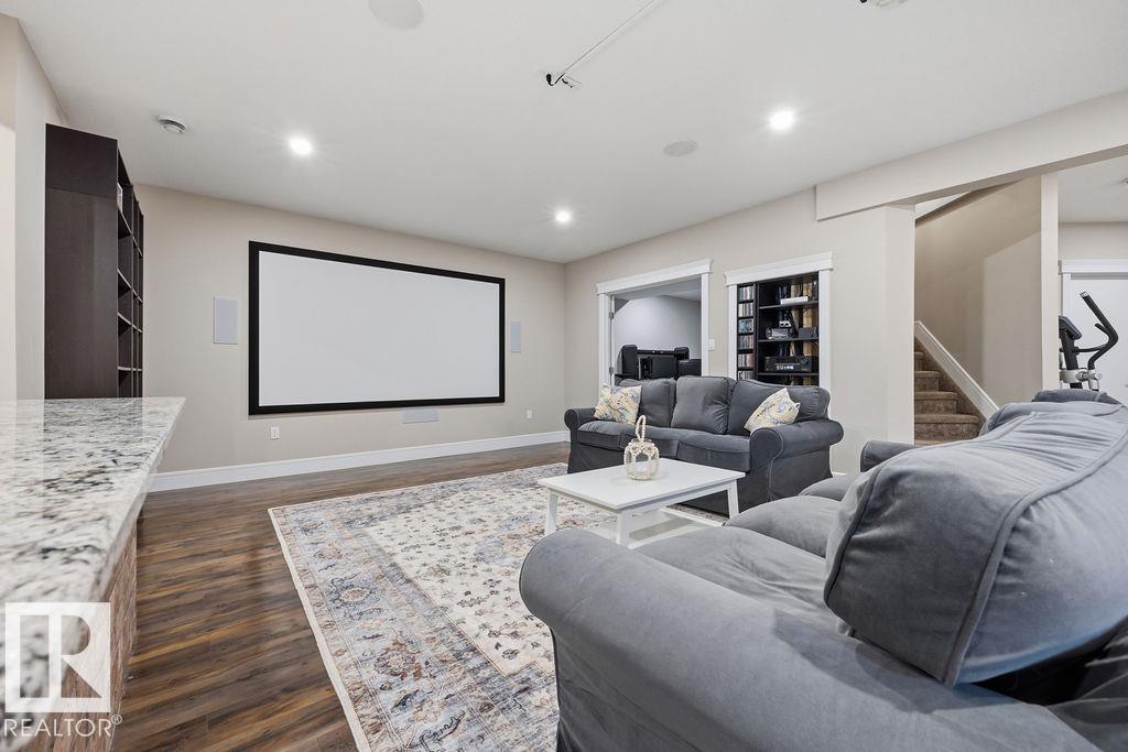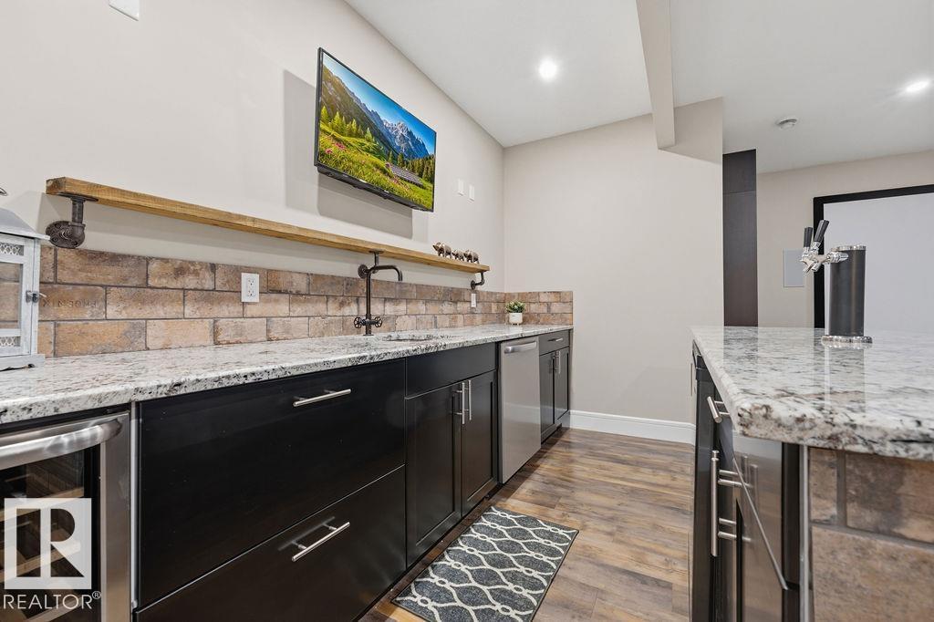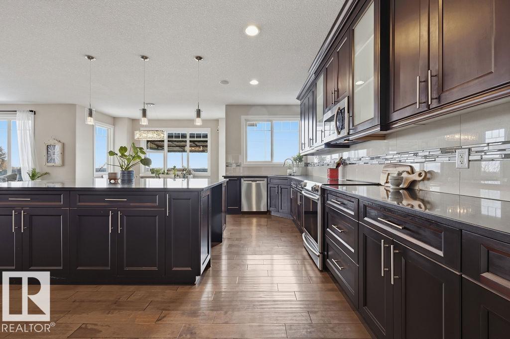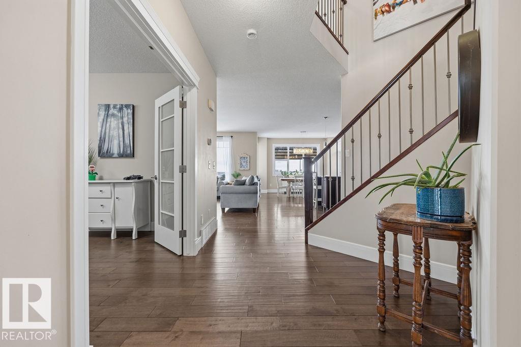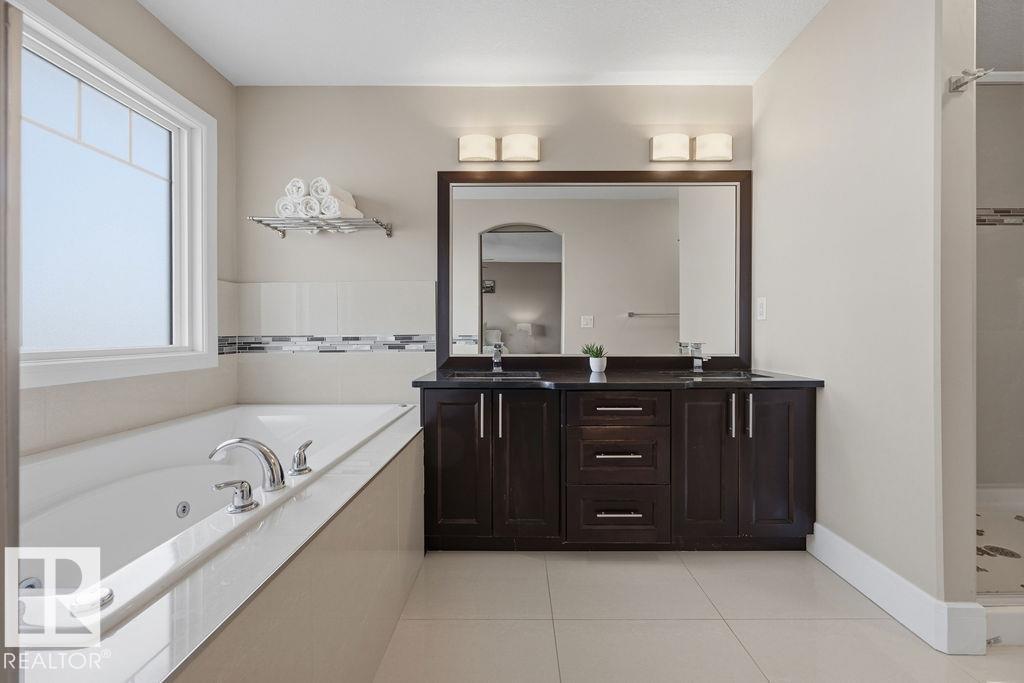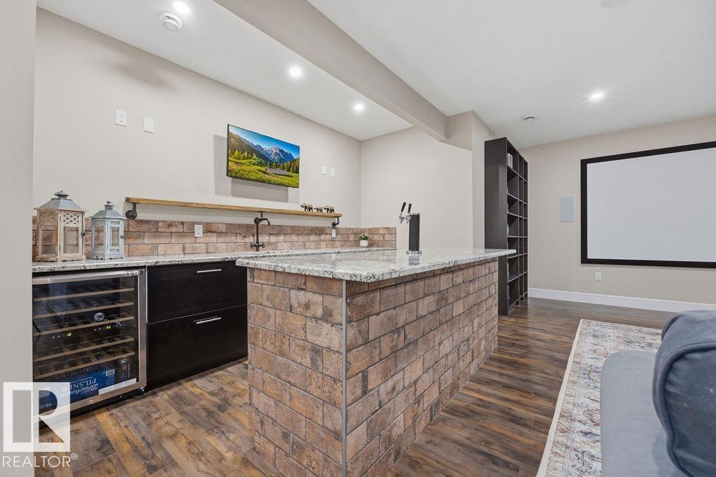 Welcome to this gorgeous 2-storey home in prestigious Royal Oaks! Perfectly situated near West Beaumont, and only minutes from Nisku, Leduc, the International Airport, and a short drive to South Edmonton Common. The main floor boasts an open-concept great room with gas fireplace and a dream kitchen featuring a GIANT ONE-PIECE GRANITE ISLAND, stainless steel appliances, and a walk-through pantry. Step out from the dinning room to a beautiful covered outdoor sitting area. Upstairs you’ll find a spacious vaulted bonus room above the triple garage, a luxurious primary suite with walk-in closet and spa-like ensuite, and 3 more generous bedrooms (2 sharing a Jack & Jill bath). Plus upstairs laundry! The developed basement delivers even more space, with a built-in wet bar, and a HUGE entertaining area with room for a games room and a gym. A full bathroom, and a 5th bedroom complete the basement. With over 4,350 sq ft of total living space, this home has plenty of room, premium finishes, and a fantastic layout! (id:63190)