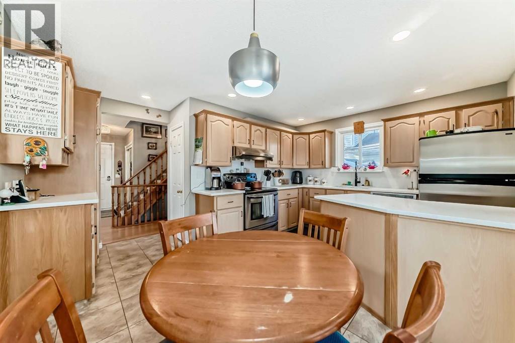 Here's a clean, meticulously maintained original-owner home that offers a rare chance to move into one of Airdrie’s most sought-after locations. Featuring 3 bedrooms and 2.5 baths, the layout is highlighted by a modern, updated kitchen with stainless steel appliances and ample workspace. The "hidden" value is in the mechanicals: newer windows, high-efficiency furnace with electronic air filtration, tankless hot water, and central A/C.Relax in the main bath’s soaker tub or cozy up by the stone-surround gas fireplace. The outdoor living space is equally impressive with a large composite deck (natural gas BBQ and fire table included!), a storage shed, and direct access to walking paths. Walking distance to both Public and Catholic schools, Genesis Place, and shopping. An investment in quality and the lifestyle your family deserves. Don’t miss out—contact your REALTOR® today. All showings are by appointment. (id:63190)