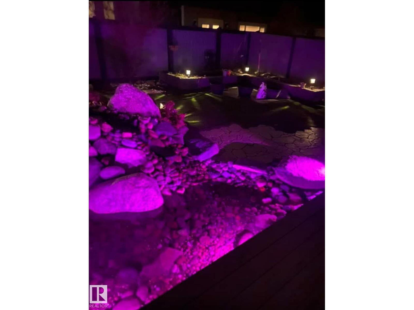 Nestled on a quiet cul-de-sac, this southeast-facing Summerwood home offers over 2,100sqft of bright, open living with style, comfort, and family functionality at every turn. The main floor features rich hardwood, a cozy gas fireplace, & a spacious living area filled with natural light. The kitchen impresses with granite countertops, stainless steel appliances, gas stove, and a corner pantry, flowing seamlessly into the dining area. A versatile open flex area adds room for a den or extra dining, alongside main floor laundry and a convenient 2-piece bath. Upstairs, enjoy a large family room with surround sound, three bedrooms including a generous primary with ensuite, plus an additional full bathroom. The fully fenced backyard boasts a composite deck and a water feature, complemented by another water feature at the front. Recent updates: hot water tank, water softener, garage door, and A/C for year-round comfort. Bright, spacious, and perfectly located—this home has it all. Some photos are virtually staged (id:63190)