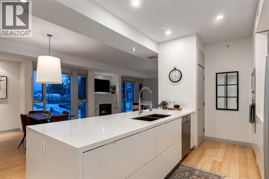Penthouse living awaits in this stunning, 3 bedroom, 3 bath home with over 1400sqft of thoughtfully designed living space! The open concept layout has 9 ft ceilings, floor to ceiling windows to bring in plenty of natural light and high end finishings throughout. The chef inspired kitchen features lacquered cabinetry, stainless steel appliances, quartz counters, and a large island with breakfast bar overlooking the dining and living rooms - ideal for entertaining. Step out from the dining room unto the balcony to enjoy the downtown, while your spacious living room is anchored by a striking marble-tiled gas fireplace. The primary bedroom has a 5 piece ensuite and an oversized walk-in closet with built-in organizers. 2 additional bedrooms are well proportioned - one with a walk-in closet - are conveniently located near 2 full bathrooms, perfect for sharing or guests. Insuite laundry and a titled stall in the underground parkade complete this home. Located within an easy walk to Marda Loop and it's many shops, restaurants and amenities, plus with a quick commute to downtown, this home is not to be missed! (id:63190)