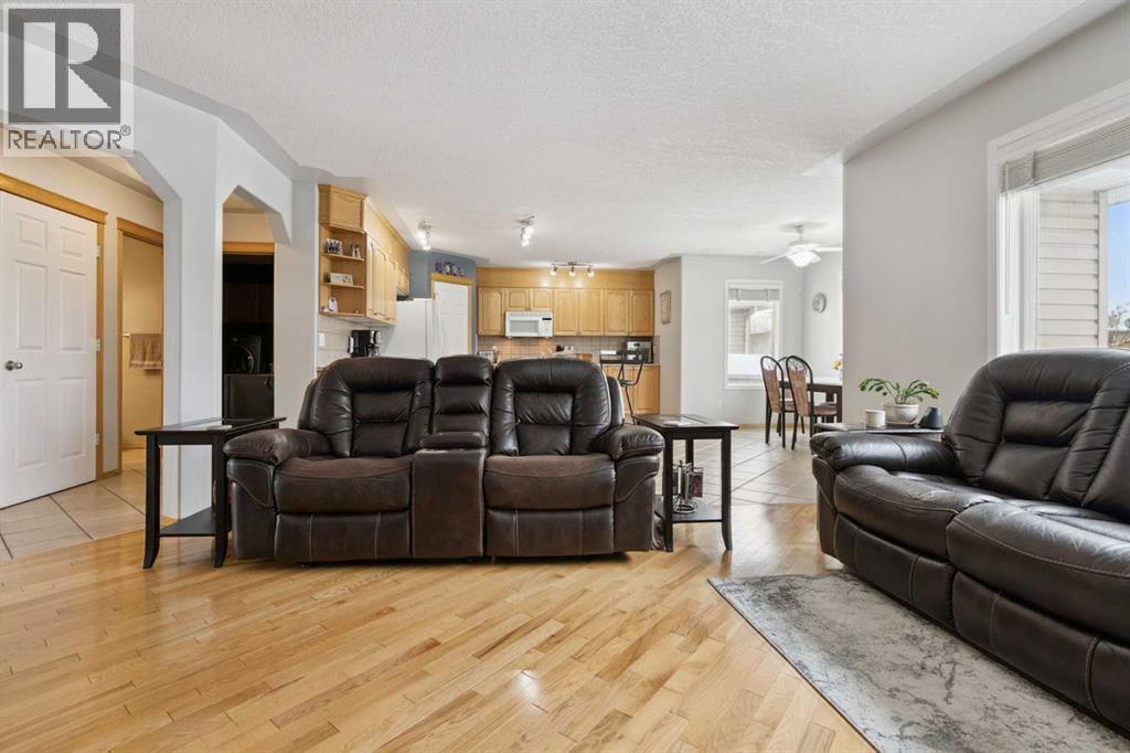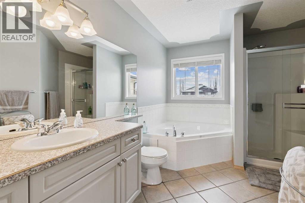 Nestled in the serene Cove community of Chestermere, this charming home offers a private retreat with exclusive access to a beach, playground, and the picturesque lake. With plenty of square footage and evident pride of ownership, this residence is meticulously maintained and truly one-of-a-kind. The main floor features an inviting layout, enhanced by large windows that flood the space with natural light, showcasing the light wood tones in the kitchen. You'll appreciate the abundance of counter space, complemented by more cabinets and cupboards than the average home, along with a convenient pantry for all your storage needs. The versatile living room allows for various configurations to suit your lifestyle, while the dedicated dining area is perfect for family dinners. Step outside to the south-facing patio and enjoy a beautifully blossoming garden and trees during the summer months. Upstairs, find the ideal setting for family movie nights or a play area for kids, with the bedrooms thoughtfully separated for privacy. Secondary bedrooms easily accommodate queen-sized beds and furniture, featuring built-in closets and drawers for added convenience. A full bathroom services this level, while the generous primary bedroom boasts a spacious walk-in closet and a luxurious ensuite. The fully finished basement adds even more value, featuring a large recreational area, an additional bedroom, and another full bathroom. New installs include; furnace, air conditioner and hot water tank. Don’t miss the opportunity to make this stunning home yours—contact your favorite agent today to schedule a showing! (id:63190)