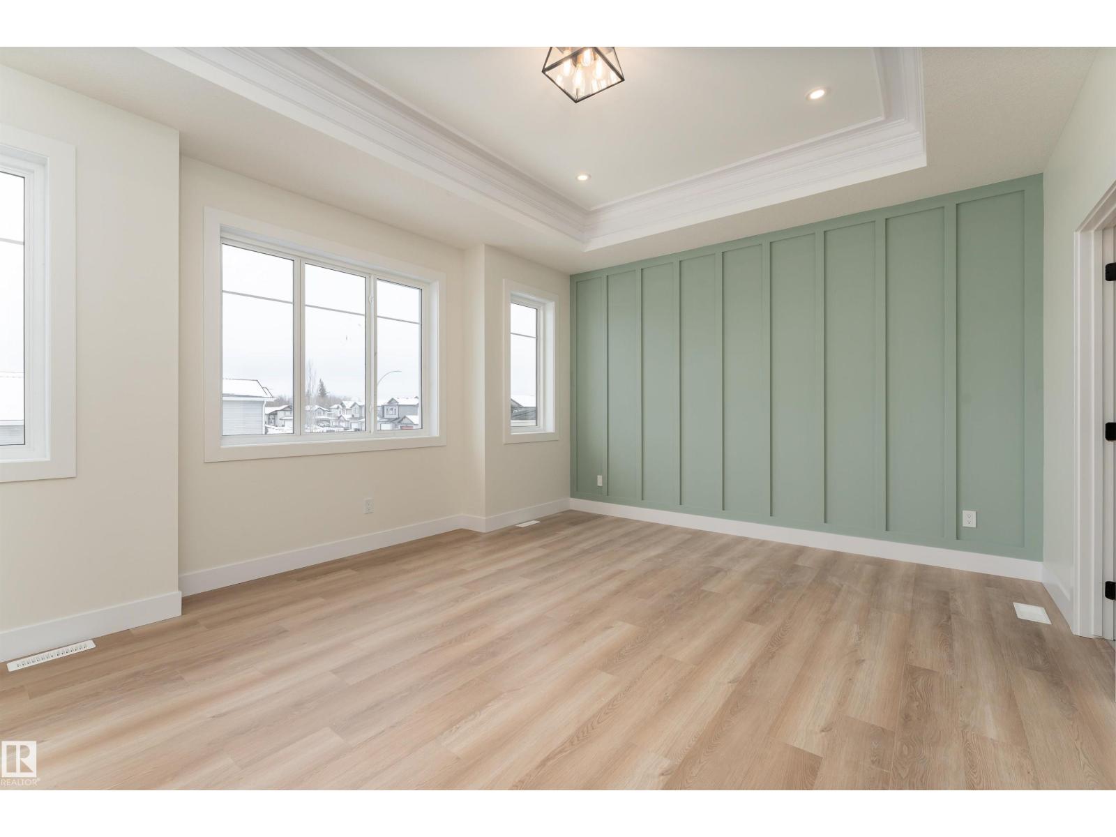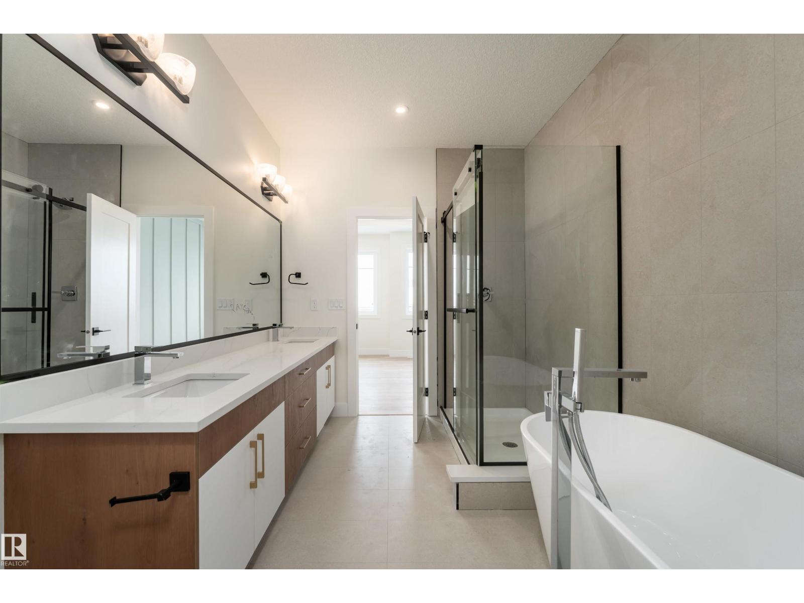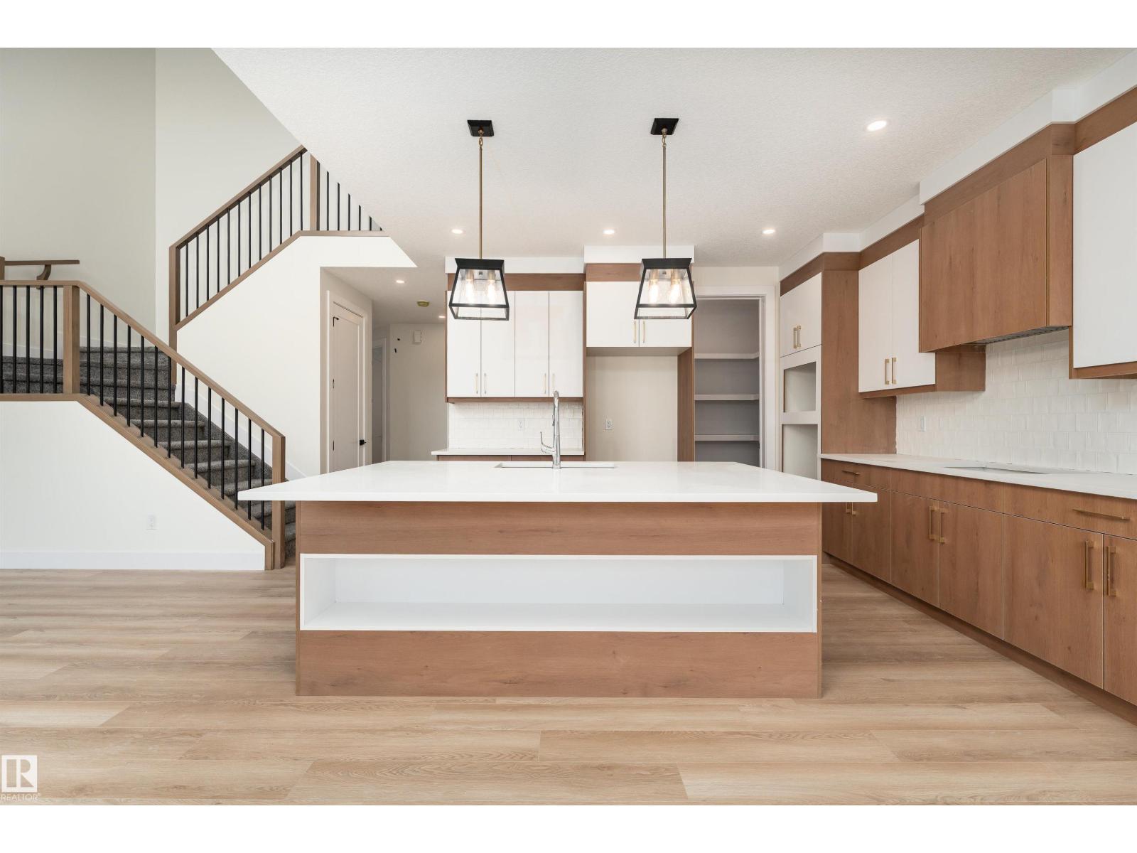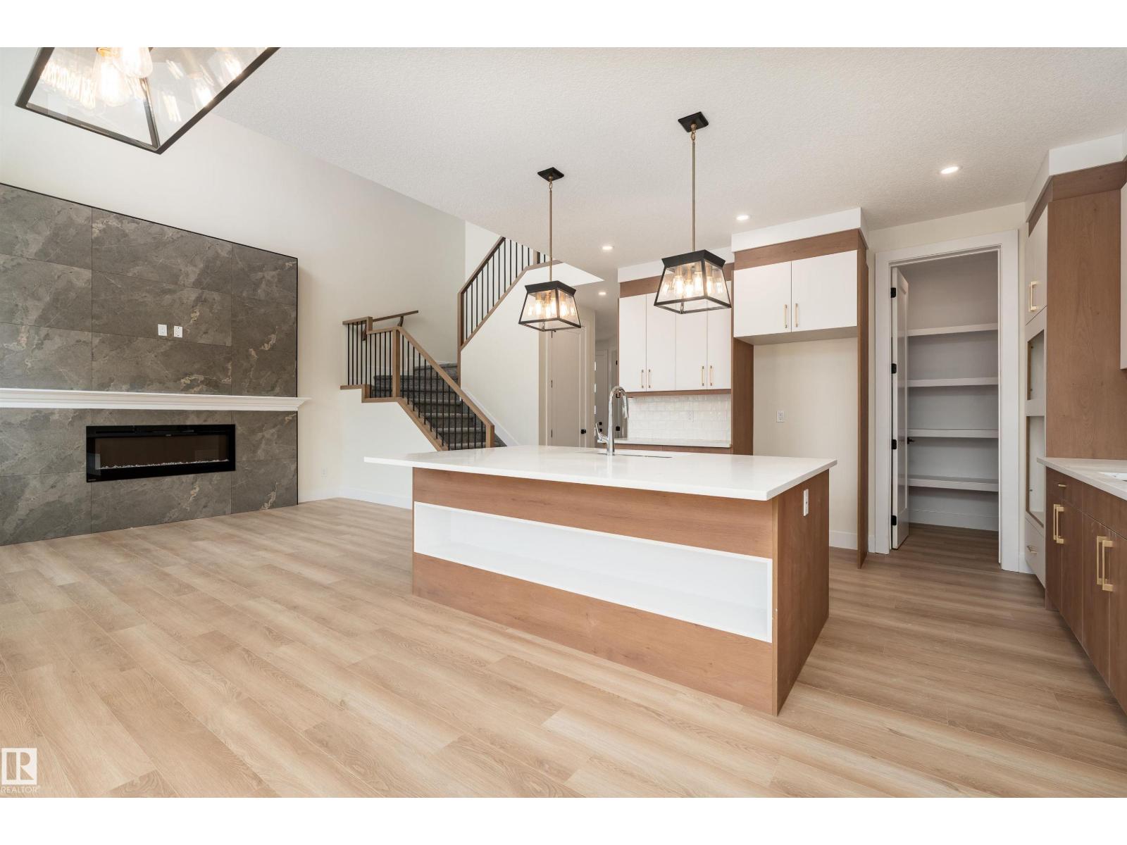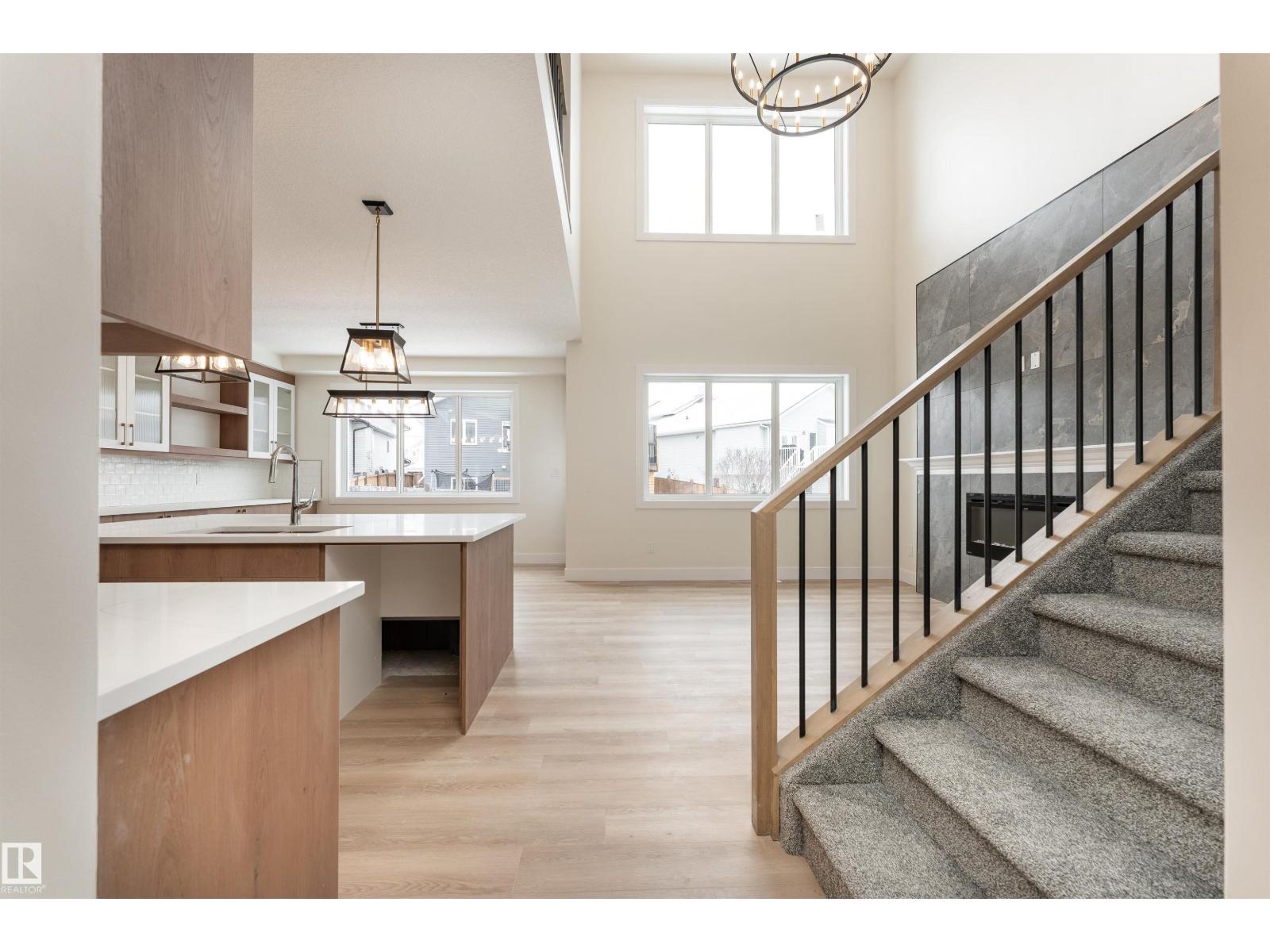 Bright, spacious, and thoughtfully designed, this brand new 2,145 sq ft two storey home in Gibbons offers modern family living with room to grow. The main floor features an open living room with a tile surround fireplace, a spacious dining area, and a modern kitchen with a large island and pantry, all filled with natural light from oversized windows. A versatile den or bedroom and a convenient two piece bathroom complete the level. Upstairs offers a generous family room, a private primary suite with a five piece ensuite and walk in closet, two additional bedrooms, a four piece bathroom, and upper level laundry. The unfinished basement with a separate side entrance provides excellent future suite potential. An oversized attached triple garage, spacious yard, and east facing front with a west facing backyard deliver incredible sunlight throughout the day. Located near playgrounds, schools, shopping, and public transportation, this never lived in home is ready to be made your own. (id:63190)