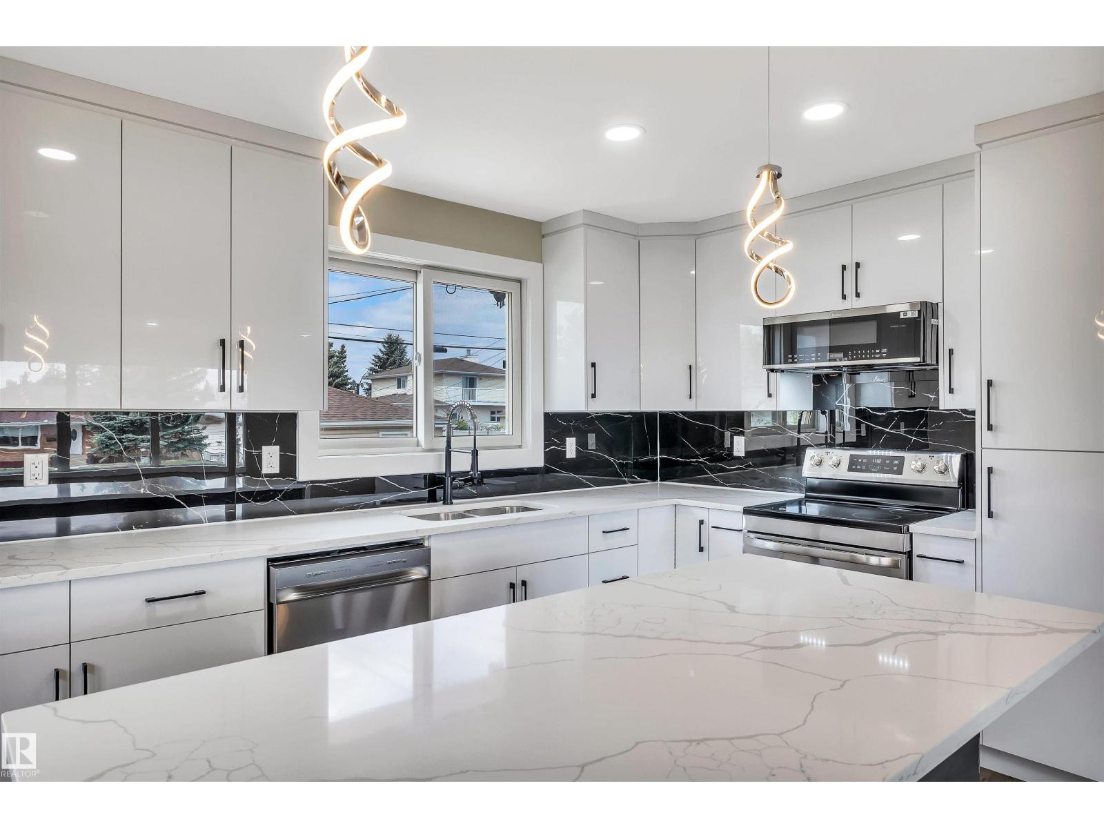 Killarney Bungalow Re Mastered Top to Bottom Throughout Welcoming Entrance. 2 + 2 Bedrooms 2 Full 4 Piece Bathrooms. All New Gourmet Kitchen w/ High Gloss 2 Tone White / Grey Cabinetry / Working Island ,Quartz Countertops, Custom Backsplash, Millwork. Full Stainless Appliance Package, Fixtures , Lighting. Large Open Plan Living Room w / Linear Fireplace, Pot Lighting Throughout .2 Generous Bedrooms. Attention to Detail 4 Pce Bath with All new Millwork, Fixture to Ceiling Tile. Basement Features 2 More Supersized Bedrooms, Family Room, Full Egress Windows 2nd 4 Piece Bathroom. Large Family Room w/ 2nd Fireplace. Complete Vinyl Plank Flooring, Ceramic Tile New Plumbing, Electrical Wiring & Panel. All New Interior- Exterior Doors, Baseboards, Casings. New Basement Widows , Upgraded Main Floor. Single Detached Garage, Privacy Chain Link Fence on 2 Sides. Absolute Move In Ready. Acquisition Cost Plus Renovations Far Exceed Asking Price ! Quiet Loc. Motivated 12904 - 95 A Street (id:63190)