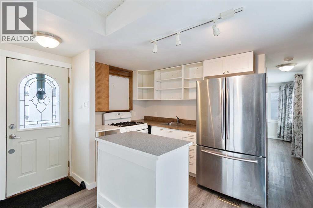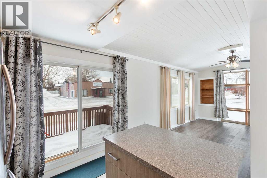 Settle into a simple and more affordable way of living in this cozy 1 bedroom, 1 bathroom mobile home on a corner lot (leased). The kitchen with center island is open to the dining and living area which is further enhanced by an abundance of windows. You're plants will love it here! A sliding patio door provides convenient access to a sunny south-facing deck (14'x8'), that is perfectly situated to avoid those NW winds. Down the hall is a 3-piece bathroom with newer stacked washer/dryer. The primary bedroom is located at the back of the home and again offers large windows for abundant natural light. Included is an insulated storage shed (16'x10') and this lot offers off-street parking (allowing for 2 vehicles). In a world of over-consumption and rising costs, this is a refreshing alternative that offers simplicity, affordability, and low maintenance! Perfect for buyers eager to customize and make it their own through a little sweat equity. Here you can enjoy the comfort of community living in this well-situated mobile home park. A short stroll brings you to local restaurants, shopping, and your favourite spots for morning coffee, while offering easy access to Highway 2A for an easy commute to neighbouring Town's/Cities. It’s a lifestyle that’s relaxed, connected, and convenient. Lot fees are between buyer/tenant and landowner and will be confirmed via a lease agreement but are expected to be $460/month. *Living room image has been virtually staged* (id:63190)