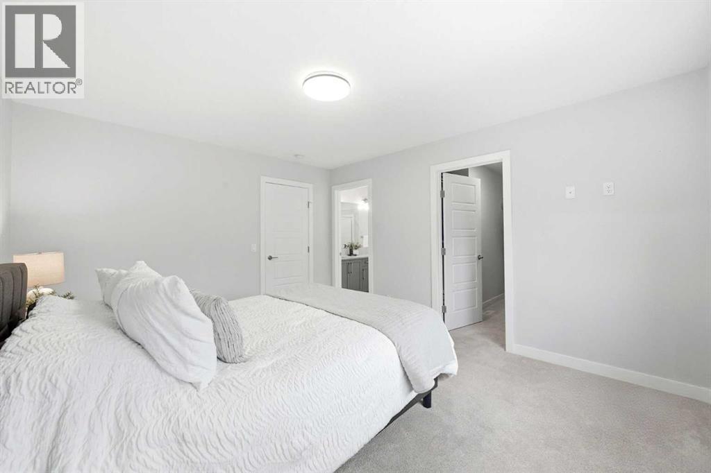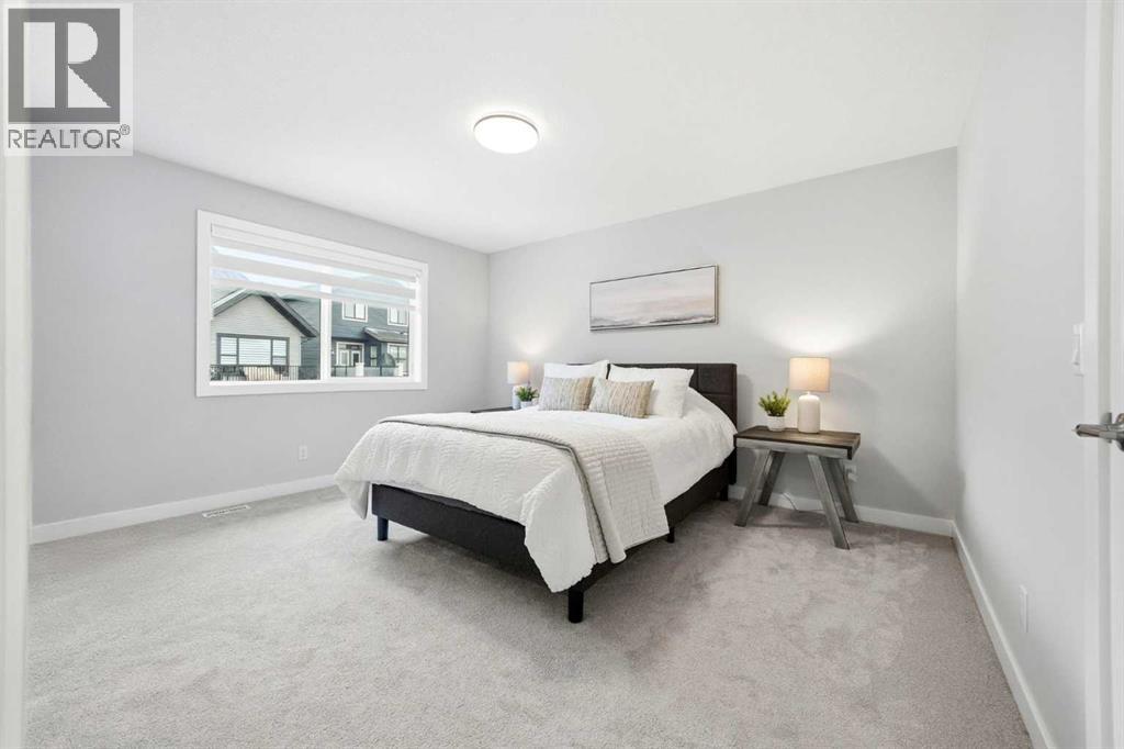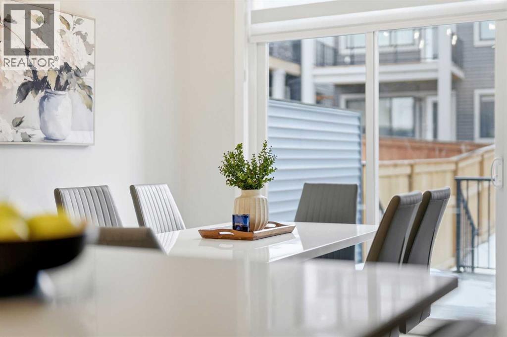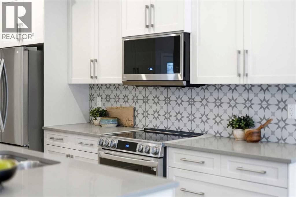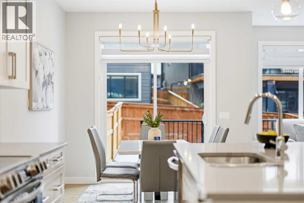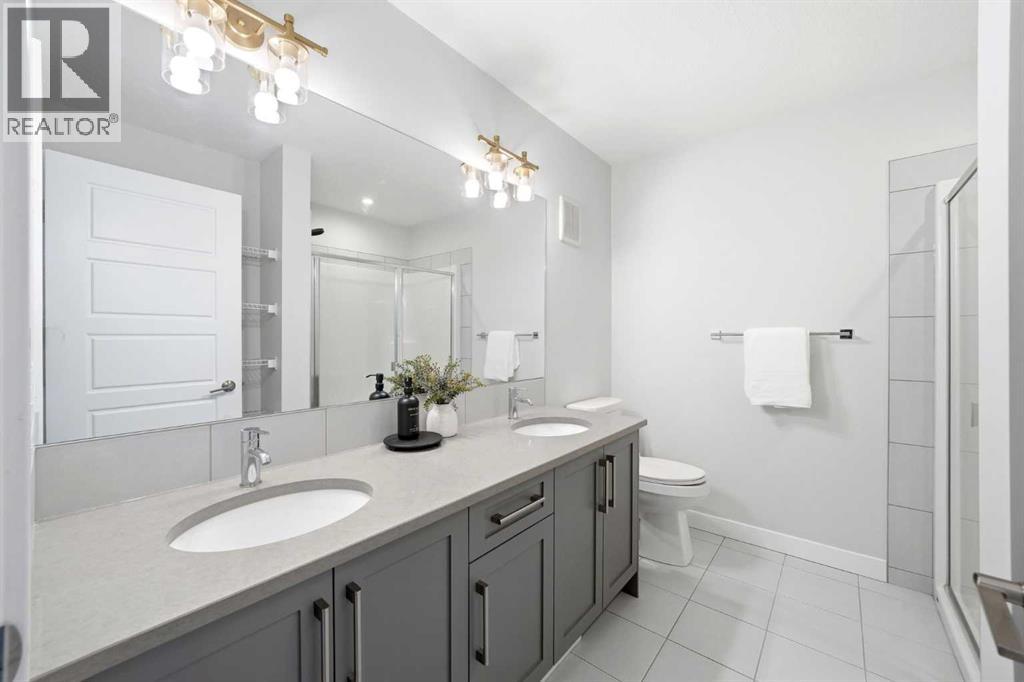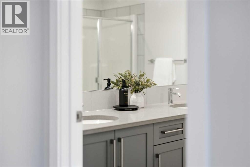 This duplex-style property is a rare offering in the elevated community of Precedence in Cochrane. Surrounded by stunning hillside views and kilometres of scenic walking paths, this neighbourhood seamlessly connects you to nature—leading throughout the community, down to the winding Bow River, and over to the popular Spray Lakes Recreation Centre. This location truly has it all. Offering tremendous value, this home is ideal for first-time buyers or those looking to downsize, complete with the convenience of a double attached garage. Step inside and immediately appreciate the gorgeous engineered hardwood flooring that flows throughout the main floor. The kitchen is bright, modern, and timeless, featuring crisp white cabinetry, stainless steel appliances, quartz countertops, a large island perfect for entertaining, and a walk-in pantry providing ample storage. The living room is anchored by a stylish electric fireplace, creating a warm and contemporary focal point. With plenty of space for family gatherings, the dining room also offers direct access to the large west-facing backyard. A stylish open railing leads you to the upper level, where thoughtful design continues with a walk-in laundry room, two additional bedrooms or office spaces, and a full bathroom. The primary bedroom serves as a peaceful retreat, perfect for unwinding at the end of the day. It is complemented by a luxurious ensuite featuring dual sinks, quartz countertops, a spacious shower, and additional shelving, while a walk-in closet completes this well-appointed space. Outside, the newly built oversized composite deck is a standout feature—designed for durability and low maintenance, with a charming brick patio just off the deck that creates the perfect extension for outdoor lounging or entertaining. The yard has been thoughtfully finished with low-maintenance rock, allowing you to relax and enjoy the outdoor space all season long. This home is truly turn-key, complete with custom window coverings an d wand-controlled blinds throughout. The lower level is undeveloped and ready for your future vision, with a bathroom rough-in already in place. Don’t miss your opportunity to own this beautiful home in one of Cochrane’s most desirable communities—schedule your showing today! (id:63190)