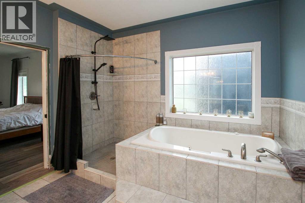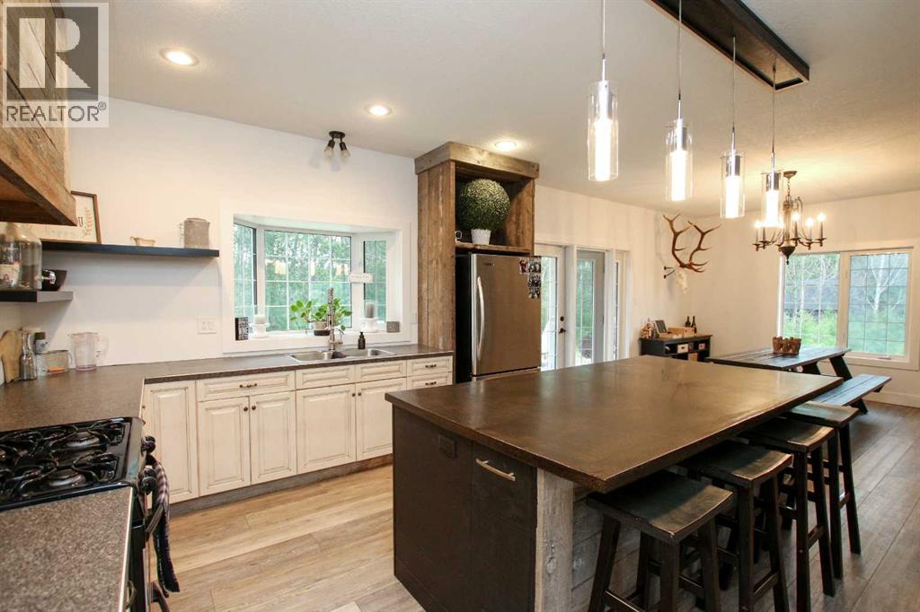 2,316 SQ. FT. BUNGALOW LOCATED ON 12.16 ACRES JUST MINUTES EAST OF SYLVAN ~ POTENTIAL TO SUBDIVIDE ~ OVERSIZED TRIPLE DETACHED GARAGE + NUMEROUS OUTBUILDINGS ~ SET UP FOR HORSES W/CORRALS, FENCING, SHELTER & WATERER ~ 42' x 7' covered front veranda welcomes you to this well cared for home ~ Open concept main floor layout is complemented by vinyl plank flooring and large windows offering tons of natural light ~ Double sided stone fireplace with a raised hearth and mantle separate the living and dining rooms ~ The kitchen offers a functional layout with plenty of cabinets, ample stone counter space including a large island with an eating bar, window above the sink overlooking the backyard and a large walk in pantry with floor to ceiling shelving ~ Easily host large gatherings in the dining room with garden doors access to the rear patio ~ The private primary bedroom is a generous size and can easily accommodate a king size bed with ample room for a sitting area, has a spacious walk in closet with built in shelving and a 5 piece ensuite with dual sinks, a walk in shower, and a jetted soaker tub ~ 3 additional bedrooms are all a generous size and have ample closet space ~ Updated 4 piece bathroom is centrally located, has a soaker tub, glass doors and a tile surround ~ Laundry is located in it's own room and has built in cabinets and a folding counter ~ Mud room has a separate entry with easy access to the triple detached garage and driveway ~ Treed fire pit area has a bunk house with power and large windows ~ Double detached garage/shop has an overhead door, and power ~ Horse barn, corrals, shelter and riding arena with horse waterer ~ Horseshoe pits, zip line and a huge dirt bike track ~ Preliminary subdivision plans have already been discussed and mapped with the county, showing potential for up to 6 acreages or 16 smaller parcels (subject to county approval). A solid opportunity for investors, developers, or buyers looking to establish a business or multi-use proper ty ~ Located in Valley Meadows subdivision, just minutes east of Sylvan Lake with pavement to the driveway. (id:63190)