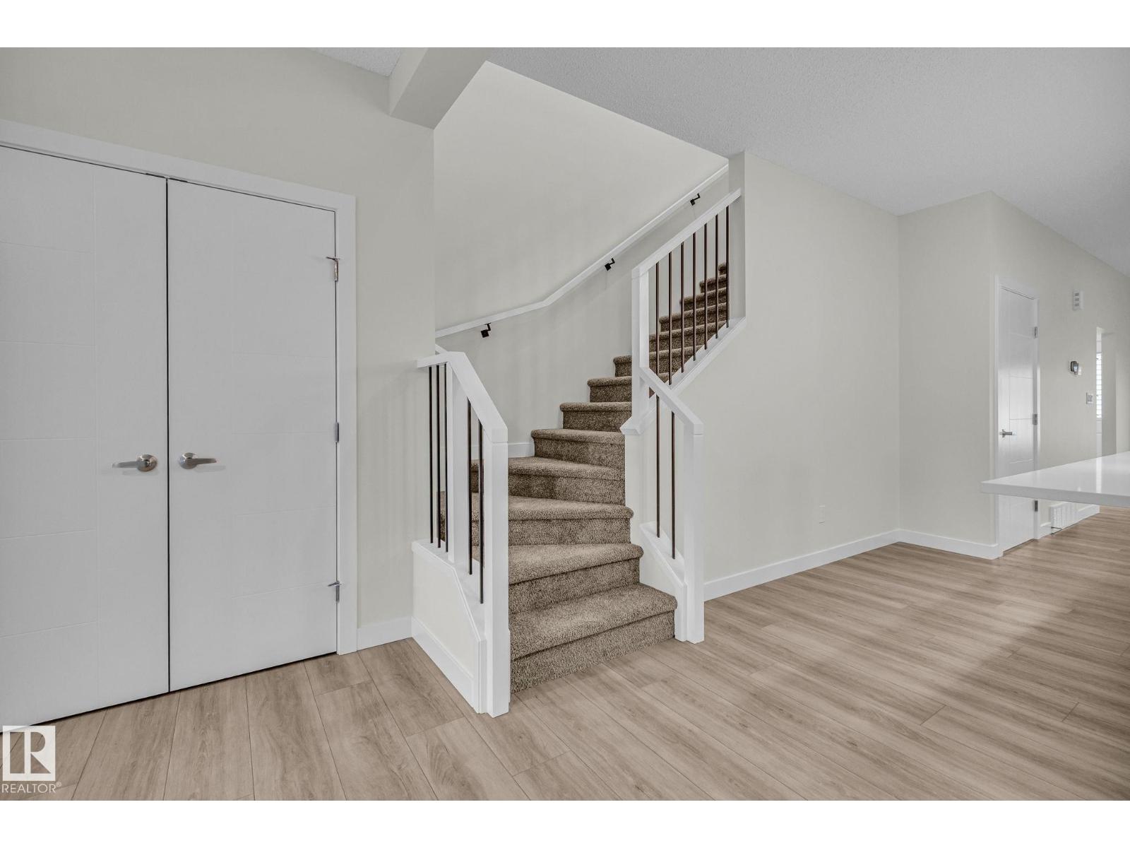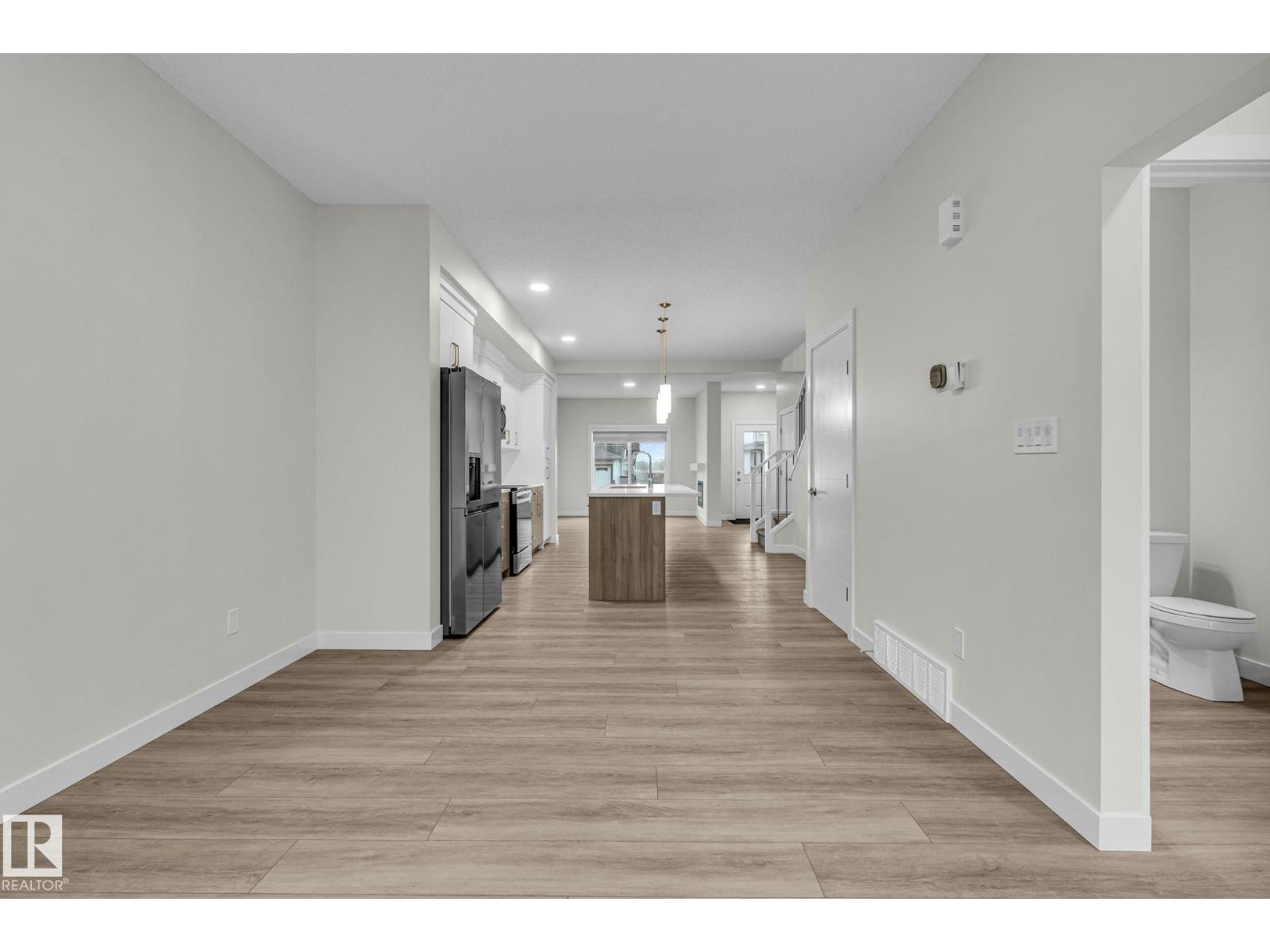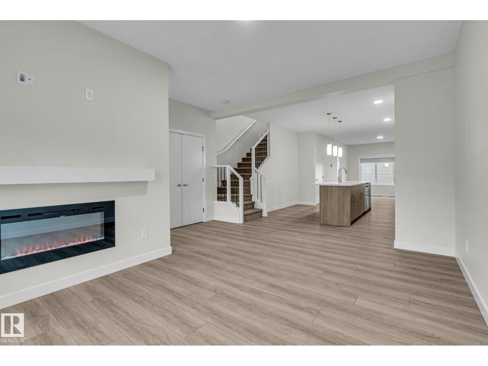 BLACKSTONE IS WHERE YOU WANT TO LIVE! This OUTSTANDING 3-bedroom/2.5 bathroom half-duplex home provides over 1,400 sf of coveted family living. The main floor features 9' ceilings, a HUGE Center island with provision for a built-in microwave, a breakfast bar island top, UPGRADED kitchen back splash, QUARTZ counters, soft close cabinets, wood/metal railings, LVP flooring, pot &pan drawers, a GREAT ROOM with a fireplace, and custom window coverings throughout! The upper level includes a space for a washer/dryer and is highlighted by a large Master Bedroom with a walk-in closet and a full ensuite bath with 2 sinks. The home also includes a SEPARATE SIDE ENTRANCE, 9' foundation walls, R/I for a 2nd furnace and R/I for a future laundry room, wet bar plus an egress window for a future bedroom. Outside you are treated to 10'x10' concrete patio, a gas line for BBQ, and a 19.5' X 22' parking pad. Close to walking trails and a playground...THIS IS THE ONE YOU HAVE BEEN WAITING FOR! (id:63190)