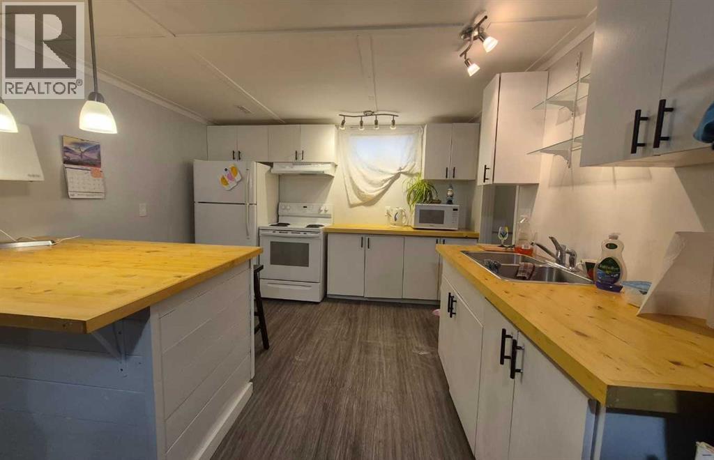 This Olds property gives you just a bit more than average! Situated on a HUGE 65ft x 120ft oversized lot, it offers a south-facing fenced backyard with a garden area waiting for your spring planting. Parking galore – a front driveway for two, (or RV)additional rear off alley parking for two more, plus a double detached garage. A strip of Town greenspace to the west means no sidewalk snow clearing, Built in 1970, this solid home has been well maintained and upgraded where needed. Constructed to last, it includes copper wiring and plumbing, a 10-year-old asphalt shingle roof, and updated laminate and lino flooring. The main floor offers excellent natural light throughout, a spacious kitchen and eating area with a brand-new dishwasher, a large front living room, two comfortable bedrooms, and an updated 4-piece bath. A bright four-season south-facing back room doubles as a laundry space with views of the yard—perfect for keeping an eye on kids or pets. Washer and dryer included.Downstairs, you’ll find a fully developed basement featuring a comfortable family room, a 3rd bedroom with a large egress window, a second full 4-piece bath, and a handy kitchenette area. There’s also a flex/hobby room with a closet that could easily be turned into a 4th bedroom (add a larger window.) The utility room is generous in size, with a newer furnace and a 3-year-old hot water tank.Nestled in an established Olds neighborhood, close to amenities like parks, shops, and the hospital, this home is built to last and ready for your personal touch. This is the kind of property that continues to offer lasting value and room for your ideas as the years go by. From the comfort of your home take the I-Guide 360 virtual Tour and imagine yourself here today! (id:63190)