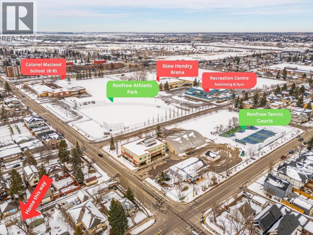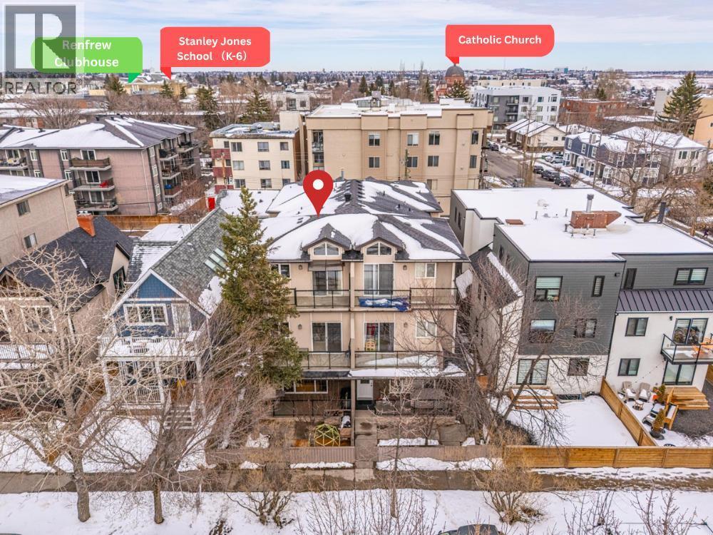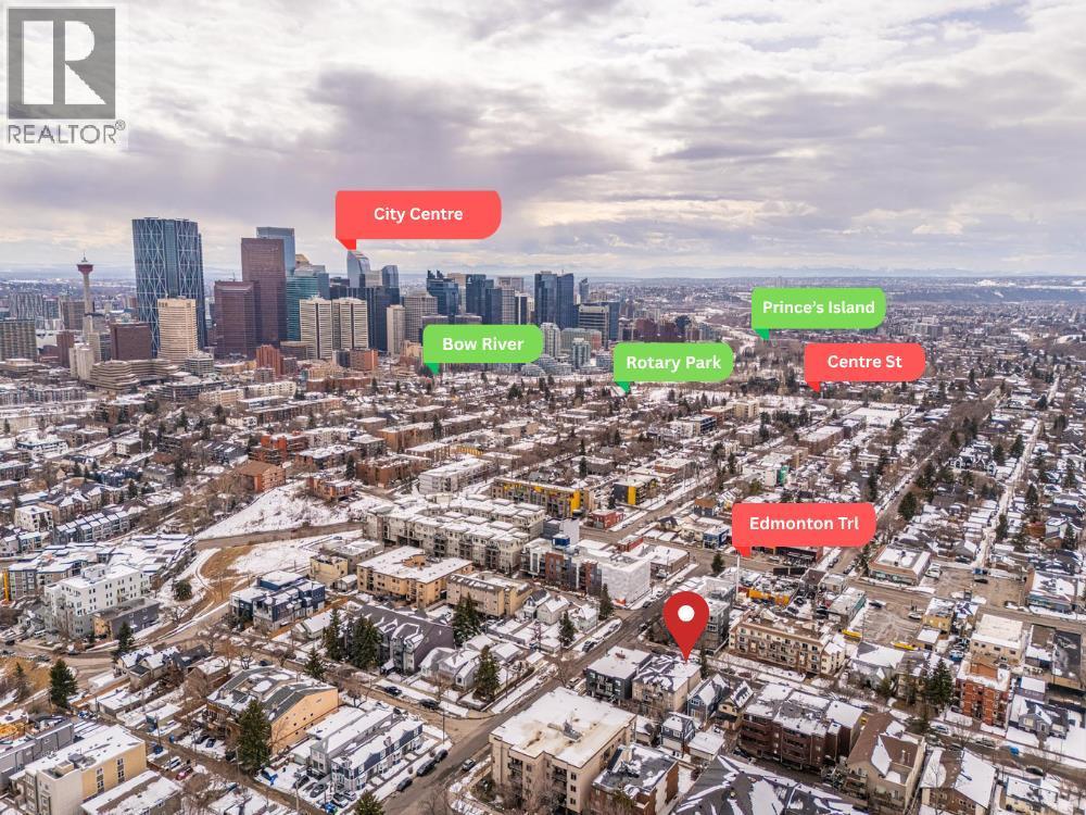 Location! Location! Location! Ideally situated within walking distance to Downtown Calgary, this property offers unbeatable convenience. Just one block away from a medical centre, cafés, restaurants, and everyday amenities, making urban living effortless and enjoyable. Designed with comfort and space in mind, the home features 9-foot ceilings from the basement through the second floor, creating an airy and open feel throughout. Both the second and third floors offer private balconies—perfect for enjoying your morning coffee with city views or unwinding in the evening with a glass of wine. This rare layout features 4 bedrooms and 3 full bathrooms above grade, ideal for growing families or flexible living arrangements. The main floor includes a versatile office/den that can easily function as a fourth bedroom, conveniently located beside a full bathroom. The spacious living room is highlighted by a cozy gas fireplace and large west-facing windows that fill the space with warm natural light. A front yard adds additional outdoor space for kids or relaxation. The second floor offers a bright and functional layout with a generous bonus room that connects to a glass-enclosed balcony, creating a perfect indoor-outdoor retreat. Two spacious bedrooms, a full bathroom, and a conveniently located laundry area complete this level. The entire third floor is dedicated to a luxurious primary retreat. Featuring vaulted ceilings, a private balcony, and a gas fireplace, this space is designed for comfort and privacy. It also includes a large walk-in closet and an impressive 6-piece ensuite with double vanity, soaker tub, and separate shower. Located in the desirable Renfrew community, this home is surrounded by fantastic amenities for families and active lifestyles. Enjoy easy access to the Renfrew Community Centre and nearby recreation facilities featuring swimming and fitness options, along with multiple parks, playgrounds, and green spaces. The area is well-served by excellen t schools, including Stanley Jones School (K–6), Colonel Macleod School (K–9, TLC program), and Crescent Heights High School (10–12), making it a great choice for families. Recent upgrades include a new hot water tank, microwave hood fan, radon mitigation system, as well as improved attic insulation and ventilation. (id:63190)