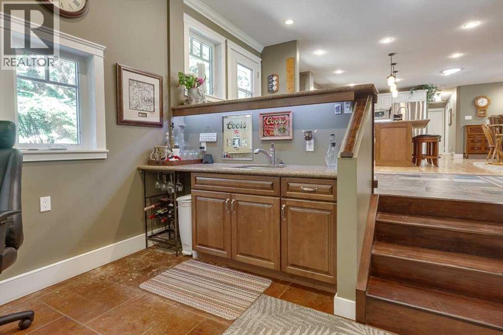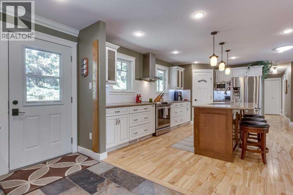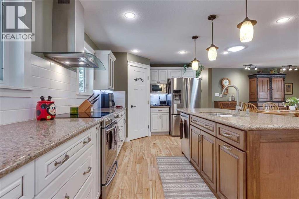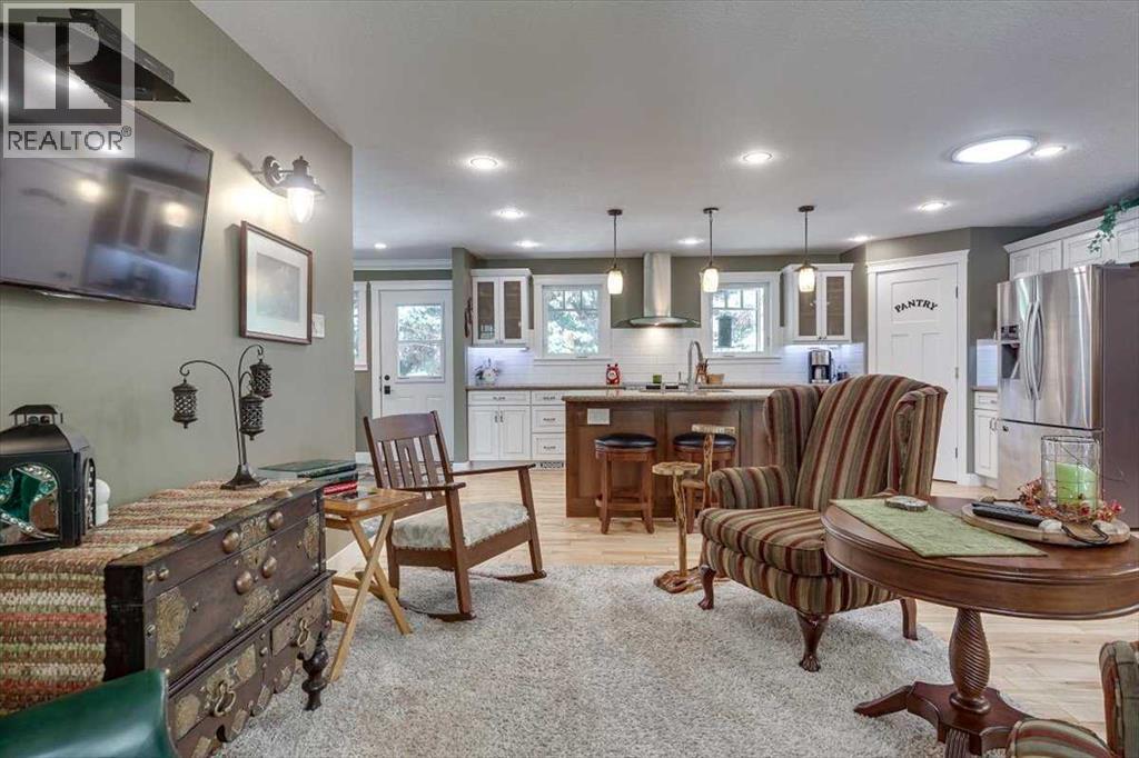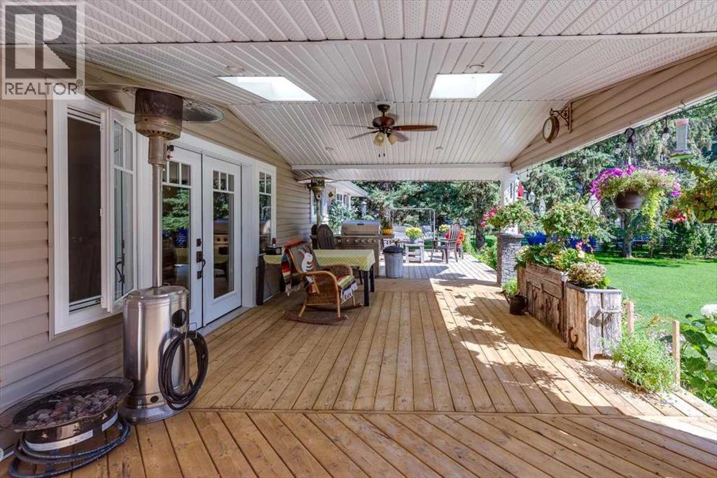Picture sunlit mornings on your covered deck, Gull Lake's tranquil shores mere steps away, inviting retired couples or recreational enthusiasts to downsize into pure serenity. This move-in-ready 2-bedroom bungalow on a generous 0.46-acre lot delivers open, welcoming spaces and modern comforts for year-round lake community bliss.Prime Lake Proximity.Walking distance to Gull Lake's public beach, playground, marina, boat launch, 9-hole golf course, and Jorgy's Hot Spot with licensed patio and live music—your gateway to adventure, just minutes from Sylvan Lake, Red Deer, and Rimbey Hospital.Chef-Inspired Heart of the Home.The 1,500 sq. ft. main level glows with maple hardwood and tile floors, flooded by large windows and skylights. The chef’s kitchen shines with solid maple KraftMaid cabinetry, soft-close drawers, stainless steel appliances, switched under-cabinet lighting, and a sprawling quartz island with sink and seating for four. Double patio doors flow to the 40’ x 14’ pressure-treated deck—half covered, with remote-controlled fan—for seamless indoor-outdoor entertaining.Expansive Primary Retreat & Versatile Spaces.Unwind in the primary suite's walk-in closet with built-in organizers, 3-piece ensuite, and walk-in shower. A second bedroom, half bath with storage, main-floor laundry with gas dryer, and an in-floor heated living room via breezeway—boasting large windows, natural light, built-in Murphy bed, and wet bar complete the level. The fully developed basement expands possibilities with a cozy sitting area, two flexible bonus rooms, 4-piece bath featuring jetted Jacuzzi tub, and a utility/craft room with sink.Oversized Heated Garage & Modern Upgrades.Attached 27’ x 27’ garage with 10’ ceilings, floor drain, and built-in storage, front concrete pad parks 3-4 vehicles or an RV. Enjoy energy-efficient upgrades like a new furnace with humidifier, central A/C, 50-gallon hot water tank (2021), reverse osmosis/iron filtration, dual sump pumps, enhanced ins ulation (R-60 attic, R-20 walls), PEX plumbing, updated electrical panel, LED lighting, motion-sensor security, surveillance cameras, and fiber optic internet.Sun-drenched and secure, this bungalow blends luxury, utility, and location for those craving lake-access leisure.Ready to step into your new chapter? Book a private showing today. (id:63190)