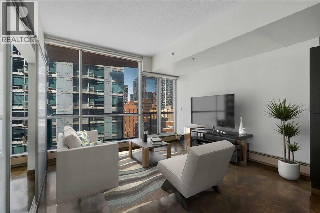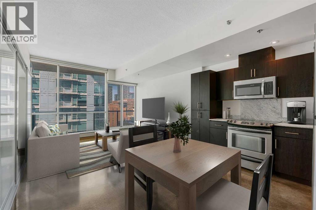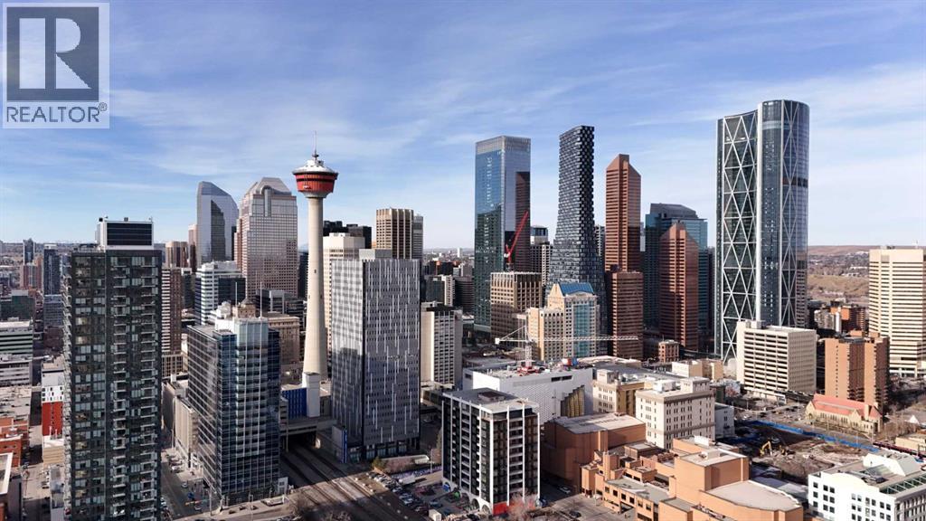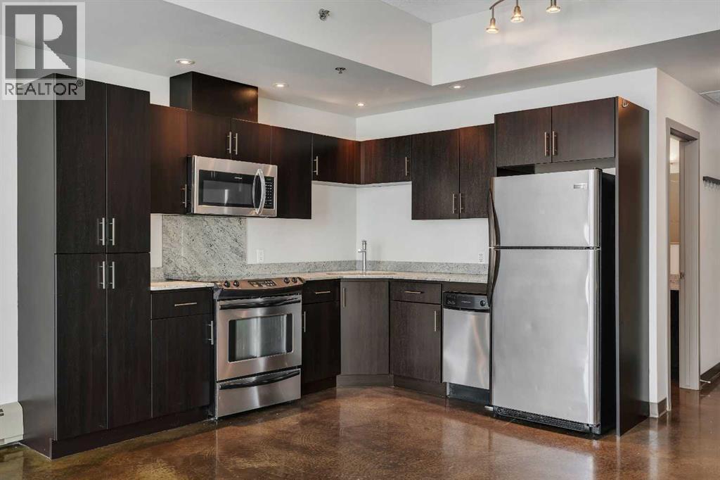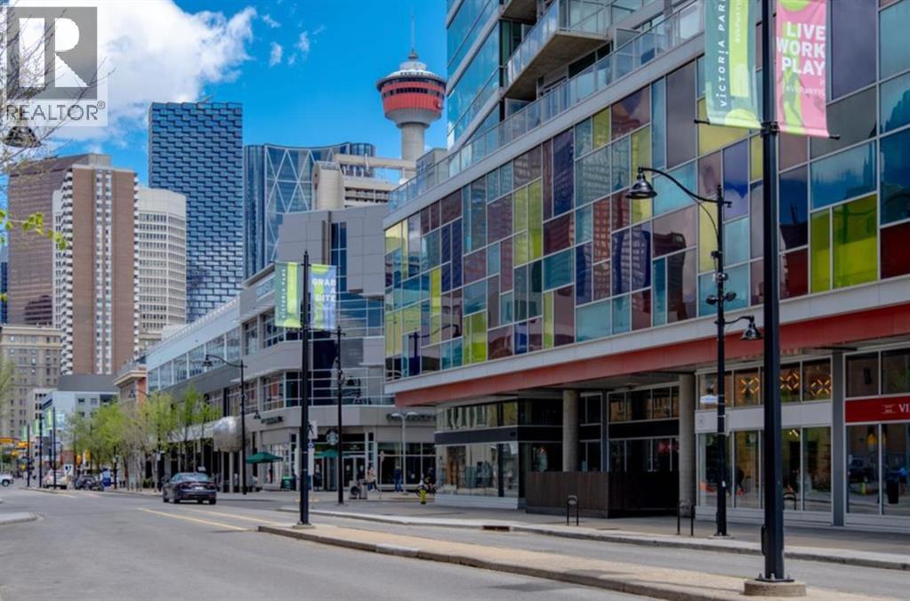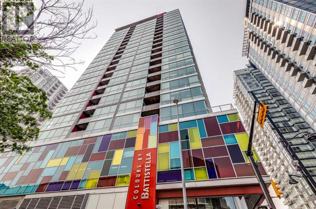 LIVE ON THE BEST STREET IN BELTLINE… TAKE THE ELEVATOR DOWN TO GYMS, YOGA, FAST FOOD & RESTAURANTS! Imagine taking the elevator down before sunrise to get a quick gym session in at Anytime Fitness or hot yoga at Hot Shop. Head back up to your condo to get ready for work and WALK to your downtown office. When your shift ends, catch a quick cocktail down at Proof or a beer at Leopolds. Walk back to your condo and call it a day. That’s just another Tuesday at Colours in Beltline. All of these amazing walkable amenities are paired with an equally desirable 2 Bed / 1 Bath condo with modern industrial styling. Stepping inside, the space opens up with polished concrete floors, 9’6 ceilings, and floor-to-ceiling windows. Step out onto your private balcony and take in peek-a-boo views of the downtown skyline and Mountains on a clear day! Back inside, the kitchen is equipped with stone countertops, stainless steel appliances, and ample cabinet space, all flowing directly into a living area that comfortably fits full-sized furniture. The master bedroom is large enough to put a Queen size bed and night stands. There’s also a second bedroom that offers flexibility as a guest room, office, or den. A full 4-piece bathroom, in-suite laundry & bonus central A/C complete the interior. Included with the purchase is a titled parking in the secured underground heated parkade. The Colours building is a modern concrete building that offers its' residents dedicated bike storage, and a landscaped 4th floor outdoor patio—giving you extra space to relax & entertain without leaving home. Located in the heart of the Beltline Calgary, you’re just steps from 17th Ave, First Street Market, Ten Foot Henry, Proof & lots of other restaurants, cafés, fitness studios, and nightlife. Just a few blocks away are the Stampede grounds, the MNP Sports Centre, and C-Train with free fare Downtown. Jumping in the car: Airport is an 18 min drive (18.6KM), & Banff is a 1 hr 28 min drive (128KM). (id:63190)