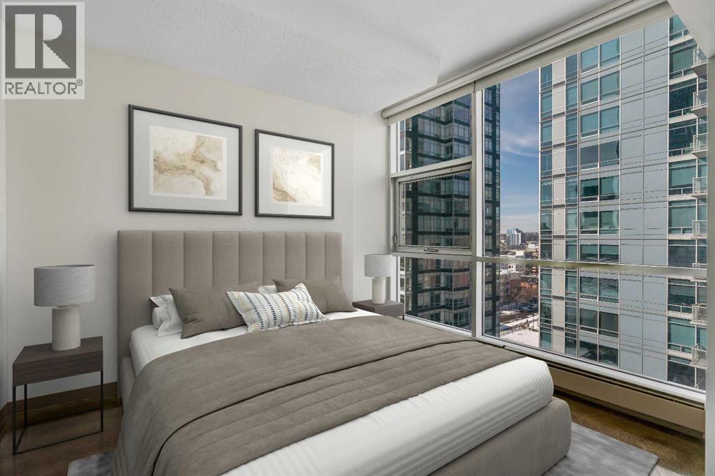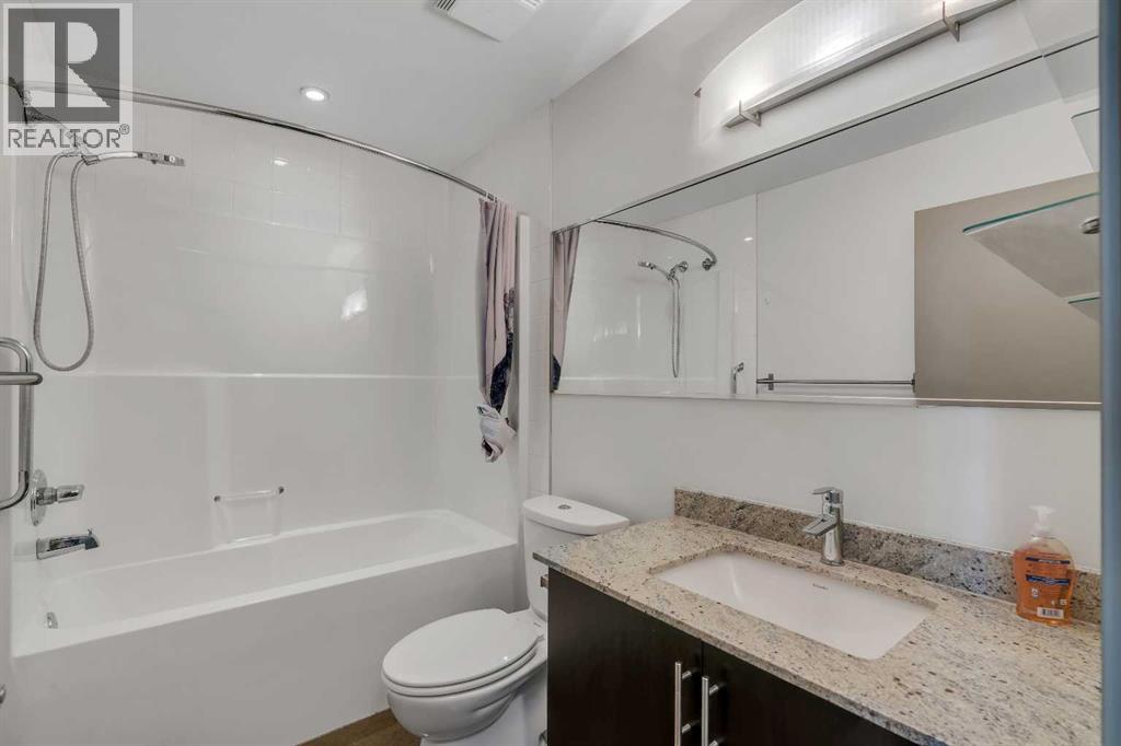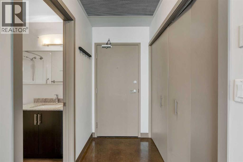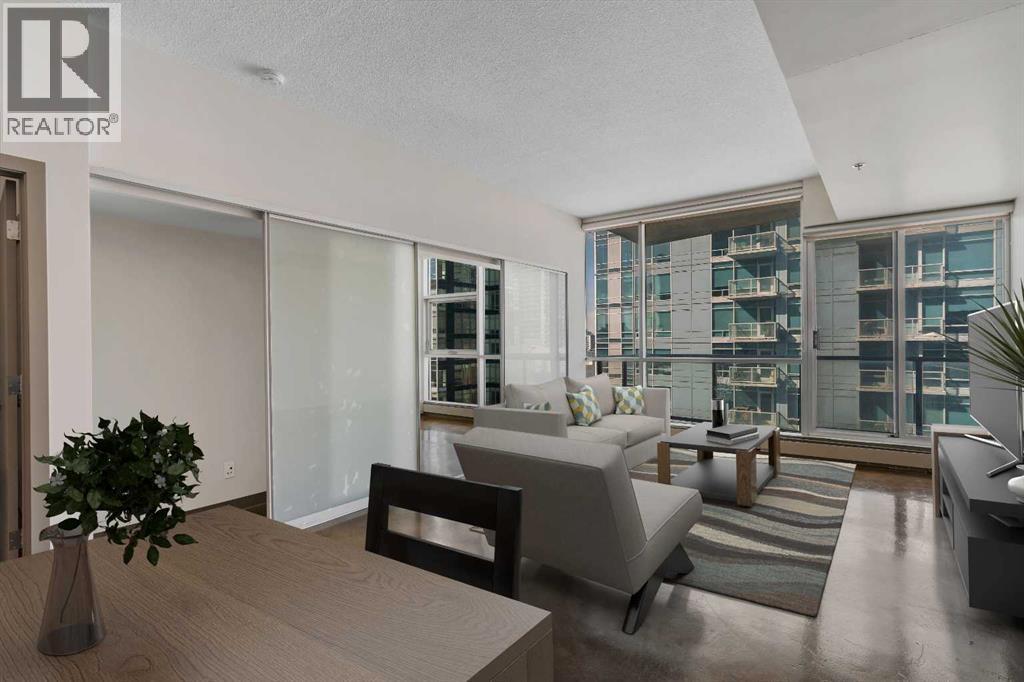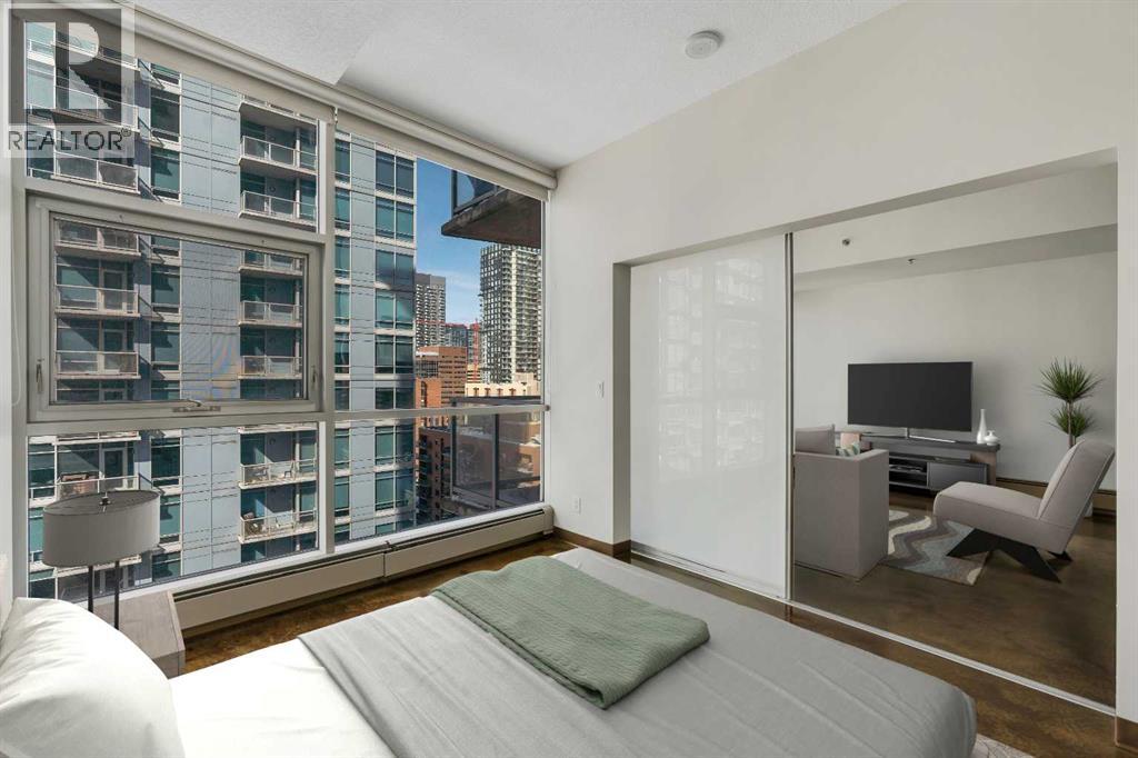 LIVE ON THE BEST STREET IN BELTLINE… TAKE THE ELEVATOR DOWN TO GYMS, YOGA, FAST FOOD & RESTAURANTS! Imagine taking the elevator down before sunrise to get a quick gym session in at Anytime Fitness or hot yoga at Hot Shop. Head back up to your condo to get ready for work and WALK to your downtown office. When your shift ends, catch a quick cocktail down at Proof or a beer at Leopolds. Walk back to your condo and call it a day. That’s just another Tuesday at Colours in Beltline. All of these amazing walkable amenities are paired with an equally desirable 2 Bed / 1 Bath condo with modern industrial styling. Stepping inside, the space opens up with polished concrete floors, 9’6 ceilings, and floor-to-ceiling windows. Step out onto your private balcony and take in peek-a-boo views of the downtown skyline and Mountains on a clear day! Back inside, the kitchen is equipped with stone countertops, stainless steel appliances, and ample cabinet space, all flowing directly into a living area that comfortably fits full-sized furniture. The master bedroom is large enough to put a Queen size bed and night stands. There’s also a second bedroom that offers flexibility as a guest room, office, or den. A full 4-piece bathroom, in-suite laundry & bonus central A/C complete the interior. Included with the purchase is a titled parking in the secured underground heated parkade. The Colours building is a modern concrete building that offers its' residents dedicated bike storage, and a landscaped 4th floor outdoor patio—giving you extra space to relax & entertain without leaving home. Located in the heart of the Beltline Calgary, you’re just steps from 17th Ave, First Street Market, Ten Foot Henry, Proof & lots of other restaurants, cafés, fitness studios, and nightlife. Just a few blocks away are the Stampede grounds, the MNP Sports Centre, and C-Train with free fare Downtown. Jumping in the car: Airport is an 18 min drive (18.6KM), & Banff is a 1 hr 28 min drive (128KM). (id:63190)
