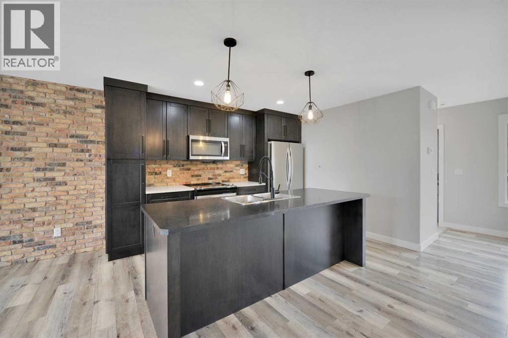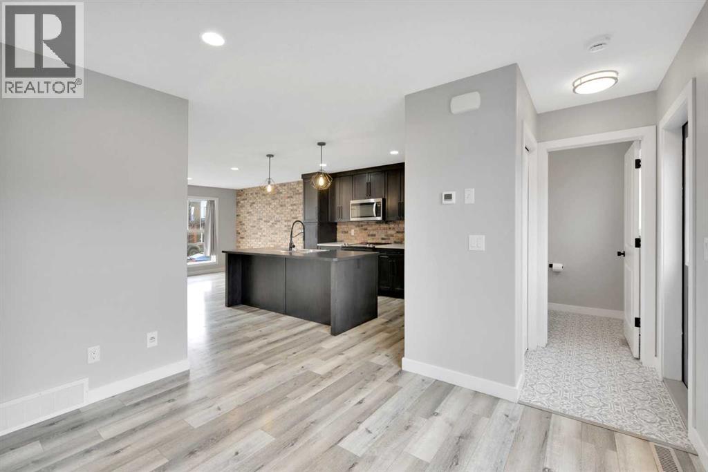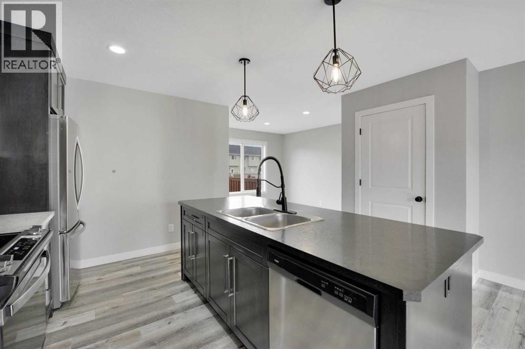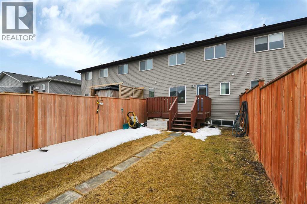 This beautiful Falcon Homes townhouse in Iron Gate is move in ready, offering a functional layout and quality finishes throughout. With 4 bedrooms and 4 bathrooms, there's room for the whole family!The main floor is open with neutral inviting colors throughout, featuring stainless steel appliances (new range!) and a central island in the kitchen, convenient 2pc bathroom, and access to the back deck from the dining room. Upstairs, three bedrooms are finished with carpet, and the primary bedroom includes a 3pc ensuite. Another 4pc main bath serves the remaining bedrooms.The basement is fully finished, adding a fourth bedroom, 4pc bathroom and large rec space. Out back, the yard is fully fenced and landscaped, with an east facing deck and a rear parking pad to fit 2 vehicles!Located so close to shopping, restaurants, walking trails, and highway access, with everyday amenities nearby. (id:63190)