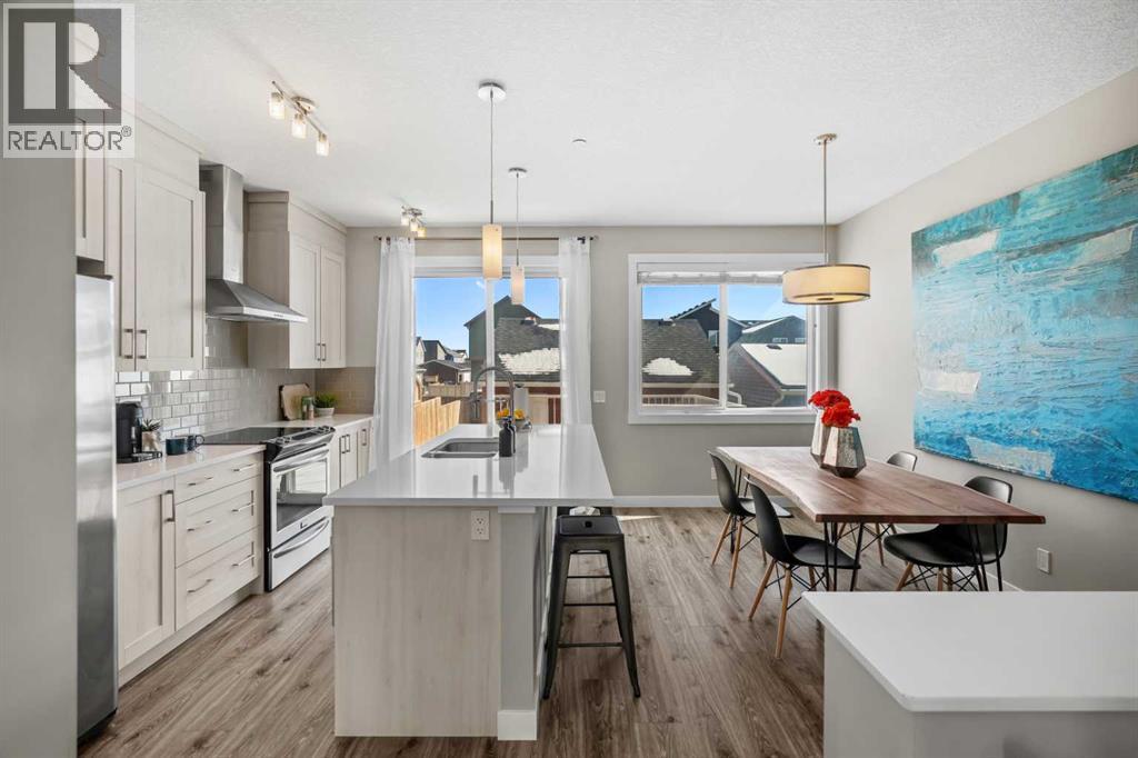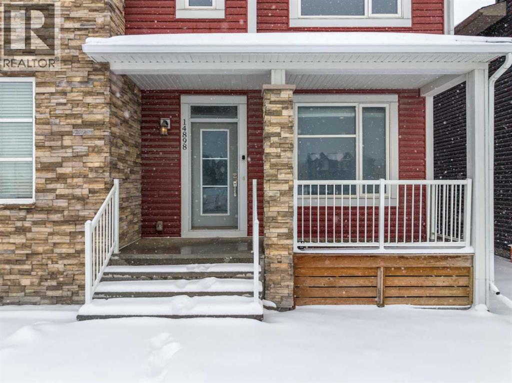 Welcome to 14898 1 St NE! We are so excited to present a truly move-in ready home in the family friendly community of Livingston. This home checks off ALL of the boxes, whether you're a first-time homebuyer, an investor or a family searching for more space to grow. You'll appreciate the front porch that welcomes you into this home. Upon entering, you'll immediately notice the abundance of natural sunlight this home offers. The living room is spacious, enhanced by the high ceilings and flows seamlessly into the rest of the main floor. The kitchen is truly the highlight of the home with ceiling-height cabinetry, stainless steel appliances, granite countertops and a large pantry. The sliding glass doors lead out to the back deck creating an ideal environment for hosting. There is plenty of room for a large six person table as well as space for bar stools for those informal meals. A two piece powder room and a side SEPARATE ENTRANCE complete this floor. Upstairs, you’re greeted by a bonus room, an exceptional feature and a rare find for a semi-detached home. It is ideal for a home office, media room or play room. The primary bedroom is perfectly positioned at the front of the home, where west exposure brings in beautiful natural light year-round. It’s complemented by a spacious ensuite with a modern vanity, walk-in glass shower and a generous walk-in closet. Two additional well-sized bedrooms, a four-piece bathroom and convenient upper-level laundry complete this floor. The backyard is a dream with a beautiful deck, including built-in seating ideal for hosting guests. The oversized double detached garage provides ample parking and storage, along with an outlet for electric vehicle charging. The basement is unfinished, offering all kinds of future opportunities for development especially with a side entrance already in place. This home offers the benefit of living in a well maintained, turnkey home without the hassle of worrying about landscaping, fencing or building a g arage. Located in the vibrant and growing community of Livingston, this home offers the perfect blend of modern design and everyday functionality. Enjoy access to the impressive Livingston Hub through your HOA, nearby parks and scenic pathways. All while being just minutes from Stoney Trail making commuting in and out of the city a breeze. Call for a private viewing! (id:63190)