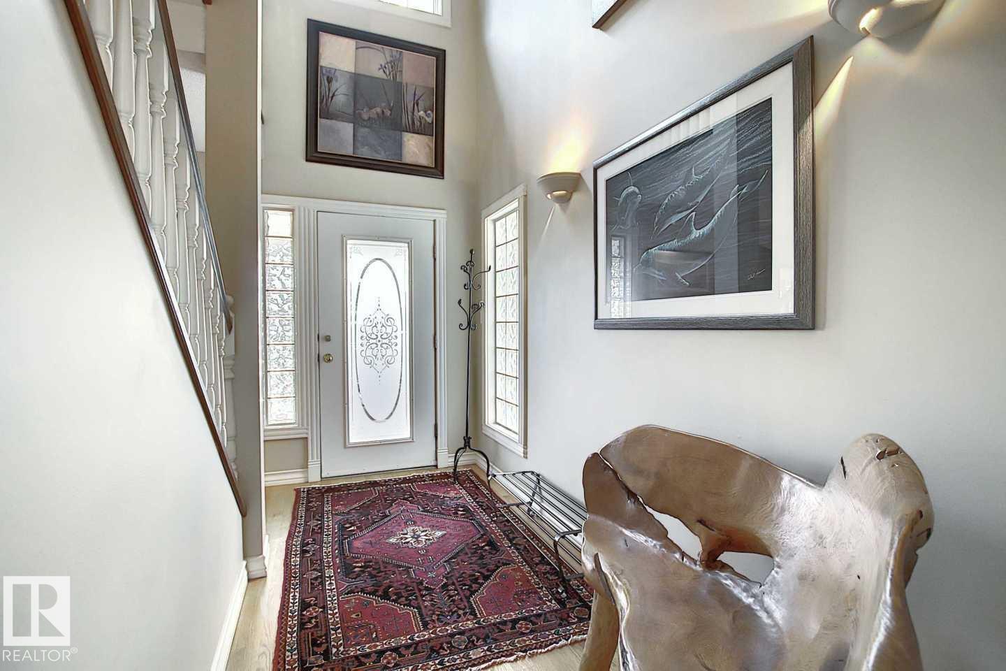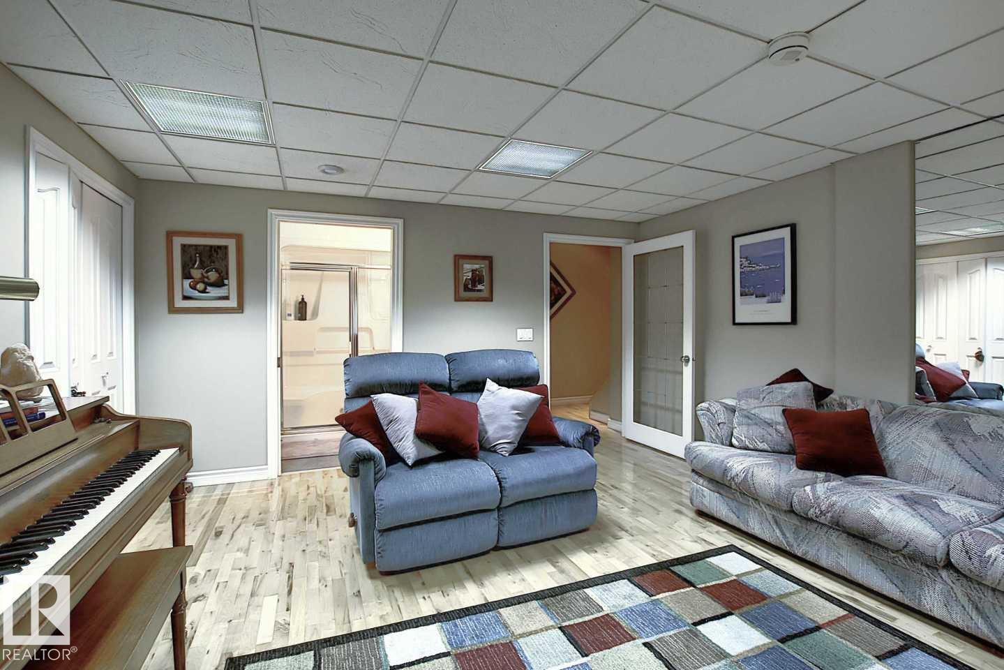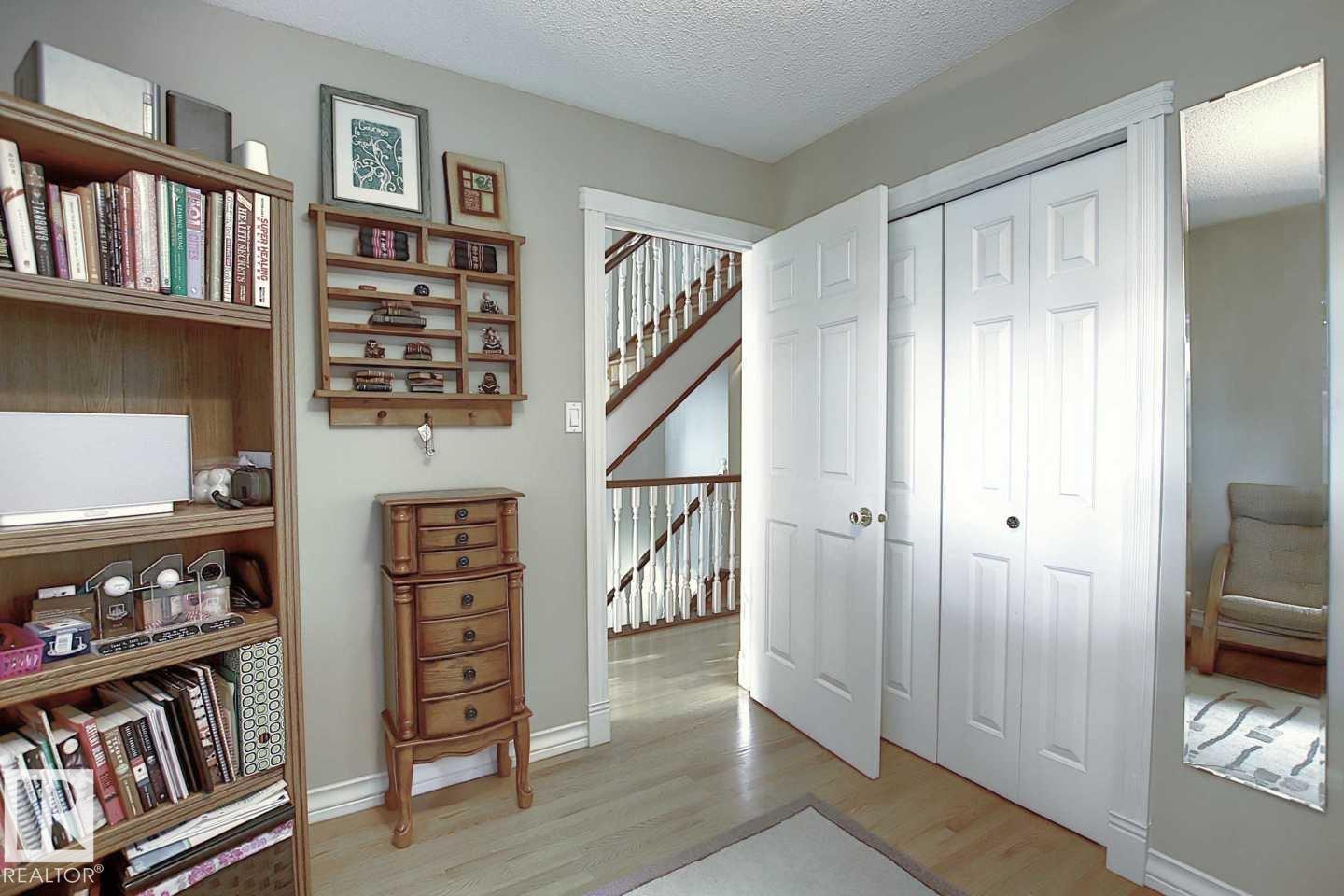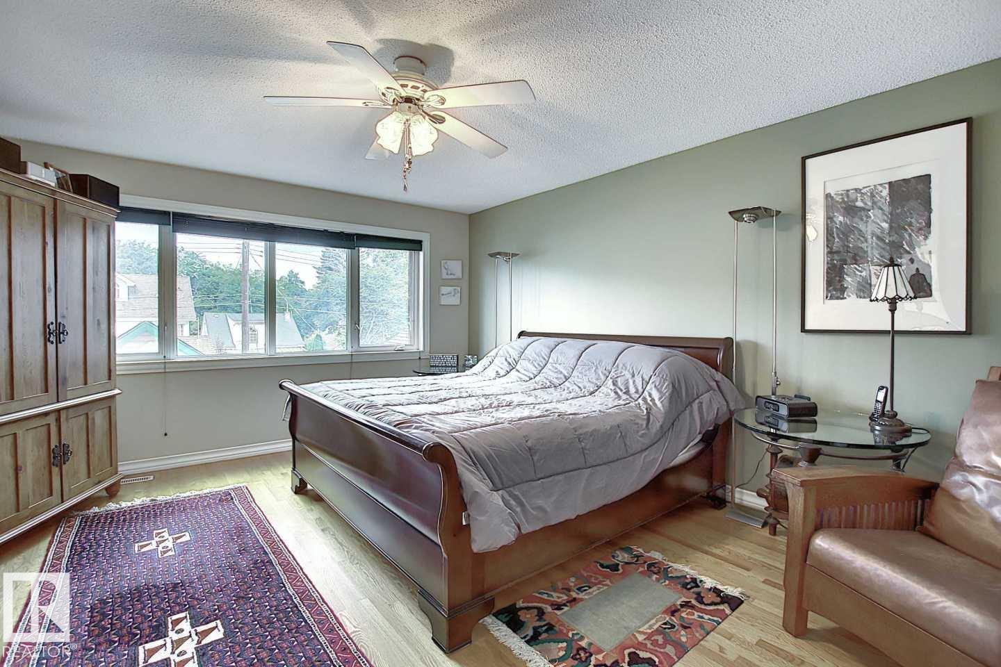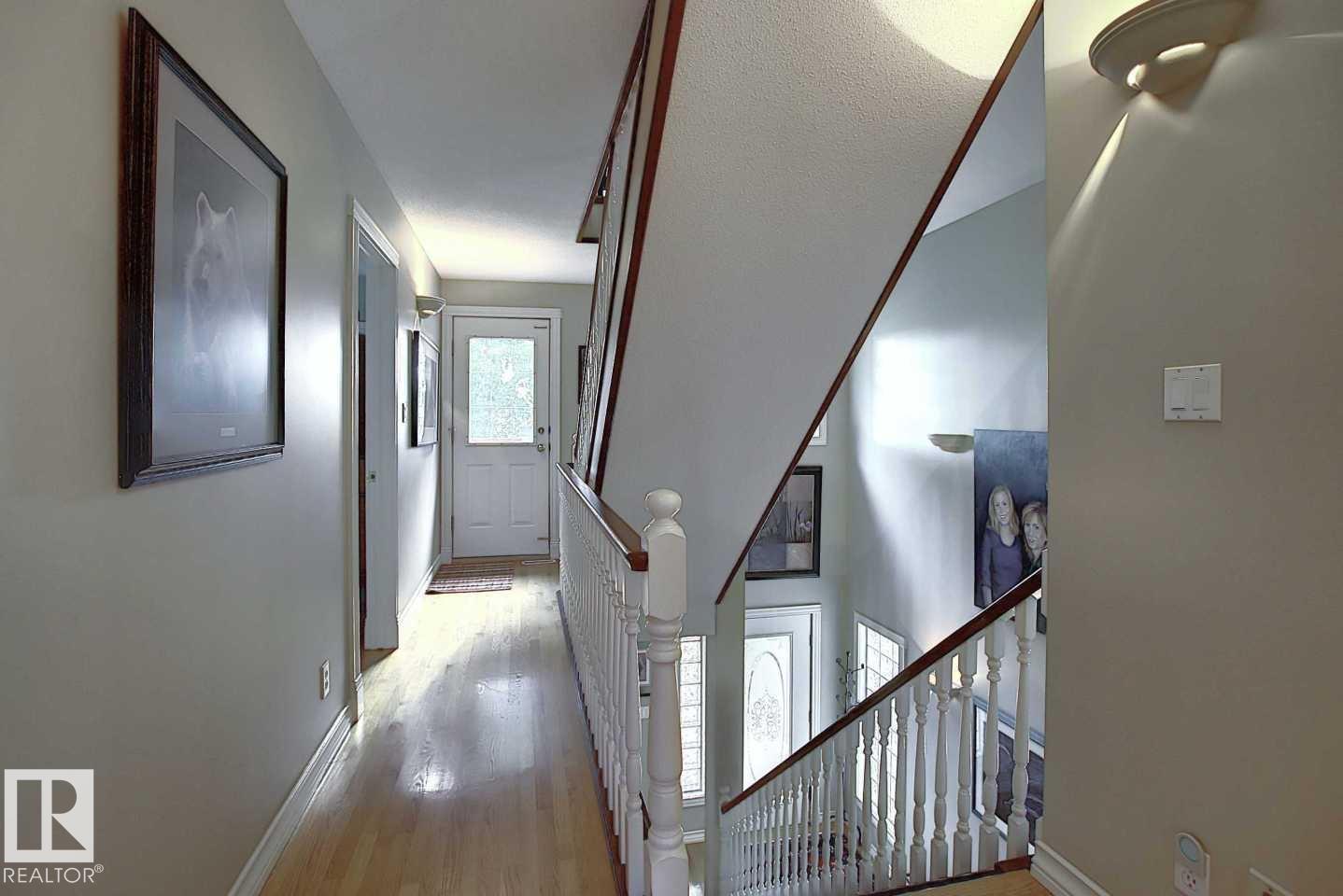 Wonderful 2350 sq ft 2.5 story custom built 2 plus 2 bedroom home on a quiet tree lined street just 1/2 block to Ada Boulevard and the scenic river valley. Great main floor plan featuring a large living room w/gas fireplace, dining room, bright kitchen with stainless appliances, gas range, granite countertops & raised eating bar for that morning coffee, 2 pc powder room with laundry. Upstairs there's a beautiful primary bedroom suite with massive walk in closet & 6 piece bath featuring a jacuzzi tub. Additional bedroom & 4 pc main bath. The third floor loft is an amazing space, currently a media room and office/work out area but could easily be an additional bedroom. Finished basement with large rec room, 2 bedrooms, 3 pc bath with steam shower as well as a storage/mechanical room. Extensive use of hardwood flooring & high quality finishes throughout. Exterior featuring decks, raised flower beds & low maintenance fenced yard. Heated double garage with rare finished storage loft. A beauty! (id:63190)