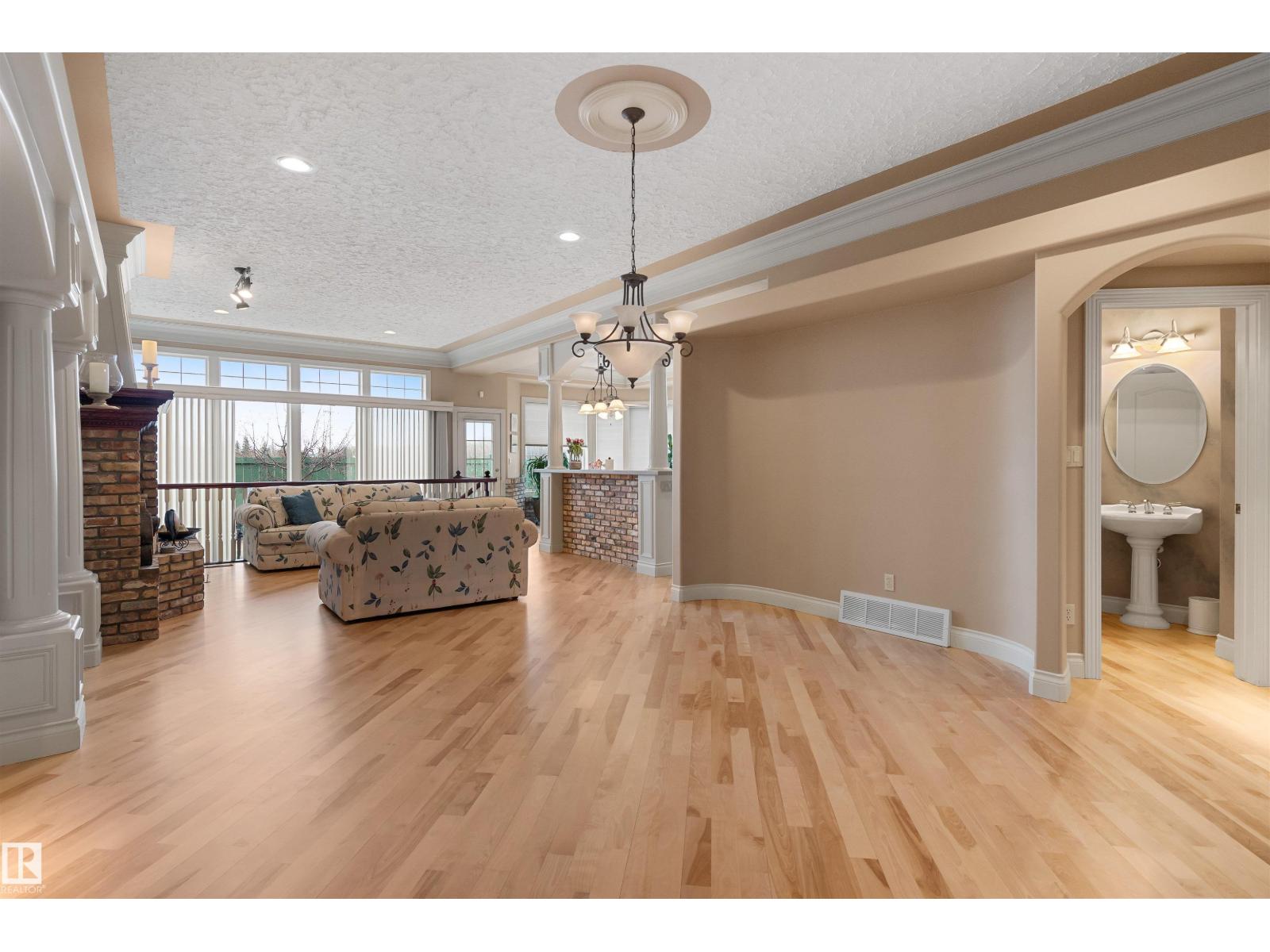 Welcome to this custom-built Heredity bungalow! The entrance has beautiful ceiling detail & overlooks the open design. French doors lead into a flex room w/ large windows looking out front. At the centre of the home is the dining space which can accommodate large scale entertaining. The living room has a grand wood-burning f/p w/ extensive brick character. The kitchen has a butler style walk through pantry, Corian counters, eating bar island, s/s appliances, double built in wall ovens & pot/pan drawers. The dining nook has access to the backyard wrap around deck & exposed aggregate patio. A convenient walk-through closet is located between the front door & the garage entry. The spacious laundry room has lots of natural light. The primary bedroom has large windows, a walk in closet & a 4pce ensuite which has a 2 person tub w/ jets. The FULLY FINISHED basement has a massive rec room, dry bar, 3 large bedrooms w/ their own walk in closet & a 3pce bath. A TRIPLE ATTACHED GARAGE with drive through! (id:63190)