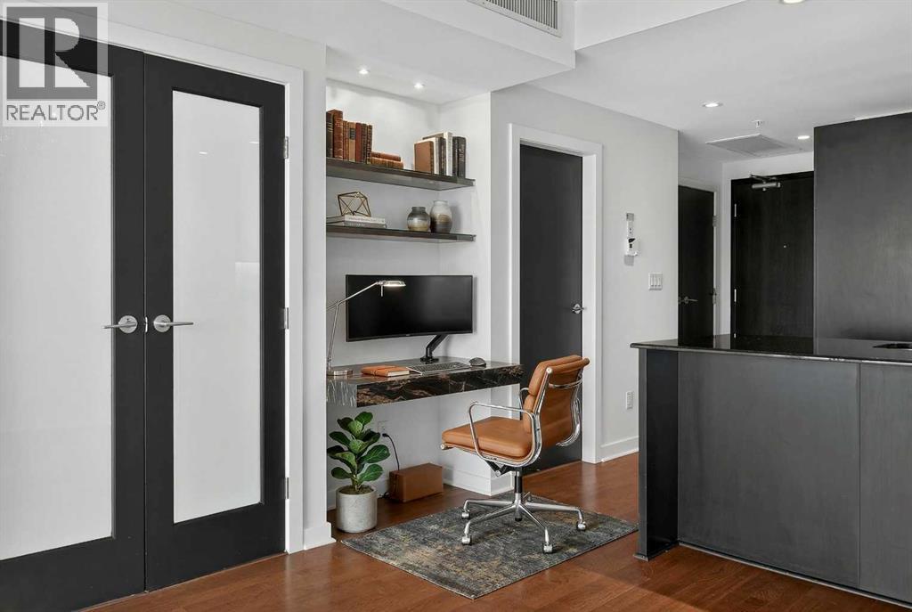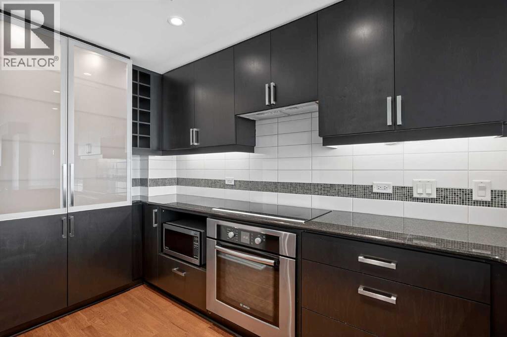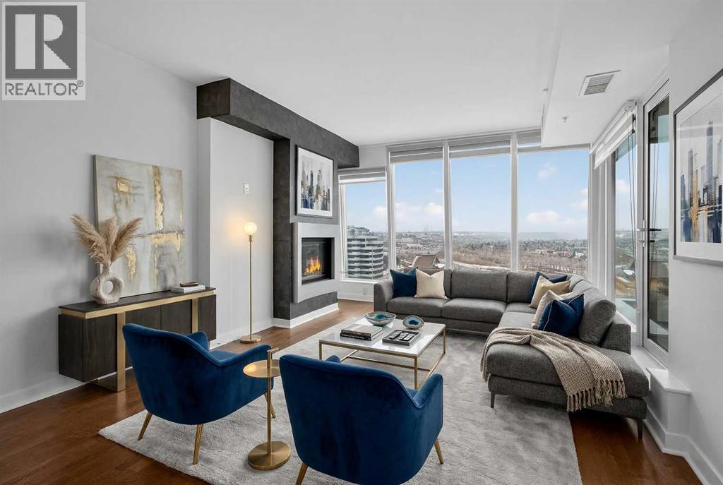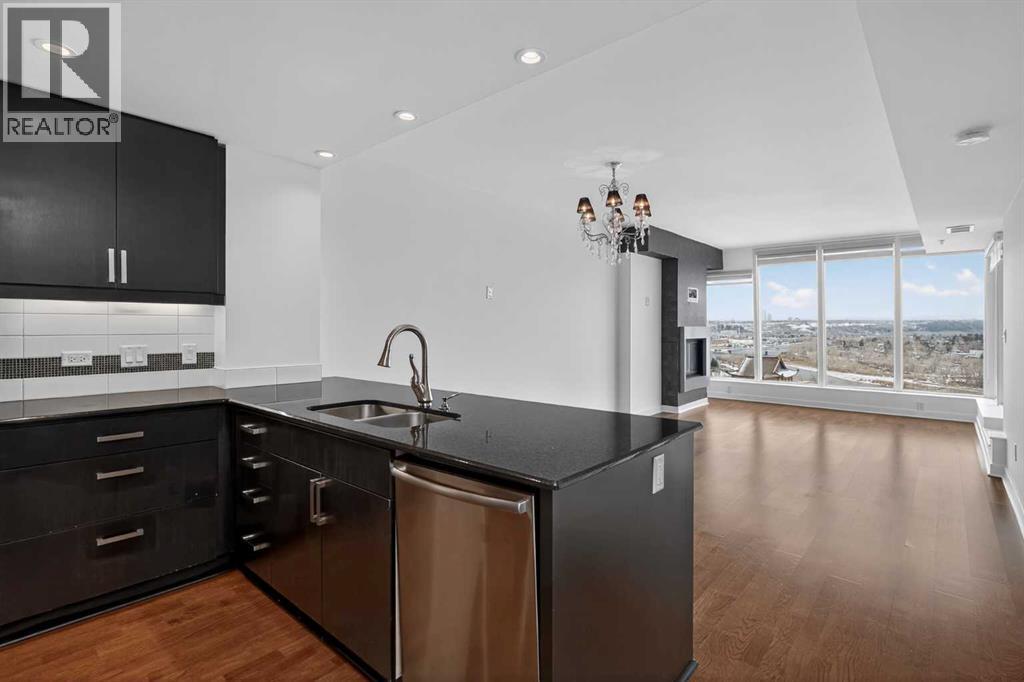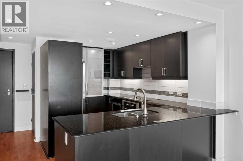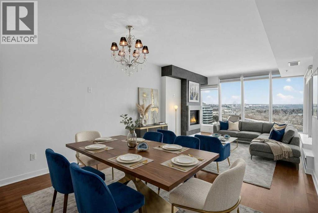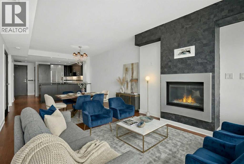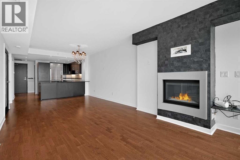 Welcome to Solaire, where elevated design meets an unbeatable Eau Claire lifestyle. Perched on the 16th floor, this beautifully upgraded 1 bedroom, 1 bathroom residence offers a refined, boutique luxury feel the moment you step inside. Floor to ceiling WINDOWS flood the space with natural light, creating a bright and open atmosphere that feels both modern and inviting, while showcasing uninterrupted west facing views. The thoughtfully designed layout seamlessly connects the kitchen, dining, and living areas, perfect for entertaining guests or enjoying a quiet night in. The kitchen is finished with high end cabinetry, sleek surfaces, and premium Bosch appliances, delivering both performance and a clean, sophisticated aesthetic. The living area is anchored by a cozy GAS FIREPLACE, adding warmth and ambiance, making it the perfect place to unwind while taking in the incredible views. The bedroom is a true retreat, featuring elegant glass French doors that enhance the open feel while still offering privacy, along with a walk through closet that leads into a well appointed full bathroom. Every detail has been carefully considered to maximize both comfort and flow. What truly sets this home apart are the west facing views, offering breathtaking sunsets over the MOUNTAINS and the BOW RIVER, a rare combination that brings a sense of calm and escape right into your everyday life. This unit also includes UNDERGROUND TITLED PARKING, adding everyday convenience and long term value in a premier downtown location. Step outside and you’re immediately connected to everything that makes Eau Claire one of Calgary’s most desirable communities, from the Bow River pathways and green spaces to local cafés, boutique shops, and some of the city’s best restaurants, all just moments from your front door. Whether you’re a professional looking for a polished downtown residence, an investor seeking a premium rental in a high demand location, or someone who simply values lifestyle and convenien ce, this is a rare opportunity to own a standout unit in one of the city’s most sought after buildings. Opportunities like this, with this level of finish, view, and location, rarely come to market at this price point. (id:63190)