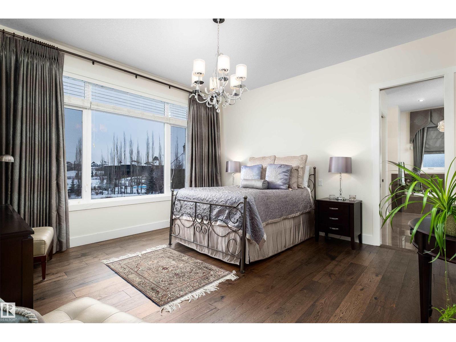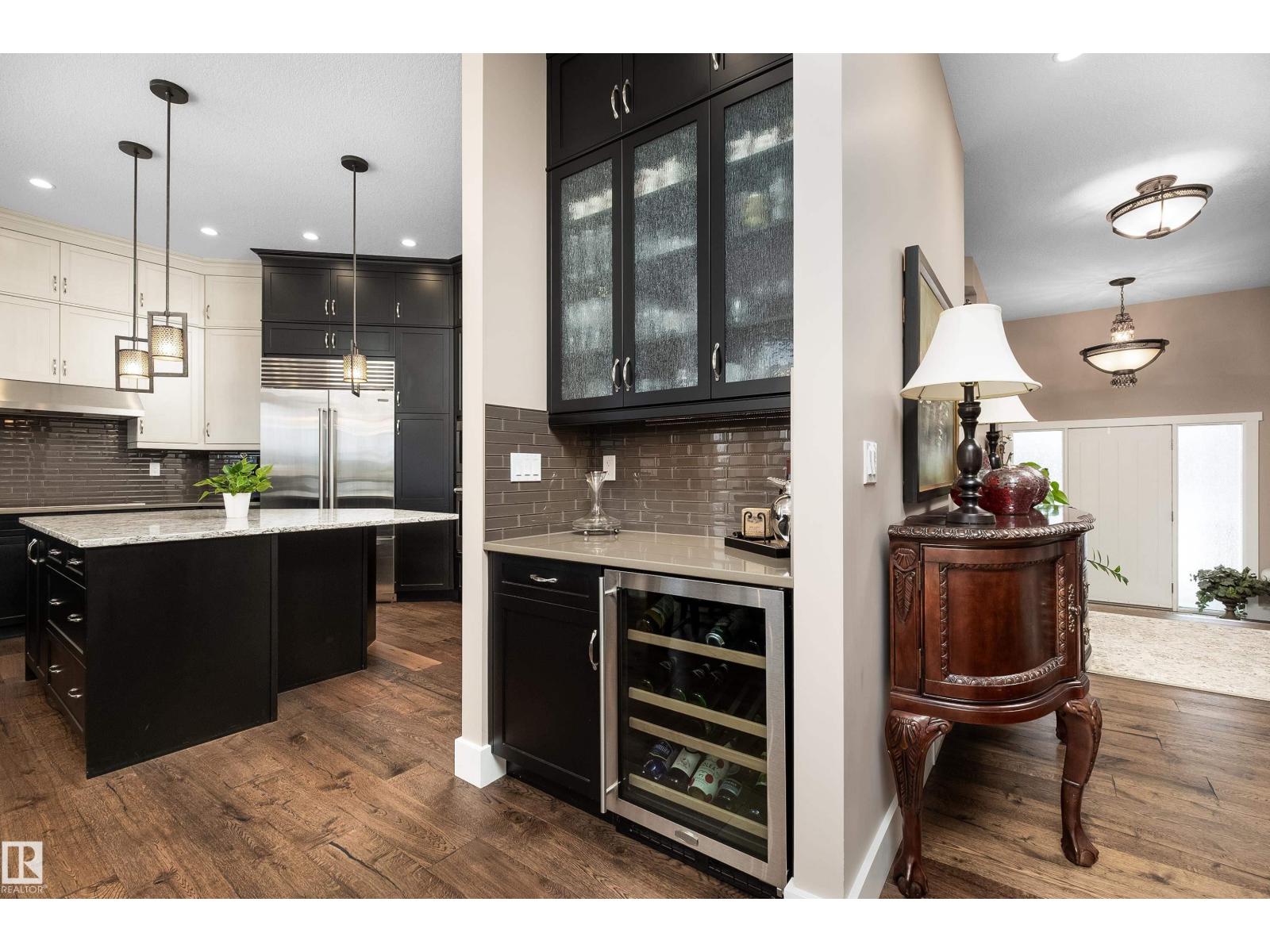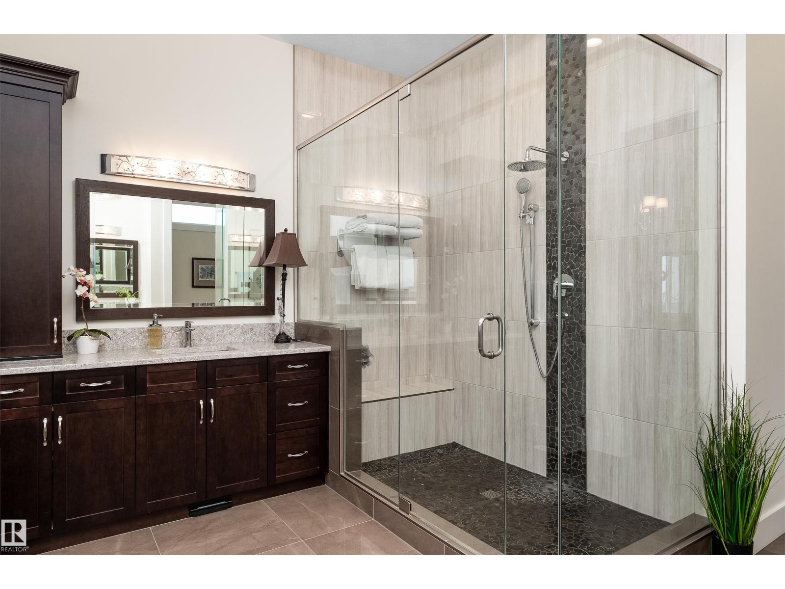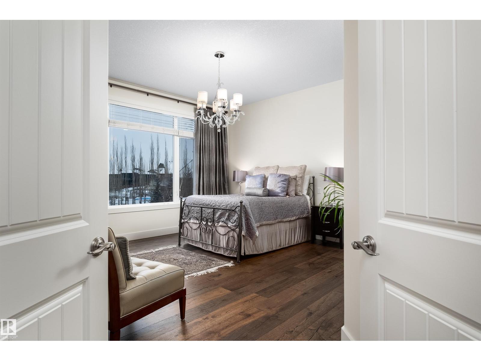 Nestled in the Genesis on the Lake community awaits a truly stunning walkout bungalow that's ready for new owners to call it home. This original-owner home has been meticulously designed and is packed with upgrades. Featuring 10ft ceilings on the main floor, rich hardwood, a chef-inspired kitchen w/ floor to ceiling cabinetry, Wolf and Miele app, wine fridge, double sided fireplace, central A/C and vac, RO system, heated garage, and main floor laundry. The primary retreat welcomes you w/ double doors and leads to your spa-like ensuite with heated flooring, deep soaker tub, generous tiled shower and dbl vanities. Downstairs glows w/ natural light, in-floor heating and hosts a kitchenette, two bedrooms, bath, lounge and workout room plus over 400sqft of storage space. Outside features a beautifully landscaped yard with sprinkler system. This home is cut from a magazine and is perfect for a couple looking to downsize without compromising quality, families with older children or multigenerational living. (id:63190)
