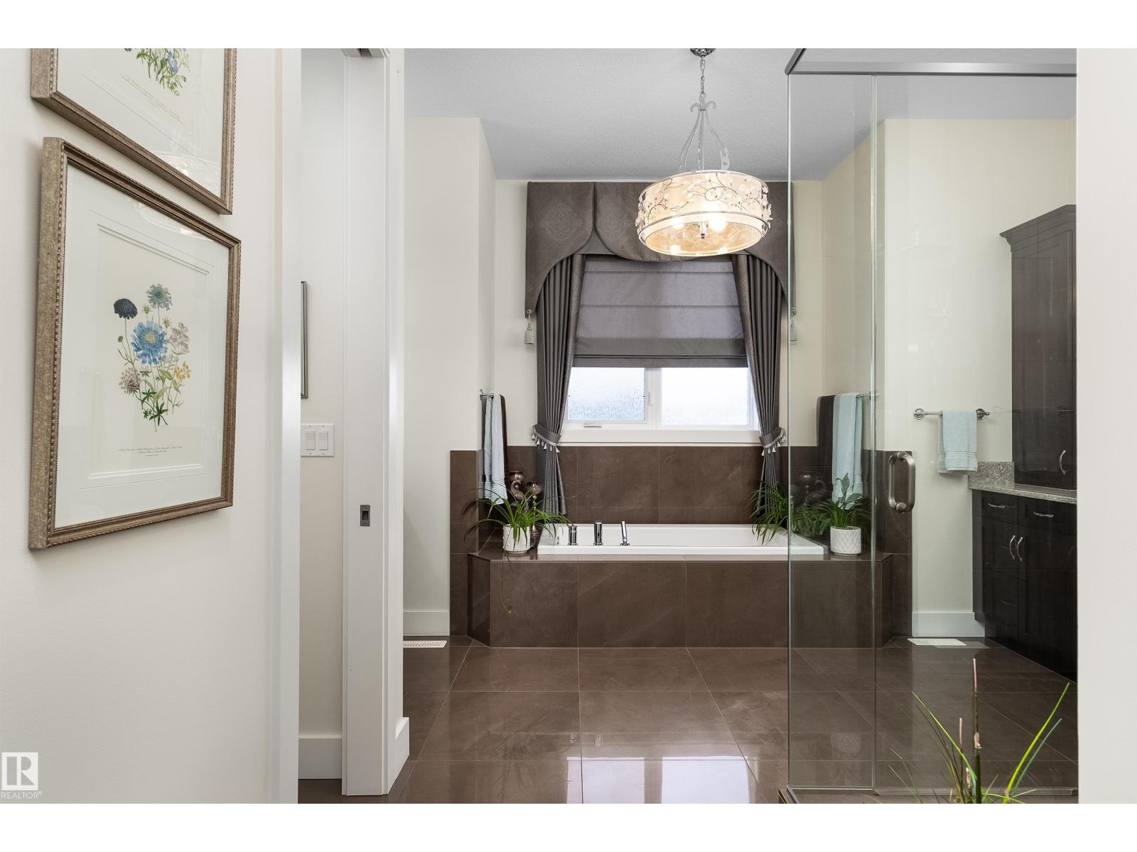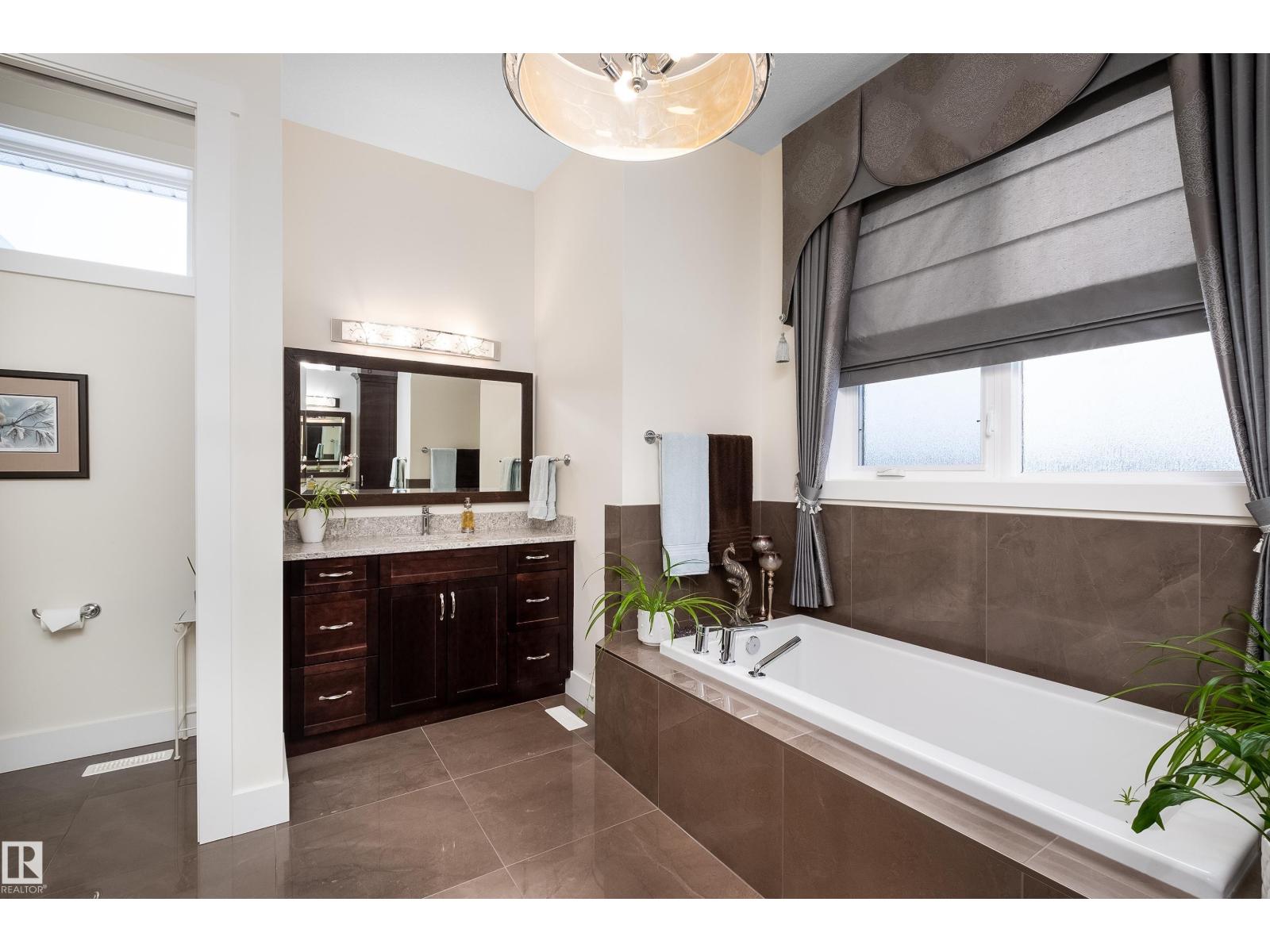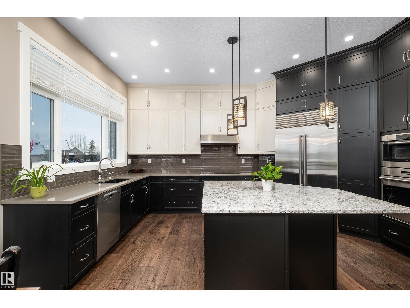 Nestled in the Genesis on the Lake community awaits a truly stunning walkout bungalow that's ready for new owners to call it home. This original-owner home has been meticulously designed and is packed with upgrades. Featuring 10ft ceilings on the main floor, rich hardwood, a chef-inspired kitchen w/ floor to ceiling cabinetry, Wolf and Miele app, wine fridge, double sided fireplace, central A/C and vac, RO system, heated garage, and main floor laundry. The primary retreat welcomes you w/ double doors and leads to your spa-like ensuite with heated flooring, deep soaker tub, generous tiled shower and dbl vanities. Downstairs glows w/ natural light, in-floor heating and hosts a kitchenette, two bedrooms, bath, lounge and workout room plus over 400sqft of storage space. Outside features a beautifully landscaped yard with sprinkler system. This home is cut from a magazine and is perfect for a couple looking to downsize without compromising quality, families with older children or multigenerational living. (id:63190)