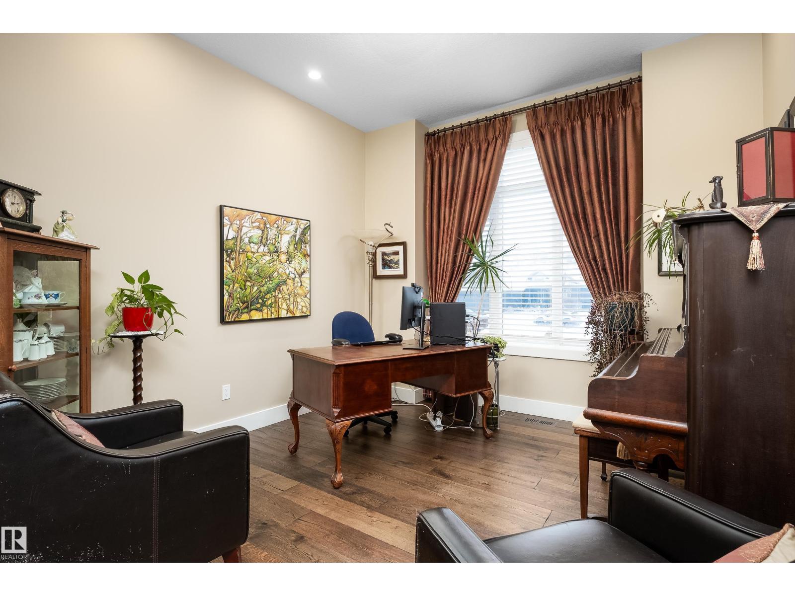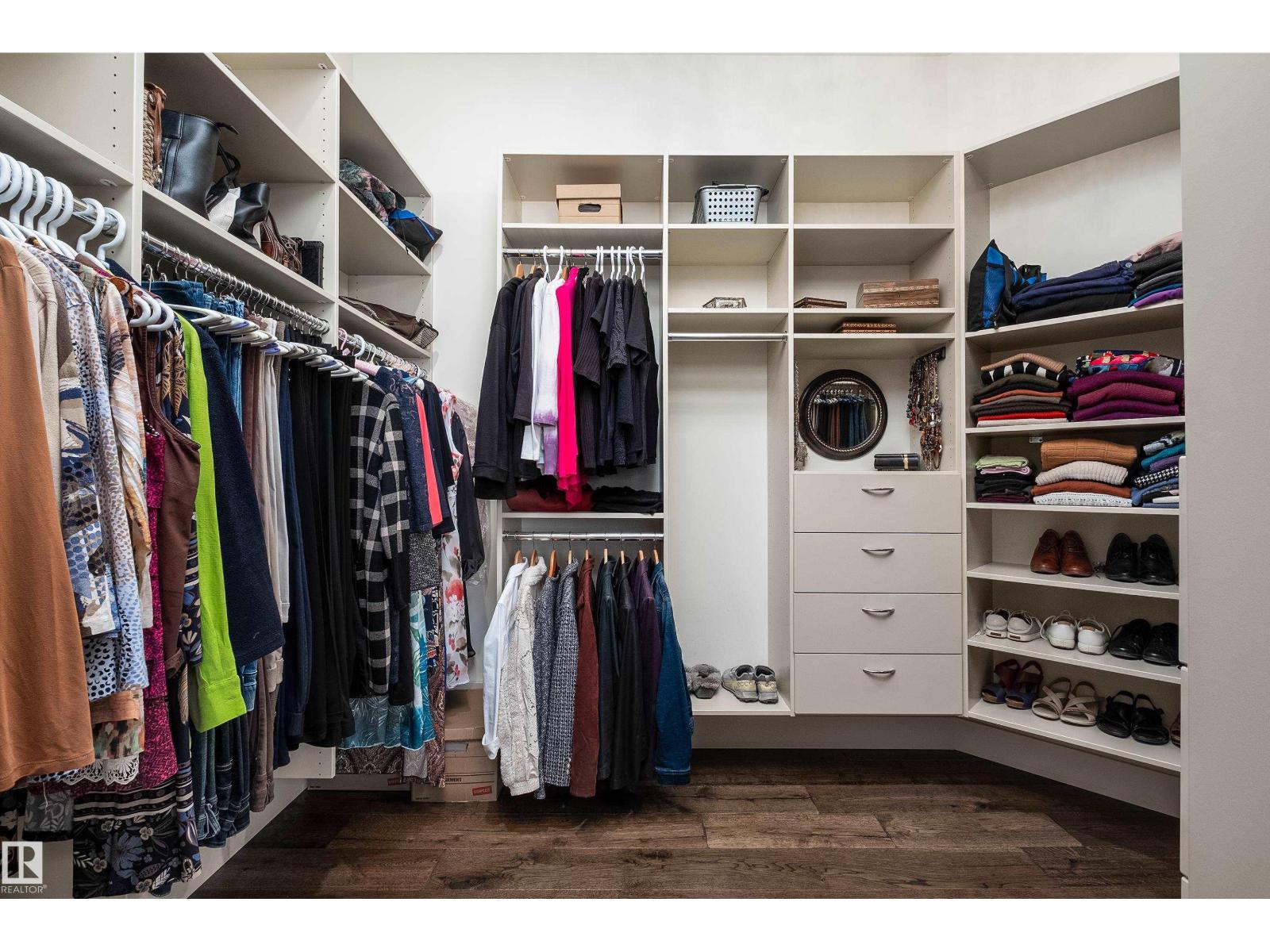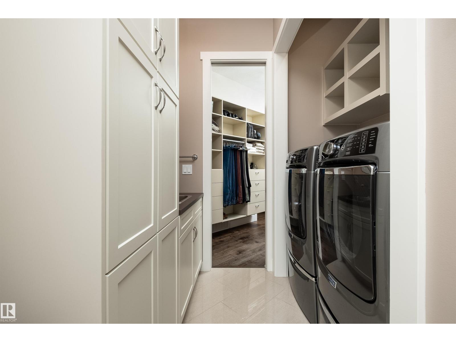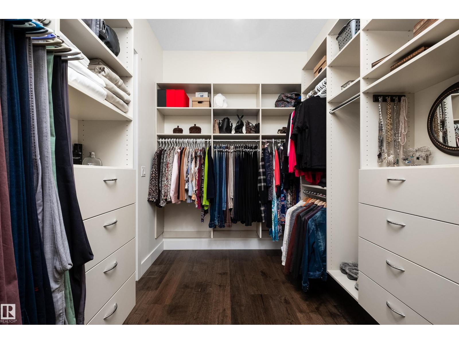 Nestled in the Genesis on the Lake community awaits a truly stunning walkout bungalow that's ready for new owners to call it home. This original-owner home has been meticulously designed and is packed with upgrades. Featuring 10ft ceilings on the main floor, rich hardwood, a chef-inspired kitchen w/ floor to ceiling cabinetry, Wolf and Miele app, wine fridge, double sided fireplace, central A/C and vac, RO system, heated garage, and main floor laundry. The primary retreat welcomes you w/ double doors and leads to your spa-like ensuite with heated flooring, deep soaker tub, generous tiled shower and dbl vanities. Downstairs glows w/ natural light, in-floor heating and hosts a kitchenette, two bedrooms, bath, lounge and workout room plus over 400sqft of storage space. Outside features a beautifully landscaped yard with sprinkler system. This home is cut from a magazine and is perfect for a couple looking to downsize without compromising quality, families with older children or multigenerational living. (id:63190)