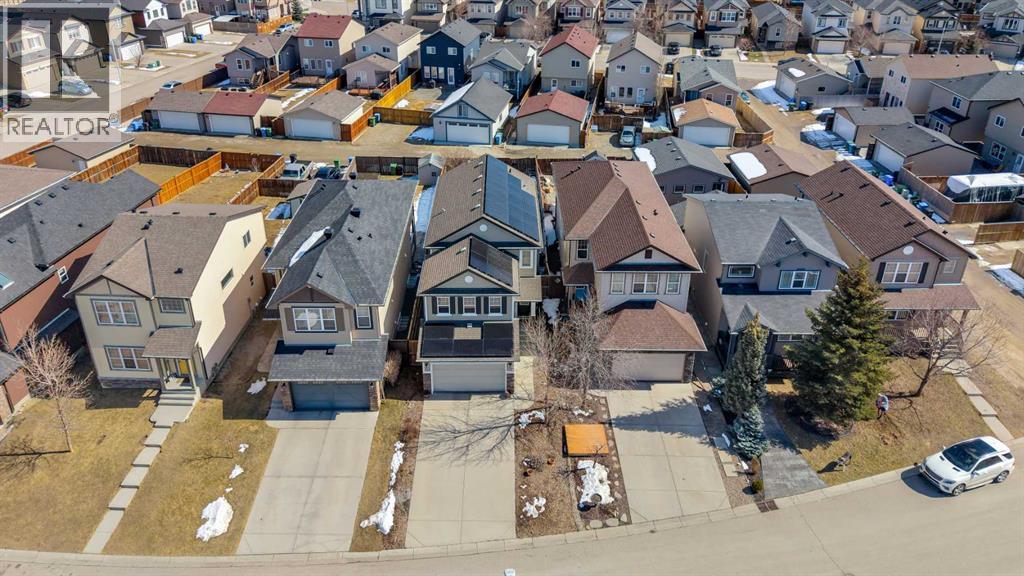 Imagine offsetting up to 100% of your utility costs with solar panels installed in 2024—an incredible advantage in today’s economy! New This well-maintained home is perfectly located within walking distance to six schools, including just a 10-minute walk to the new North Trail public high school—ideal for growing families. Upstairs, you’ll love the convenient laundry room—no more hauling baskets up and down stairs. This level features three spacious bedrooms, including a primary retreat with a full ensuite, plus another full bathroom and a bright, oversized bonus room with three large windows—perfect for movie nights, entertaining, or a kids’ hangout space. The main floor offers a thoughtfully designed open-concept layout with plenty of cabinet and counter space, a corner pantry, and a cozy gas fireplace for those cold Calgary nights. You’ll also find a 2-piece bathroom and a functional mudroom just off the garage. The basement is ready for your personal touch, featuring roughed-in plumbing, two egress windows, and durable PEX piping—making future development easy and flexible. Outside, enjoy a beautifully landscaped setting with perennials in the front yard, and a backyard that includes a mature lilac tree, raspberry bushes, rhubarb plants, and approximately 140 sq ft of dedicated planting space—perfect for gardening enthusiasts. Recent upgrades include: Fresh interior paint (2021). Kitchen updates: new faucet, fridge, microwave, stove & dishwasher (2021)New garage door spring (January 2026). ***SUPPLEMENT REGARDING SOLAR PANELS*** (id:63190)
