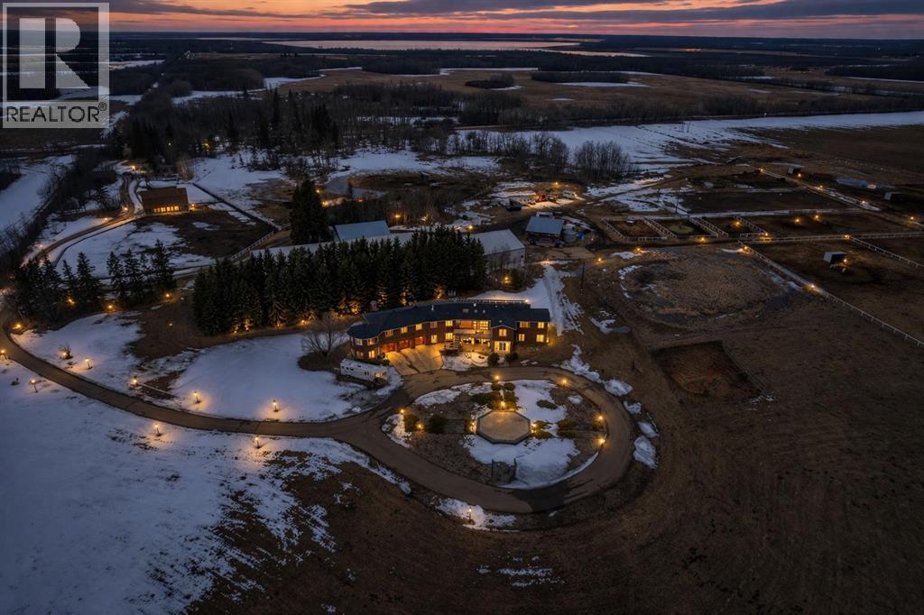 Set along the shores of Hastings Lake, this exceptional 77.57-acre property offers a rare combination of lakefront living, 7000+ square foot of living space and a fully developed equestrian facility, located just 15 minutes from Sherwood Park. With two residences, a complete indoor and outdoor horse setup, and irrigation water rights, this property is well suited for those looking to operate, expand, or simply enjoy acreage living with purpose.The main residence offers over 7,000 sq.ft. of above-grade living space, thoughtfully designed for both everyday living and entertaining. The heart of the home is a spacious kitchen featuring hickory cabinetry, granite countertops, and a large central island, flowing into an open dining and living area. Expansive windows and a bright sunroom/office capture natural light and scenic views of Hastings Lake.The main level includes a private primary suite with a 5-piece ensuite and walk-in closet, along with three additional bedrooms and multiple bathrooms. The fully developed lower level features two more bedrooms, a large recreation room of over 1,300 sq.ft. complete with a wet bar, a spacious solarium with hot tub, two natural gas fireplaces, and dual laundry setups. A 992 sq.ft. triple attached garage provides ample space for vehicles and storage.A second residence on the property adds flexibility for extended family, staff, or rental income. The main floor includes three bedrooms and comfortable living space, while the basement features a fully self-contained legal suite with its own kitchen, bedroom, bathroom, and in-suite laundry.The equestrian facilities are well established and designed for year-round use. A heated indoor riding arena measuring 170’ x 70’ (built in 2014) is directly connected to the barn for convenience. The heated barn includes 16 stalls, a wash bay, three tie stalls, two tack rooms, a feed room, and a bathroom.The outdoor setup is organized for efficient horse management, featuring six large pa ddocks, nine smaller paddocks, and three larger fenced areas.Additional improvements include a 50’ x 32’ shop, pole barn, hip-roof barn, detached garage, and multiple storage buildings.The land itself offers a functional mix of open and usable space, with lakefront access to Hastings Lake and irrigation water rights in place. The layout supports both equestrian and agricultural use, while the setting provides privacy, views, and long-term usability.A well-rounded and fully equipped property offering scale, flexibility, and a complete setup in a highly desirable location. (id:63190)