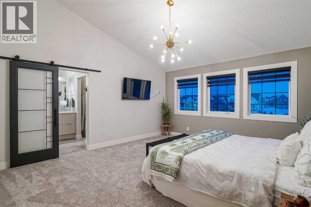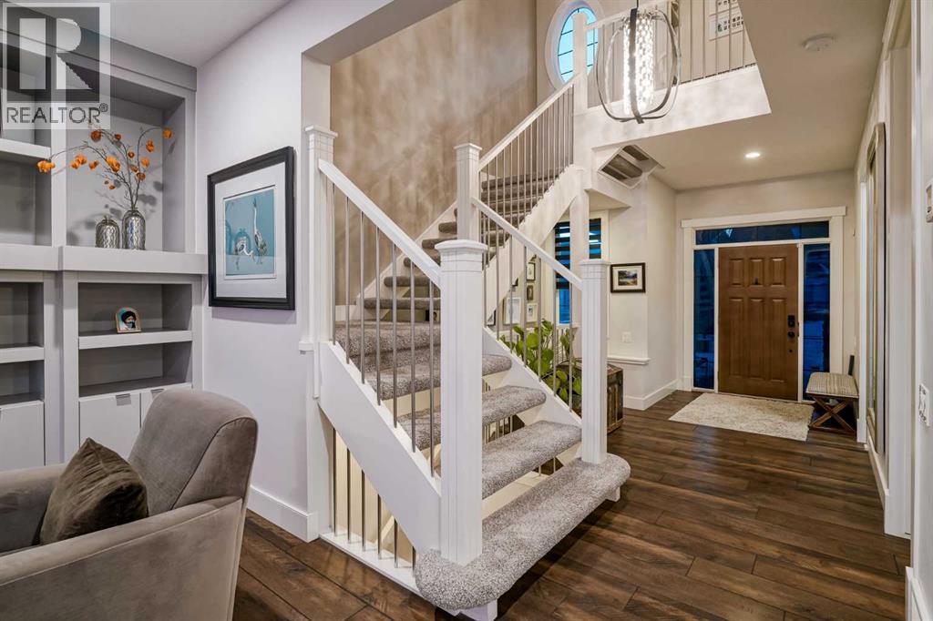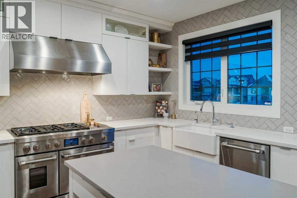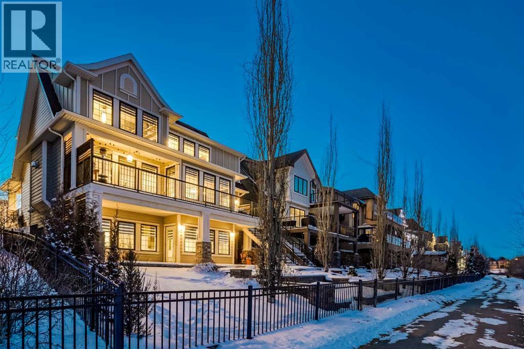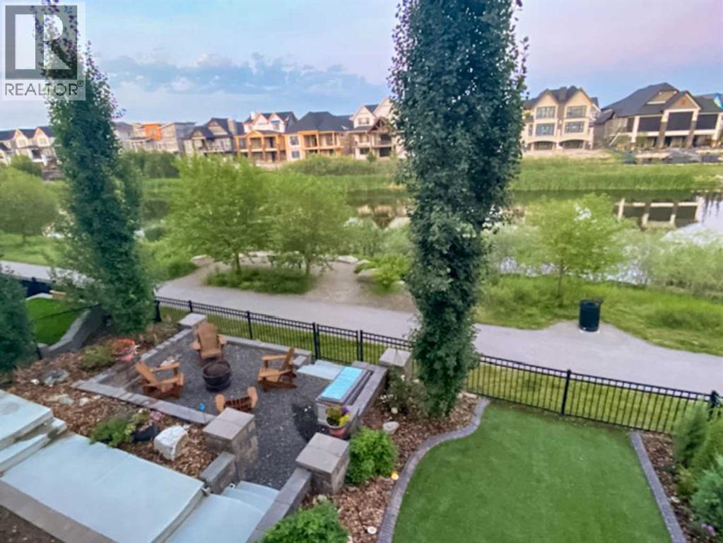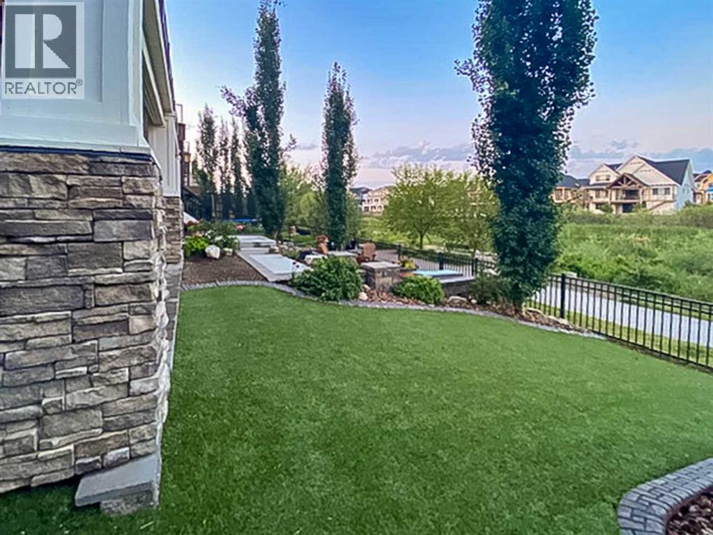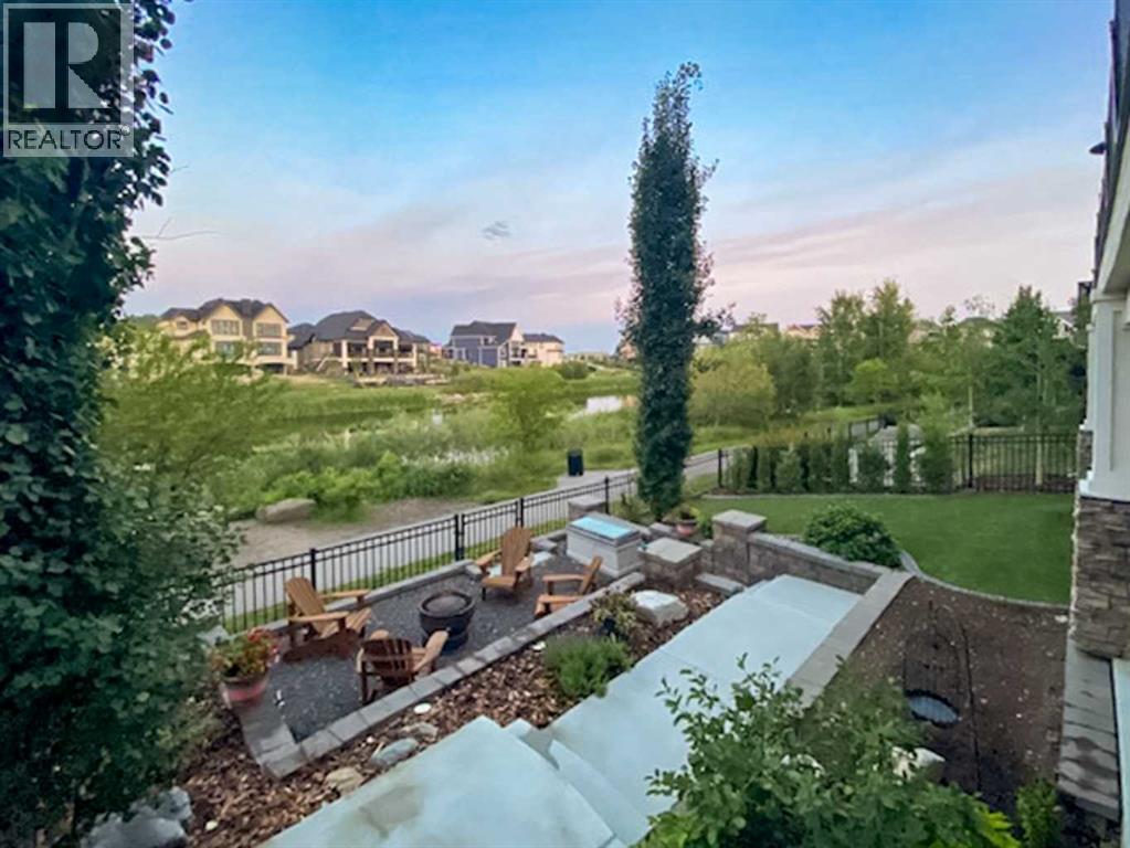 **OPEN HOUSE SUN APR 26th 2PM - 4PM** Welcome to this exceptional McKee-built custom home in the prestigious community of Coopers Crossing, where refined craftsmanship meets unobstructed pond-side living. Offering over 3,700 sqft of professionally developed living space, this fully finished 4-bedroom, 3.5-bathroom walk-out home delivers an elevated lifestyle defined by architectural detail and premium upgrades. From the moment you arrive, the curb appeal is undeniable - an exposed aggregate driveway, covered front porch with cedar soffit detailing, and a fully landscaped lot create a strong first impression. The 708 sqft triple tandem heated garage is both functional and impressive, complete with overhead storage and room for vehicles, toys, or workshop space. Inside, a dramatic open-rise staircase anchors the main level, while engineered hardwood flooring flows throughout. The great room is designed for both everyday living and upscale entertaining, featuring a custom fireplace surround with built-ins and expansive windows framing tranquil pond views. The chef-inspired kitchen is a true showpiece. Thoughtfully upgraded with crisp white cabinetry, double islands, and premium stainless steel appliances, it includes a 48” Jenn-Air dual-fuel gas range, Vent-A-Hood range hood, and Electrolux side-by-side refrigerator/freezer. An exquisite under mount sink and refined finishes complete this elevated culinary space. From this level, step outside to your private backyard oasis: a full-width 33’4” x 9’8” composite deck with stairs leading to professionally designed stone scaping, low-maintenance turf, and a dedicated firepit and patio area (15’4” x 10’4”). Upstairs, vaulted ceilings and two skylights flood the bonus room, primary suite, ensuite, and laundry room with natural light. The primary retreat offers serene water views and a spa-inspired ensuite designed for relaxation. Three additional bedrooms complete the upper level, including one with a charming Juliet balcony. The fully developed walk-out basement extends the living space seamlessly outdoors and features a wet bar, spacious recreation area, hobby room, and additional storage. Morning coffees overlooking the water in summer. Skating on the pond in winter. This is a home designed to be experienced in every season. Additional highlights include upper-level exterior pot lights, custom built-ins throughout, security camera system and panel, pre-wired in-ceiling speakers with two Sonos bridges, dual furnaces plus A/C. Rarely do homes combine this level of finish, functionality, and uninterrupted pond views in one of Airdrie’s most sought-after communities. This is luxury living - without compromise. (id:63190)