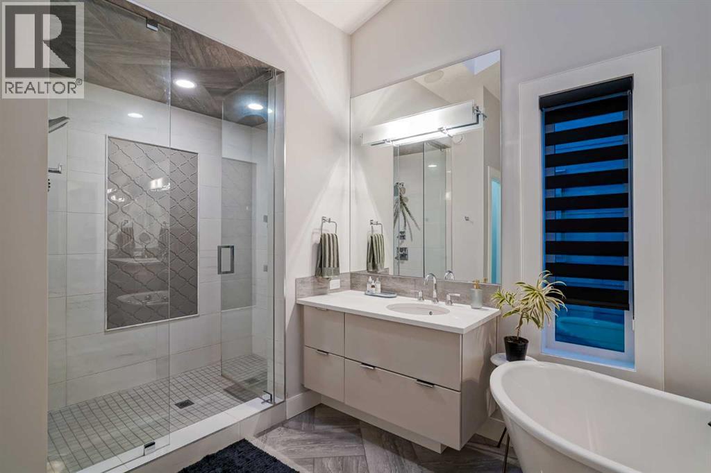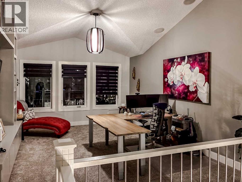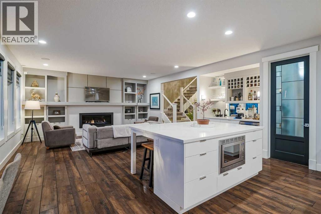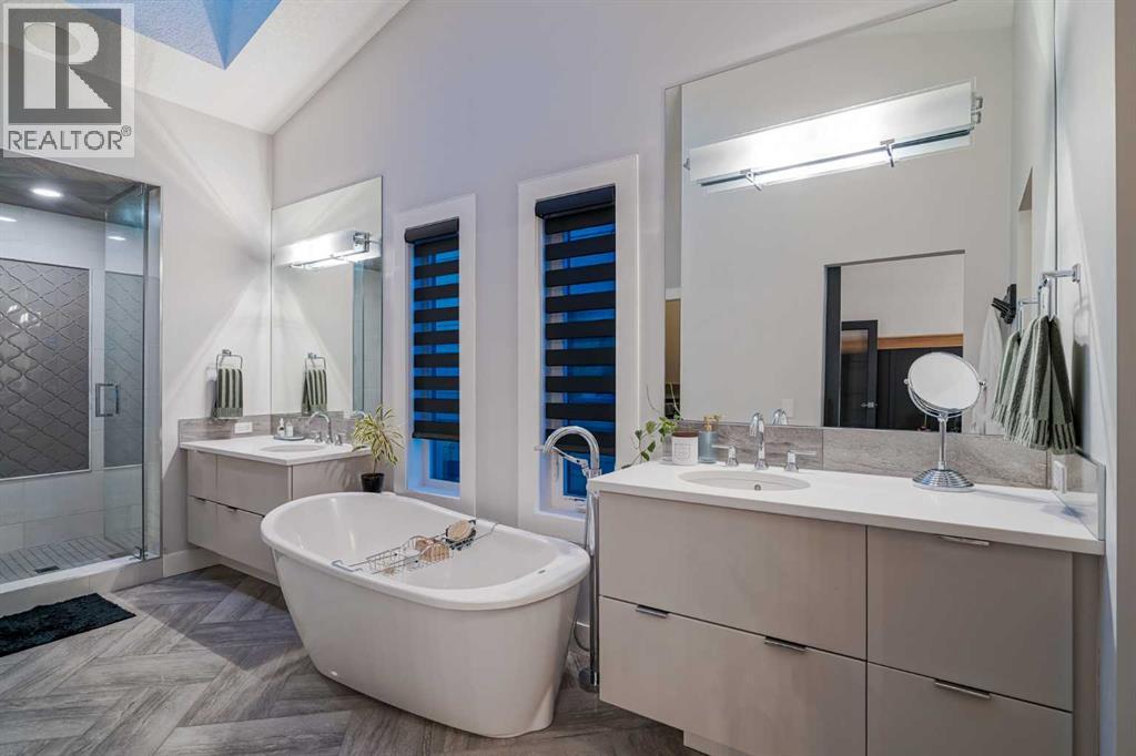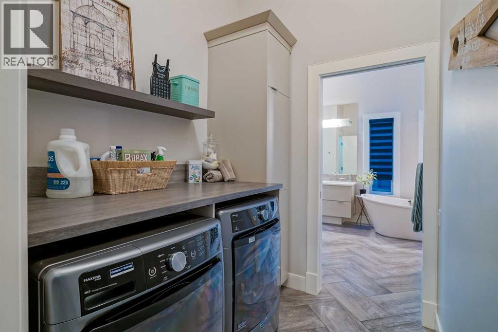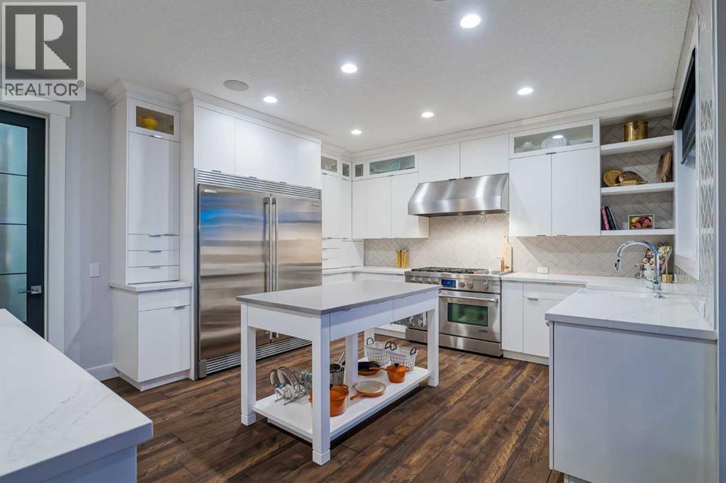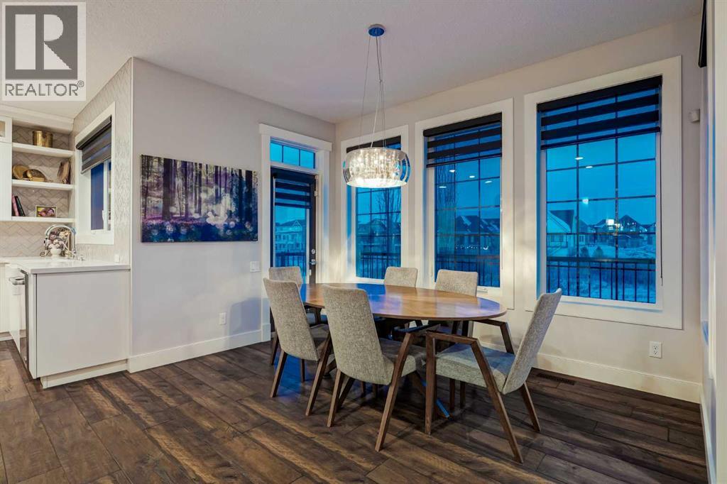 **OPEN HOUSE SUN APR 26th 2PM - 4PM** Welcome to this exceptional McKee-built custom home in the prestigious community of Coopers Crossing, where refined craftsmanship meets unobstructed pond-side living. Offering over 3,700 sqft of professionally developed living space, this fully finished 4-bedroom, 3.5-bathroom walk-out home delivers an elevated lifestyle defined by architectural detail and premium upgrades. From the moment you arrive, the curb appeal is undeniable - an exposed aggregate driveway, covered front porch with cedar soffit detailing, and a fully landscaped lot create a strong first impression. The 708 sqft triple tandem heated garage is both functional and impressive, complete with overhead storage and room for vehicles, toys, or workshop space. Inside, a dramatic open-rise staircase anchors the main level, while engineered hardwood flooring flows throughout. The great room is designed for both everyday living and upscale entertaining, featuring a custom fireplace surround with built-ins and expansive windows framing tranquil pond views. The chef-inspired kitchen is a true showpiece. Thoughtfully upgraded with crisp white cabinetry, double islands, and premium stainless steel appliances, it includes a 48” Jenn-Air dual-fuel gas range, Vent-A-Hood range hood, and Electrolux side-by-side refrigerator/freezer. An exquisite under mount sink and refined finishes complete this elevated culinary space. From this level, step outside to your private backyard oasis: a full-width 33’4” x 9’8” composite deck with stairs leading to professionally designed stone scaping, low-maintenance turf, and a dedicated firepit and patio area (15’4” x 10’4”). Upstairs, vaulted ceilings and two skylights flood the bonus room, primary suite, ensuite, and laundry room with natural light. The primary retreat offers serene water views and a spa-inspired ensuite designed for relaxation. Three additional bedrooms complete the upper level, including one with a charming Juliet balcony. The fully developed walk-out basement extends the living space seamlessly outdoors and features a wet bar, spacious recreation area, hobby room, and additional storage. Morning coffees overlooking the water in summer. Skating on the pond in winter. This is a home designed to be experienced in every season. Additional highlights include upper-level exterior pot lights, custom built-ins throughout, security camera system and panel, pre-wired in-ceiling speakers with two Sonos bridges, dual furnaces plus A/C. Rarely do homes combine this level of finish, functionality, and uninterrupted pond views in one of Airdrie’s most sought-after communities. This is luxury living - without compromise. (id:63190)