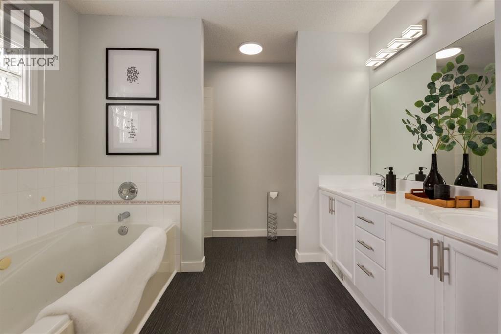 Located on a quiet cul-de-sac in the sought-after community of Hidden Valley this four-bedroom home offers an exceptional blend of privacy, family-friendly living, and tasteful updates. Tucked away from busy traffic, the home provides an unbeatable, peaceful setting where kids can safely play, walk to all levels of schooling, and neighbours connect in a true community atmosphere. As you enter, you are greeted by a spacious entryway with soaring open ceilings, and a beautifully finished metal spindle railing. The open-concept main floor layout provides the perfect place to gather with family and friends and is flooded with natural light through multiple large west facing windows. The large kitchen showcases stainless steel appliances, a gas stove, large kitchen island with bar seating, and a large corner pantry. The kitchen opens to your bright and cheerful living room, which overlooks your enormous backyard, and boasts a cozy two-sided fireplace that is shared with a main floor office. The dining room provides a great amount of space for larger family gatherings and from the main floor you can step outside onto your two-tiered deck to BBQ, relax and unwind in the sunshine in your west facing yard. The backyard is beautifully landscaped with mature trees, has a sprawling lawn space to play in, and comes complete with natural gas hook up, and a hot tub pad with hot tub wiring already in place. The main floor also features a large flex space at the front of the home that could be used as an additional office family room, formal dining room, playroom, or flex space. The main floor is completed by your spacious laundry room, and a sizable powder room. The stairs to upstairs showcase beautiful millwork and black, metal spindles, which are sure to impress. Upstairs boasts a huge bonus room with a stylish accent wall, towering 10.5ft ceilings, a warm fireplace, and affords the perfect place to relax and watch a movie, read a book, or play with your kids. The spacious prima ry bedroom provides room for king-sized furniture, has large west facing windows, boasts a huge 5-piece bathroom and a sprawling walk-in-closet. Down the hall features 2 additional large bedrooms one of which has the luxury of three large windows. The upstairs is completed with a well-appointed 4 pc bathroom with updated lighting. Downstairs has been fully completed, making this home move-in ready, and features a large media space, an additional bedroom, a den/office, a huge storage room, and a beautiful 3-piece bathrooms with a stand-up shower, stunning tile and elegant vanity. Don’t miss out on the opportunity to own on one of the most peaceful streets in this amazing community. With no through traffic, a new 40yr roof, newer hot water tank, and steps from access to the walking paths, greenspace, and schools, this incredible family home has it all. Live steps from Hidden Valley School (K-3) and Valley Creek School (4-9), and the High School this home makes the perfect place to raise your family. (id:63190)