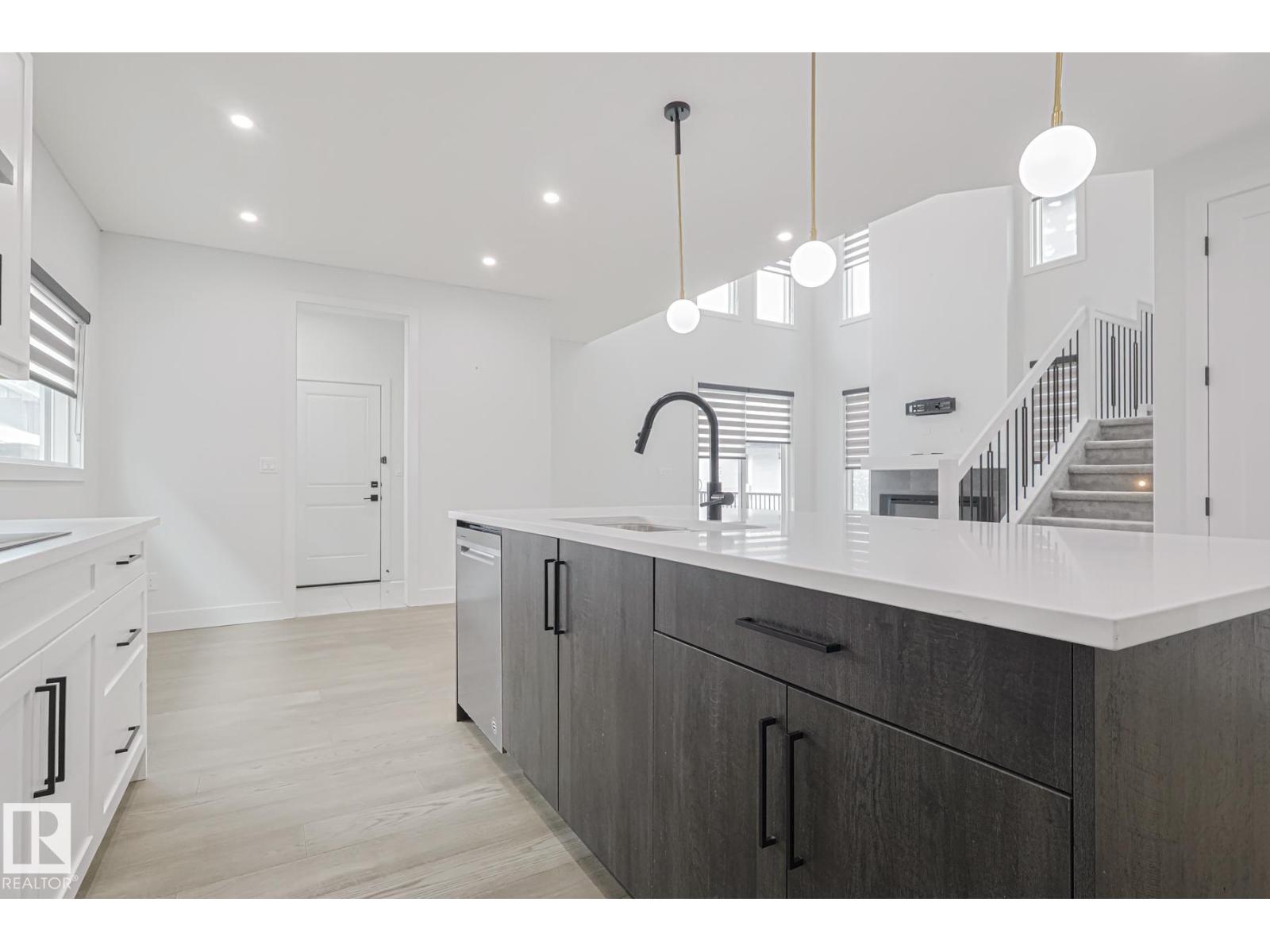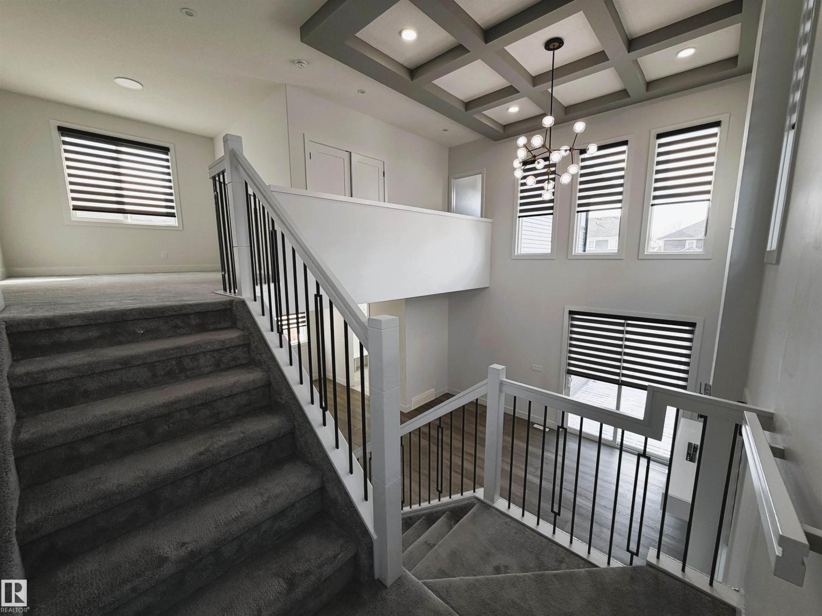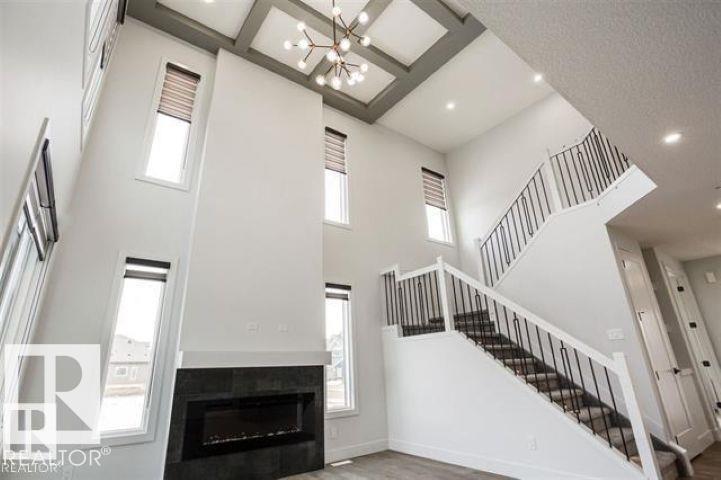 Exceptional Value | Luxury Custom Home by ART Homes Original owners present this custom-built 4-bedroom home (or 3 + den) with 9’ ceilings on all levels and large windows for abundant natural light. The open-to-below living room features a fireplace, wainscoting, and California knockdown ceiling. Main floor offers a full bath and den with closet—ideal for guests, extended family, or office. Kitchen includes stainless steel appliances with induction stove. Rear-attached garage with driveway allows a spacious layout. Upstairs features a primary suite with 5-piece ensuite and walk-in closet, plus two bedrooms, full bath, bonus room, and upper laundry. Basement includes 9’ ceilings, separate entrance, and three large windows—great future development potential (subject to approvals). Central A/C, tankless hot water, landscaping, deck, fencing, and window coverings included. Move-in ready. (id:63190)