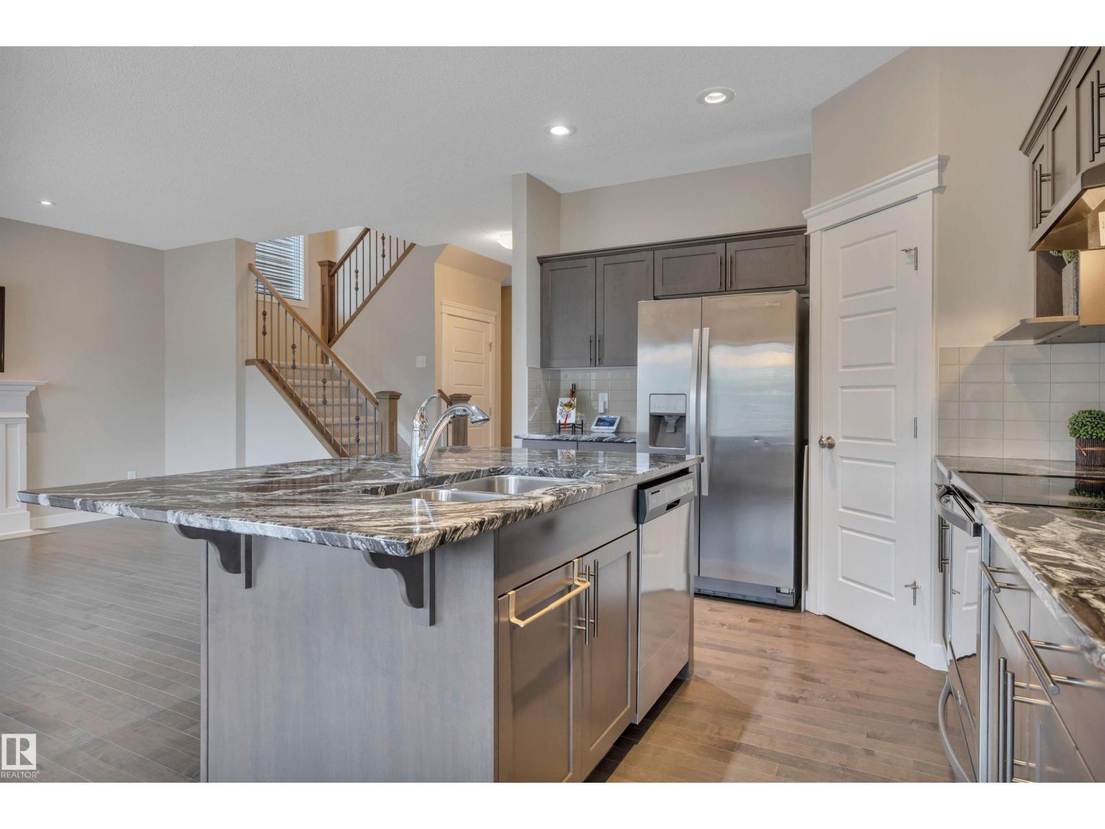 Welcome home to Glenridding, where this former Pacesetter SHOW HOME blends style, space, and an unbeatable location. Backing onto a scenic WALKING TRAIL and just minutes to Anthony Henday and Currents of Windermere, schools and parks, this 2286 sq ft home checks all the boxes. The open-concept main floor features gleaming hardwood floors, a bright living room with gas fireplace, and a versatile DEN, perfect for working from home. The gorgeous kitchen offers ample cabinetry, beautiful granite counters and a corner pantry for effortless everyday living. Upstairs you’ll find 4 BEDROOMS, a large bonus room, full bath, and a stunning primary retreat with walk-in closet and luxurious 5-piece Ensuite. The basement is ready for your personal touch. Enjoy a fully landscaped, south-facing backyard and double attached garage. This one truly has it all. (id:63190)