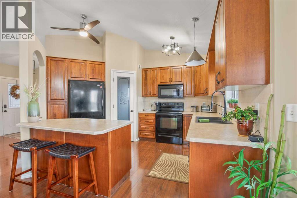 Beautiful, well kept bungalow with walk out basement in Elizabeth Park is now available for viewings. Main floor features two bedrooms along with a 4pc bath and a 3pc ensuite. When one enters the home they are greeted with an open floor plan, vaulted ceilings and a large kitchen with alderwood cabinetry. One can access a covered front porch or covered rear deck with a gas bbq line from the main floor so as to enjoy a cup of coffee rain or shine. Main floor laundry is a nice bonus. The basement features two more bedrooms along with a 4pc bath with the potential for a fifth bedroom if one wanted. Infloor heat and a walk out to a covered seating area is also nice. Updates include a new hot water tank in 2025, new edison lighting throughout the home and gutter guards at the rear of the home for the eavestrough. This home must be seen to be appreciated so don't be afraid to book a showing. (id:63190)