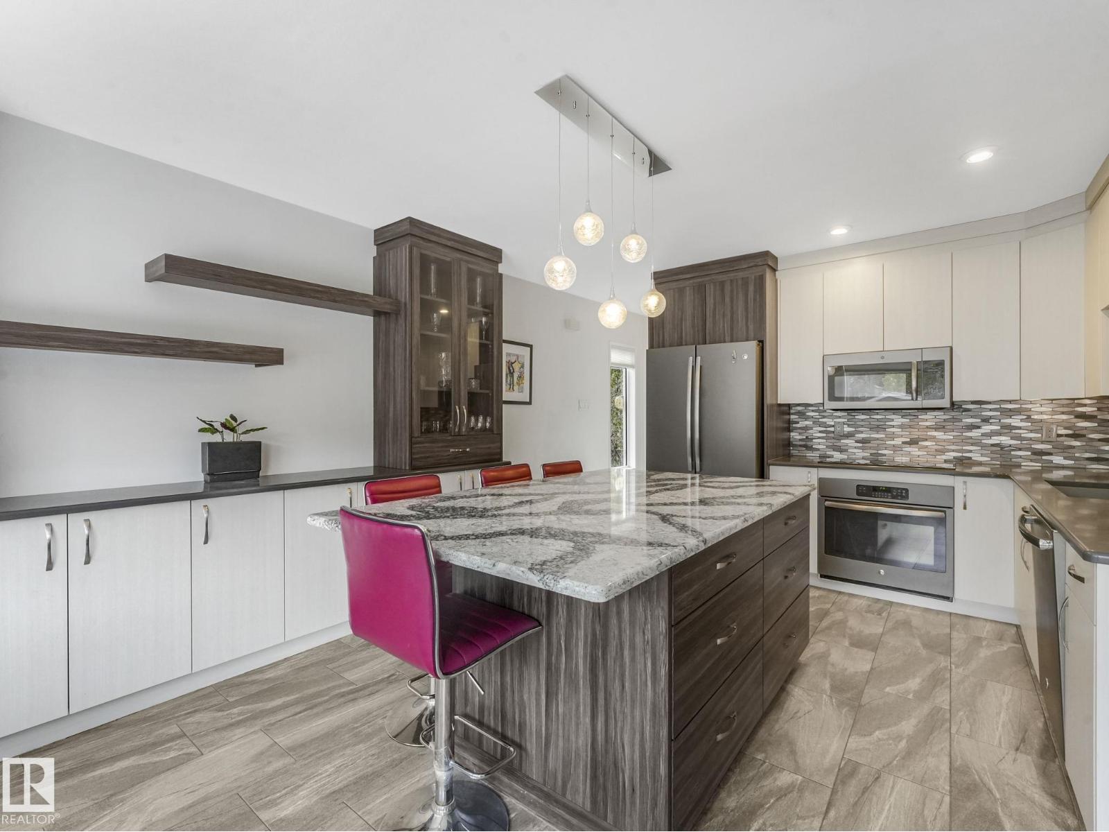 Spacious, comfortable & updated & over 1600 ft2 1.5 Story located in very desirable Allendale location! From front entry step on to original hardwood & in to spacious living rm with lge N facing window. Main floor features 2 bdrms, both with hardwood floors and mirrored closet doors. Updated 4 pce main Bath! Kitchen addition & full renovation in 2017! Custom cabinets by Metric Millwork, Cambria stone countertops, modern tile backsplash, large island, vinyl tyle flooring & built in oven and stove, dishwasher & microwave. Dinette overlooking sunny south back yard! Oversized master bdrm, walk in closet, family rm & 3 pce bath on upper level with lovely angled ceilings adding to character & charm. Bsmt is developed with large Rec Rm with newer flooring in 2023, storage, laundry rm with sink and crawl space under addition. HW tank 4 yrs old. Yard is sunny south facing, fully fenced and houses an oversized heated dble garage with loft area. Perfectly located on a south backing 46 X 130 lot! Move in and enjoy!! (id:63190)