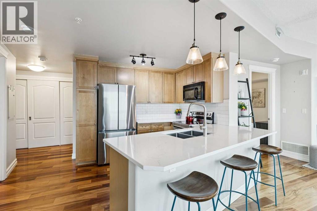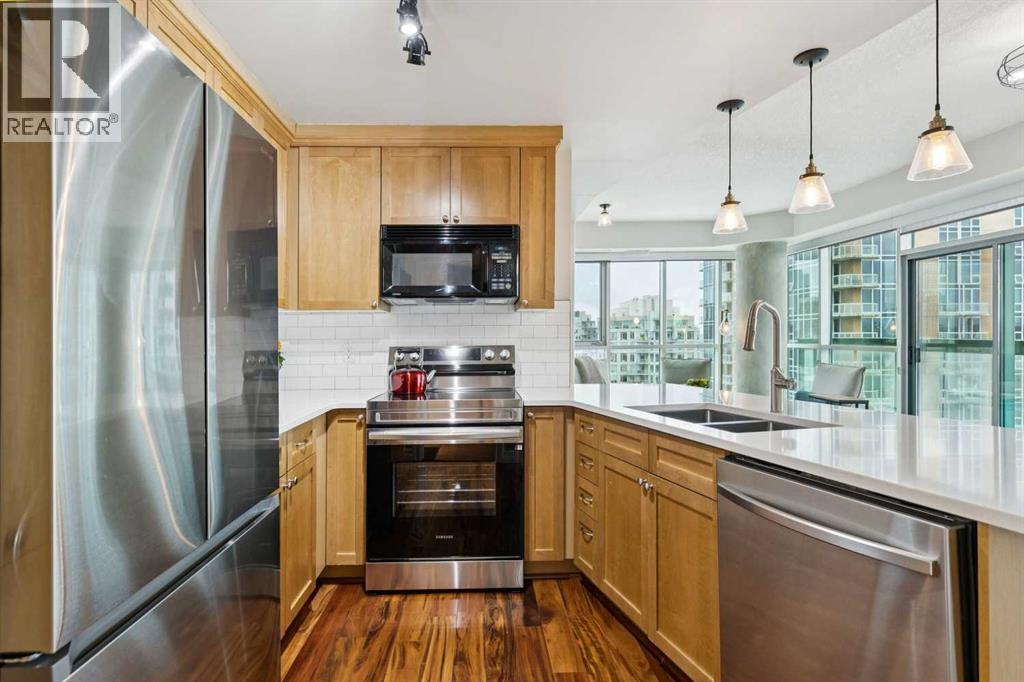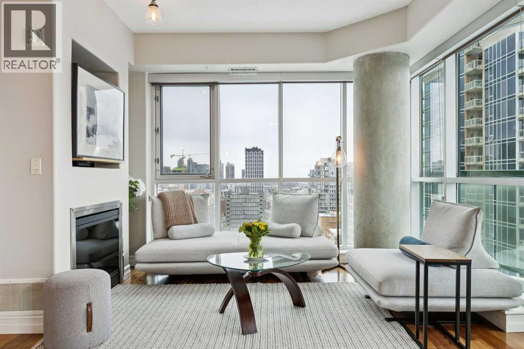 Welcome to #1701 in the Emerald Stone, an iconic concrete tower in the Beltline that has one of the best walkability scores in the city. Unit 1701 is a special home. What blew me away when I first walked in was the expansive view out the floor to ceiling windows. You get everything from a mountain view to the west, a south view over the vibrant 17th avenue entertainment district, and an eastern view of the city’s downtown skyline. Beautiful in the daytime, and magical at night, the view can’t be beat. Next, the floor plan is great, featuring an upgraded kitchen with new appliances, quartz counters, and backsplash that is open to the rest of the living area. A dedicated dining space, as well as a cozy living room with a fireplace complete the main area. The balcony is phenomenal. In fact, the 17th floor is the start of the full size balconies in the building. Lower floors don’t get this much outdoor space. There are two bedrooms in #1701, including a primary suite with a full ensuite. Also, California closets have been used to upgrade the bedroom storage spaces. The building itself has an extensive amenity package including a weekday concierge, a high-end fitness facility, and a refined social lounge for hanging out if you need more space for a party, or just a social gathering. Secure underground parking and extra storage also come with this home. The “walk-score" for the Emerald Stone is one of the best in the city, with the boutiques of Mount Royal Village and the heartbeat of 17th Avenue right out your front door. For more details, and to see our 360 Virtual Tour, click the links below. (id:63190)