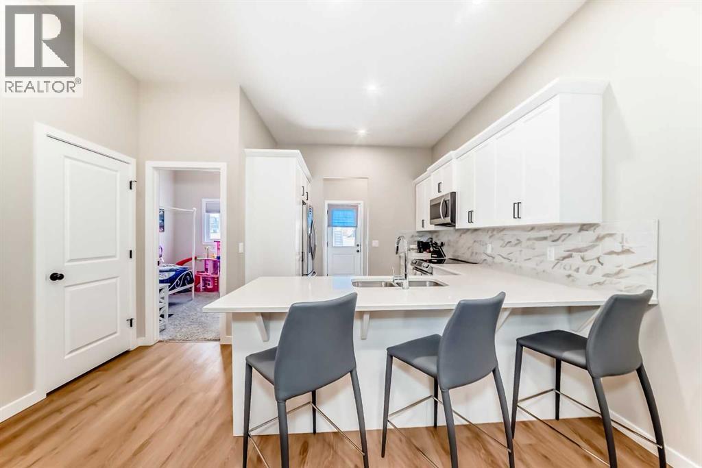 PRICE IMPROVEMENT!!! Welcome to this recently built (2022) and meticulously maintained 2 bed/2 full bath, AIR CONDITIONED bungalow; nestled in the community of Lanark Landing. The OPEN CONCEPT FLOOR plan and 10-FEET HIGH CEILINGS add to the spacious feel of this gorgeous home. LUXURY VINYL PLANK can be found throughout kitchen, living room and hallways. The Beautiful kitchen features QUARTZ counter tops, white shaker cabinetry, CROWN MOLDING, plenty of storage drawers, large PANTRY and WIFI enabled STAINLESS STEEL appliances. Living room boasts natural light thanks to a SUN-TUNNEL that leads into a large dining area perfect for entertaining. The primary bedroom features a MASSIVE WALK-IN CLOSET and Ensuite accented with QUARTZ counters and CUSTOM GLASS shower enclosure. The main floor is finished off with a MUDROOM w/bench, large secondary bedroom, laundry closet and 4 piece-bathroom also accented with QUARTZ counters. Do you want to add your personal touches to this home? Over 800sq.ft of undeveloped basement space awaits your imagination, complete with rough in’s and 3 large windows. This LOW MAINTENENCE property has thoughtful design elements including a FRONT VERANDA, CONCRETE PAD for the private patio or potential RV PARKING, a FULLY INSULATED and DRYWALL detached single garage equipped with WIFI OPENER, rock landscape garden out front for curb appeal and full VINYL FENCE and sodded backyard for those summer barbeques. Location is perfect, walking distance to walking paths, skating rinks, basketball courts, parks, schools and Kingsview Market. Easy access to Calgary with the new 40th Avenue overpass. The best value property of it's kind in Airdrie - Do not miss this opportunity! (id:63190)
