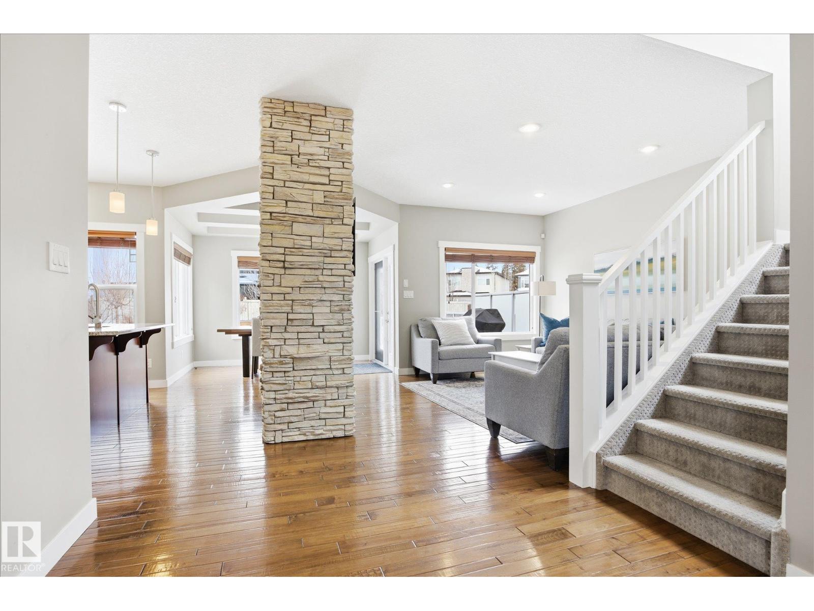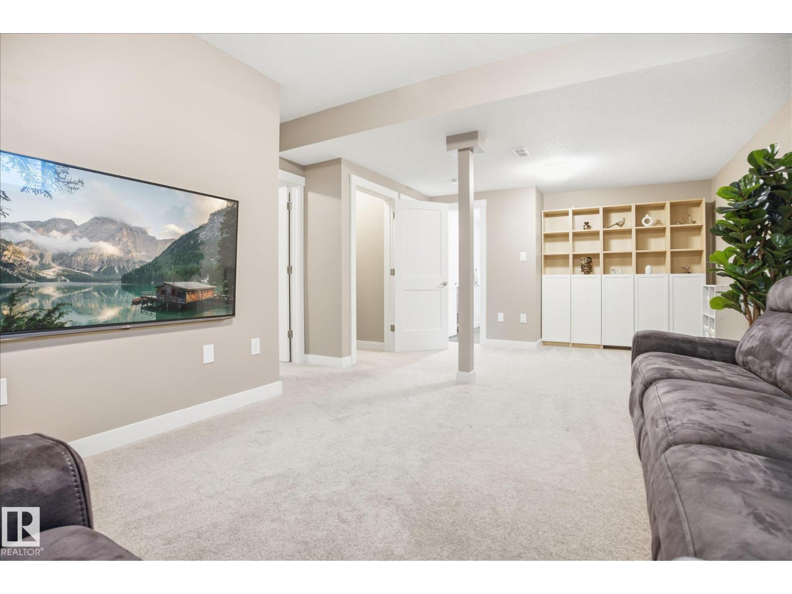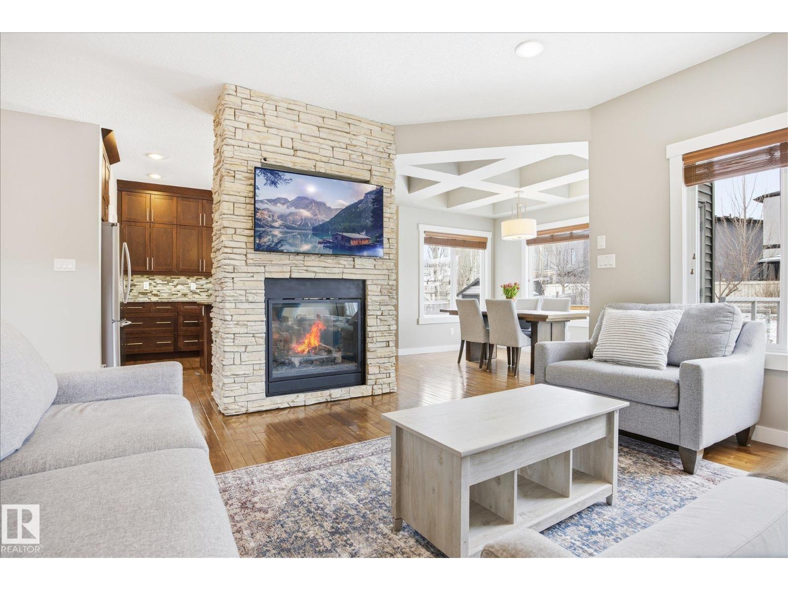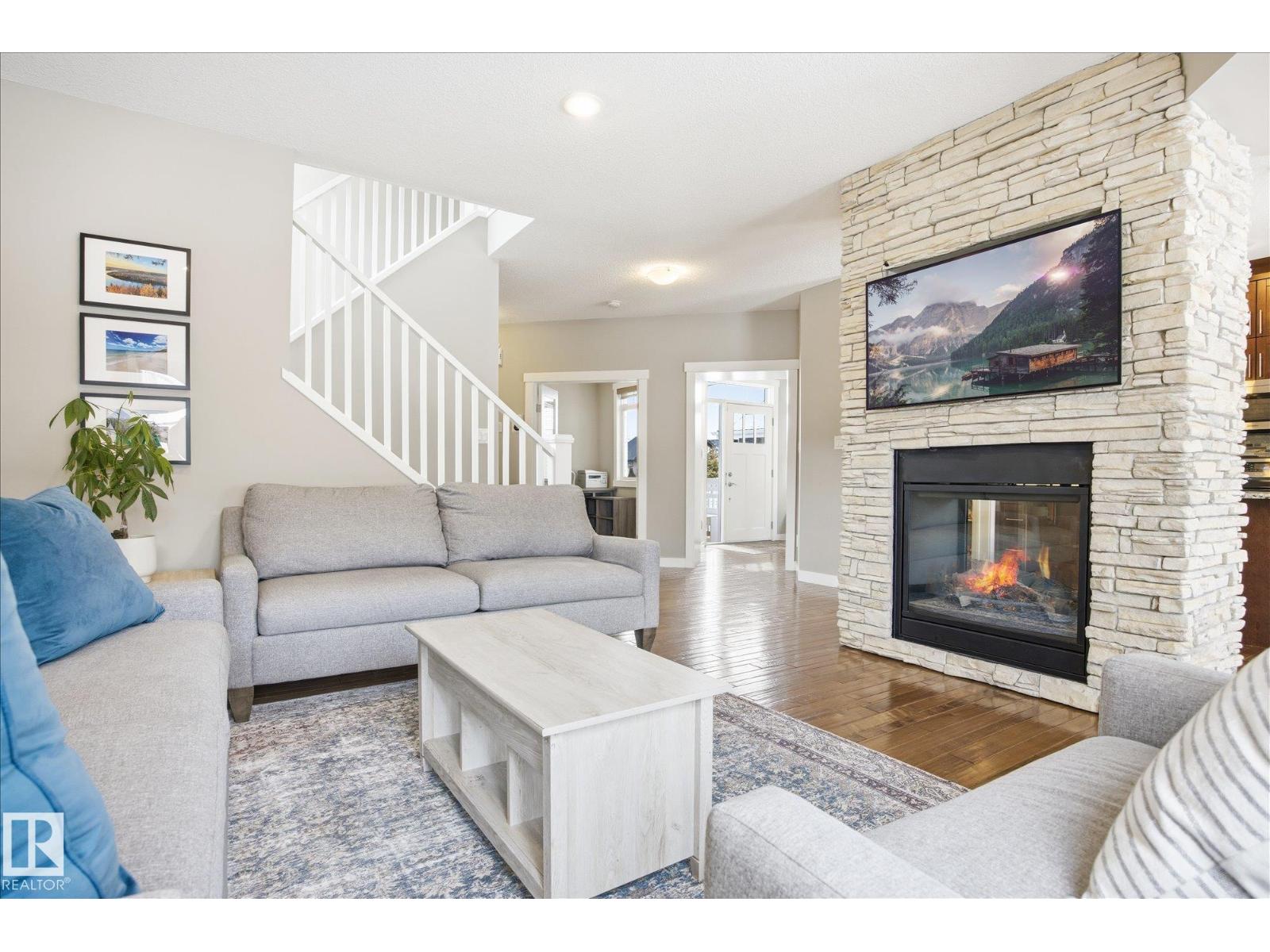Stunning, well-kept 2-storey home offering comfort and style! The main floor features a bright living room with a beautiful fireplace, a spacious kitchen with ample cabinetry, pantry, and island, plus a dining area with access to the deck and massive backyard. The main floor also includes a den, laundry and a 2-piece bathroom. Upstairs boasts a beautiful bonus room. The primary bedroom offers a walk-in closet and gorgeous ensuite with double sinks, a soaker tub and shower. Two additional good sized bedrooms and a 4-piece bathroom complete the upper level. The fully finished basement includes an additional bedroom, bathroom, and ample storage perfect for guests or family. Additional features include turf in the front, an oversized double attached garage, central air conditioning, new furnace (2023), and new dishwasher (2023). Conveniently located steps to the Cameron Heights' amenities - outdoor rink, splash park, playground, community garden and community centre. (id:63190)