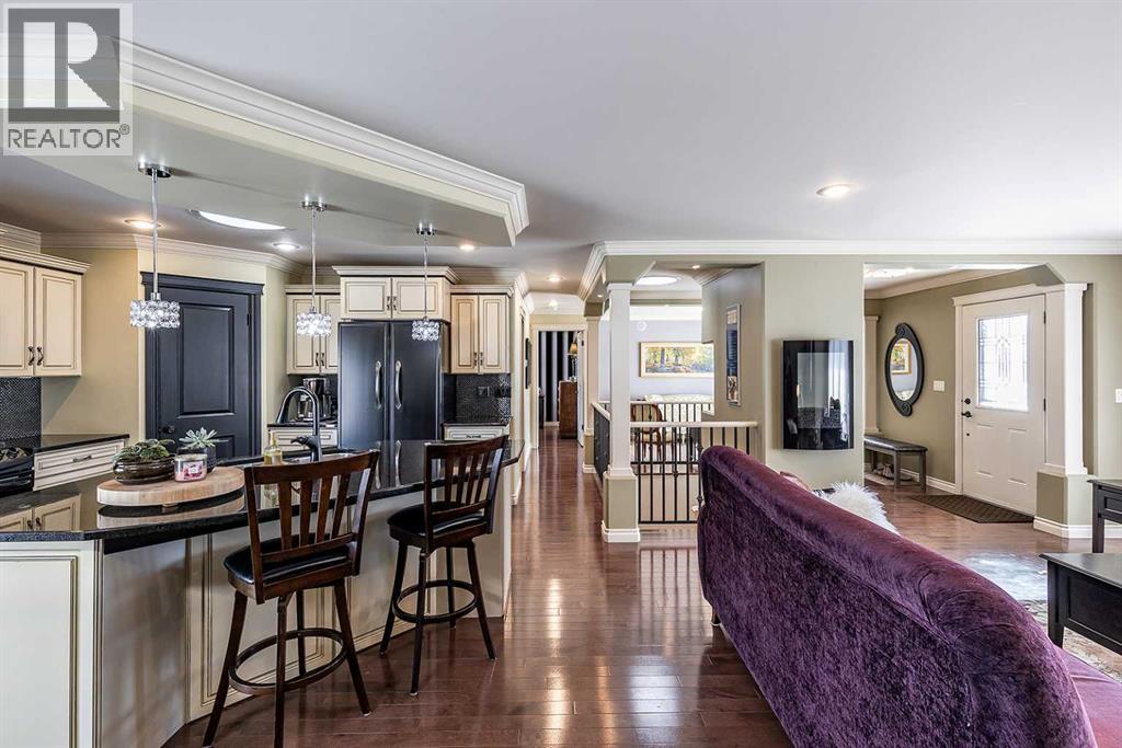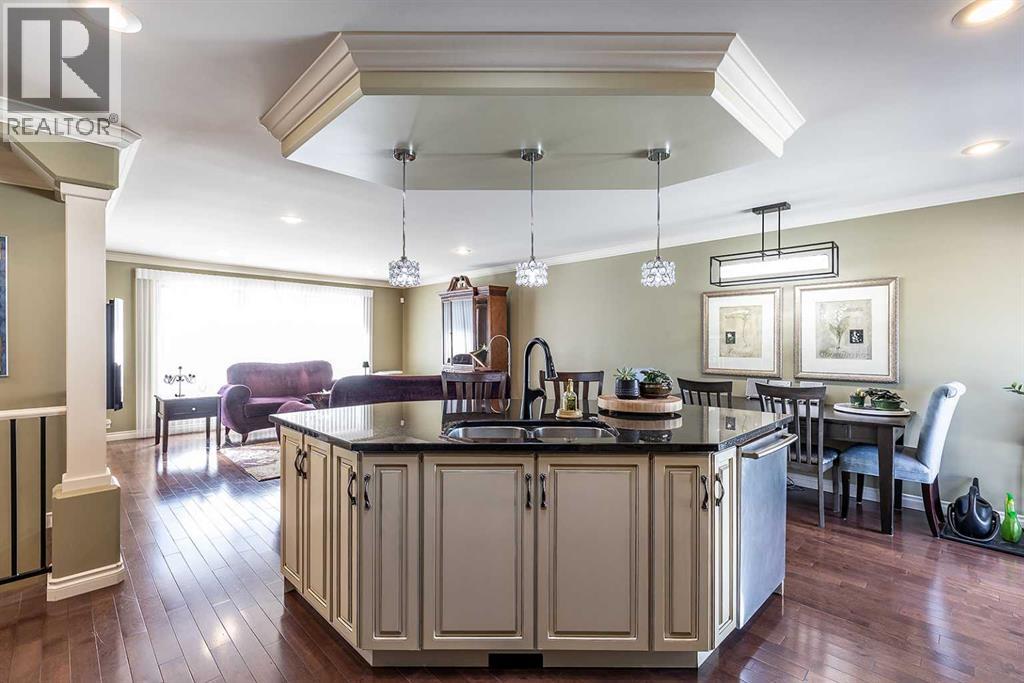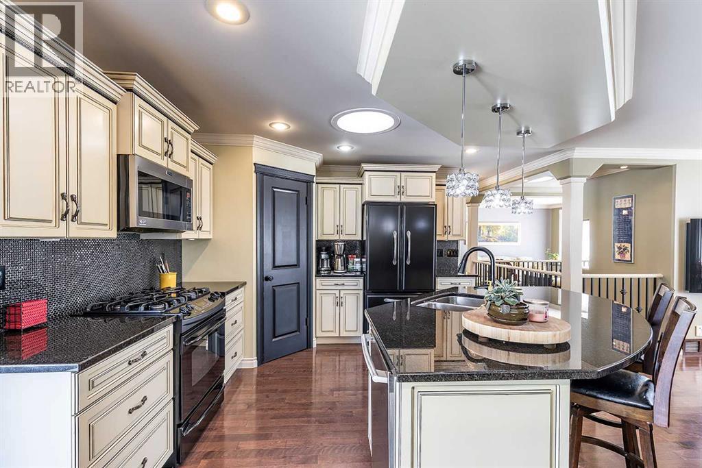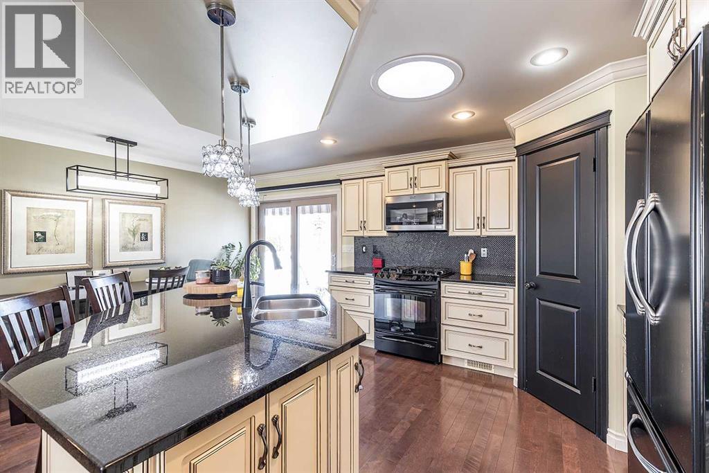 Some homes are beautiful inside. This one is beautiful inside and out. Beautifully Updated Ross Glen Bungalow with an Incredible Backyard Retreat. Welcome to this 1,191 sq. ft. bungalow tucked into a quiet court in sought-after Ross Glen, just steps from walking paths and green space. With charming curb appeal and mature landscaping, this home has been thoughtfully upgraded and meticulously maintained. Inside, rich hardwood flooring and abundant natural light create a warm and inviting atmosphere. The well-designed main floor offers two comfortable living areas (or a traditional dining room), providing flexibility for both everyday living and effortless entertaining. The kitchen is both stylish and functional, featuring warm cream cabinetry, granite countertops, a central island with seating, and a corner pantry for added storage. The adjoining dining area offers direct access through patio doors to the backyard — creating seamless indoor-outdoor flow. The primary bedroom serves as a relaxing retreat, complete with a walk-in closet and a beautifully appointed ensuite showcasing a soaker tub, separate walk-in shower, and dual sinks. A convenient two-piece powder room connects to both the ensuite and hallway, offering practical access for guests. The fully finished lower level extends your living space with a massive recreation room ideal for movie nights or hosting family and friends, a cozy office nook, a spacious den, a second bedroom (window does not meet egress), a full four-piece bathroom, and a functional laundry area. Step outside and you’ll discover what truly sets this property apart — an expansive, private backyard oasis. Mature trees, lush gardens, tranquil fountains, and generous entertaining space create a peaceful setting that feels like your own retreat. An attached double garage completes the package, offering convenience and additional storage. This exceptional Ross Glen home blends comfort, thoughtful upgrades, and an incredible outdoor lifestyle — all in one of the city’s most desirable neighbourhoods. (id:63190)