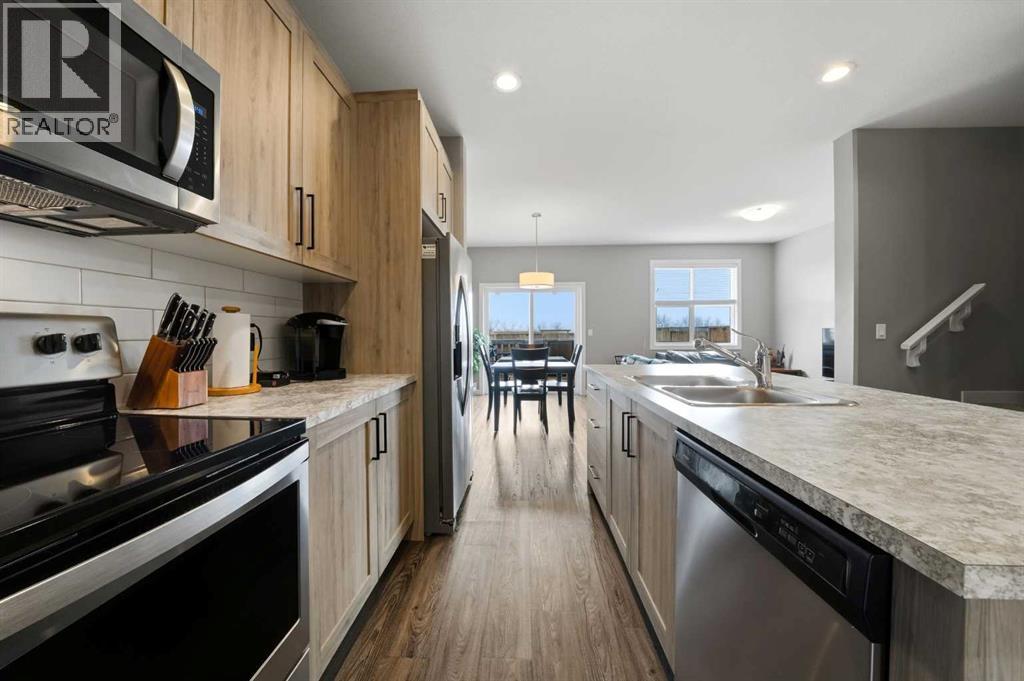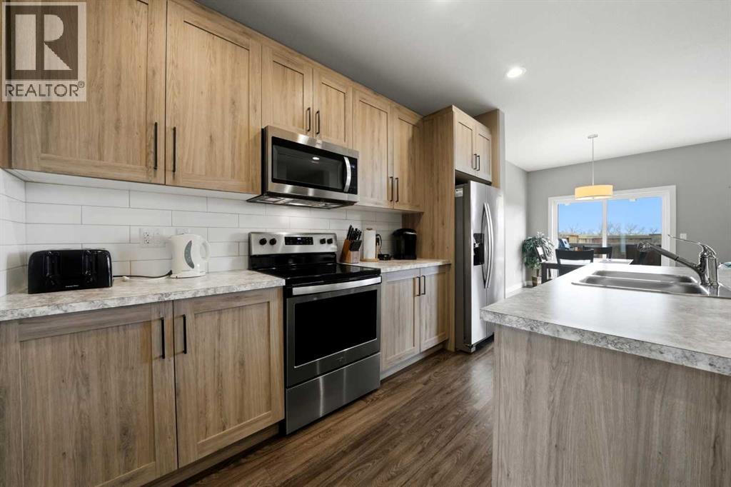 Built in 2018 and exceptionally well maintained, this 3-bedroom, 2.5-bath townhouse in Panorama Estates, Blackfalds offers nearly 1,350 sq ft of functional, modern living with NO condo fees. The bright open concept main floor features 9’ ceilings, recessed lighting, and durable luxury vinyl plank flooring throughout. The kitchen, dining, and living areas flow seamlessly, with direct access from the kitchen to the south facing 10x12 back deck, complete with a gas line for your BBQ. With no current development behind, you’ll enjoy added privacy and quiet while relaxing or entertaining outdoors. Upstairs offers 3 spacious bedrooms, including a primary suite with walk-in closet and private ensuite. The unfinished basement includes a bathroom rough-in and is a blank canvas, ideal for your own future development, a rec room, or additional storage. The home is also roughed-in for central vacuum. Built by Abbey Platinum Master Built, additional features include triple-pane Low-E argon windows, R50 attic insulation, upgraded trim, and an attached single garage. A clean, well cared for home! Tenant occupied lease in place to October 31, 2026. Rent is 2150 + utilities. Opportunity for an investor looking for a property with a good return and tenants in place. (id:63190)