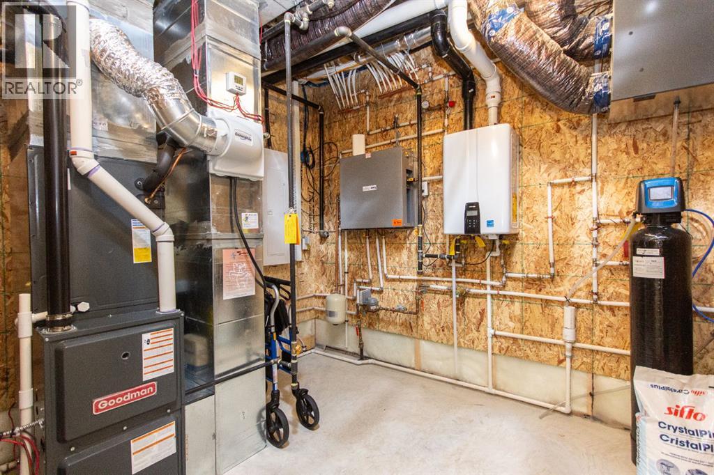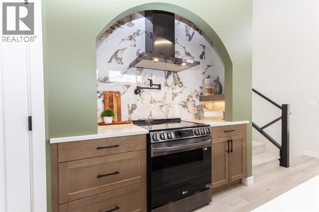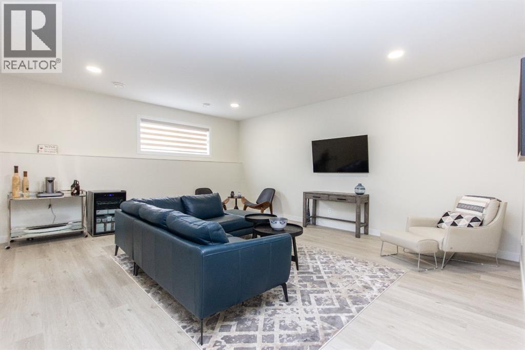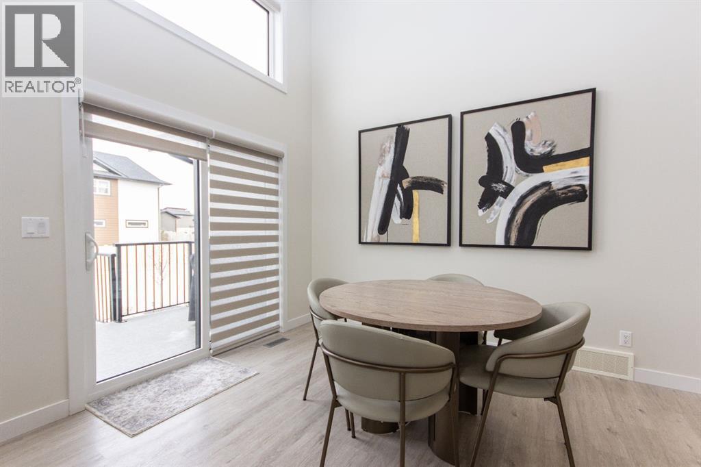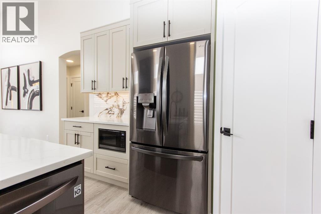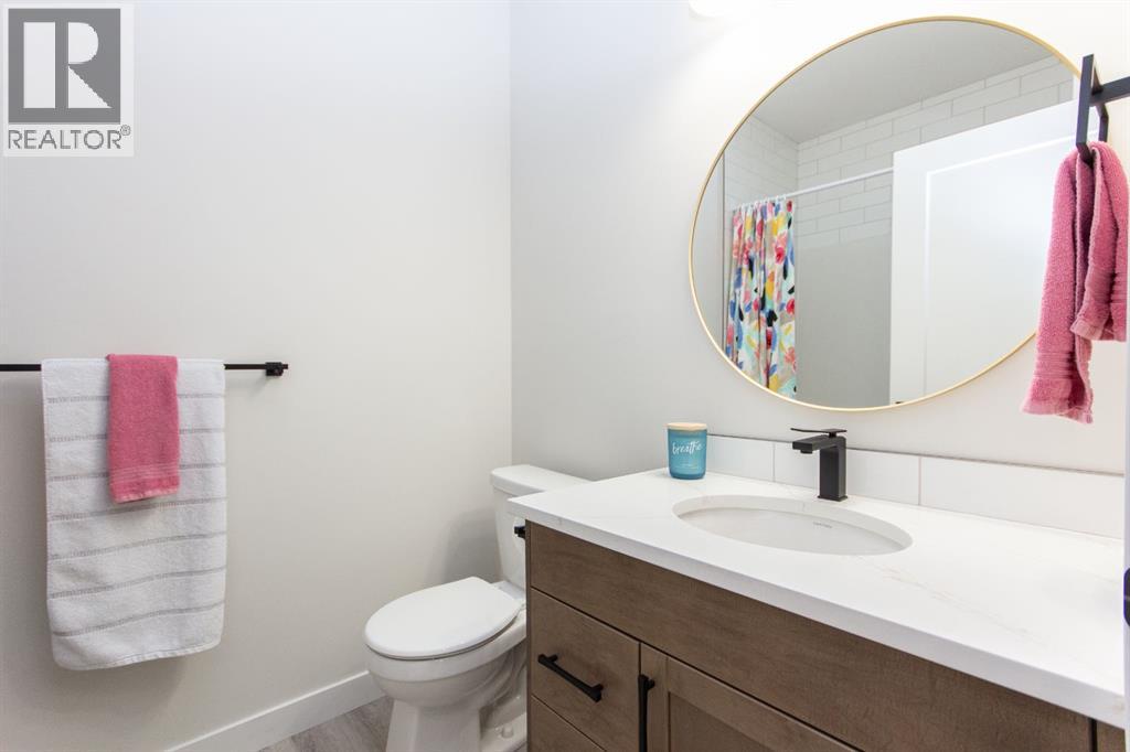 Welcome to this stunning modified bi-level located across from the pond in Evergreen! The bright, open concept main floor features 13’ ceilings, large windows with powered zebra blinds, beautiful vinyl plank flooring and a electric fireplace with a striking floor to ceiling feature wall. The kitchen is a true highlight with quartz countertops, plenty of cabinet space, black stainless-steel appliances, a corner pantry and a large centre island with eating bar and under mount sink. There is an impressive arched feature wall over the stove that is complete with hood fan, pot filler, and full tile backsplash. Two generous bedrooms and a full 4-piece bathroom complete this level. A few steps up lead you to your private primary suite featuring a loft sitting area overlooking the open main floor. The spacious primary bedroom easily accommodates king-sized furniture and offers a large walk-in closet and a luxurious 5-piece ensuite featuring a freestanding tub, separate fully tiled shower with bench, dual sinks with under-cabinet motion lighting, and an exposed brick feature wall.Downstairs, the fully finished basement includes in-floor heat, a large family room, a 4th bedroom, and another 4-piece bathroom. The separate laundry room provides plenty of space for a folding table plus additional storage. This home is equipped with hot water on demand, a high efficient furnace as well as a water softener.Step outside through the dining area onto the large west-facing low-maintenance deck complete with Duradek, aluminum railing, and a gas line for your BBQ. The deck is fully enclosed with hardie board, creating an impressive under-deck storage space. Enjoy your fully fenced and landscaped backyard complete with artificial turf, vinyl fencing, a large concrete patio, and firepit area, ideal for summer evenings and low-maintenance living.The front double attached garage is fully finished, heated, and upgraded with epoxy flooring.This home truly checks every box: style, space, upgrades, and an unbeatable location. Turn-key ready and packed with features! (id:63190)