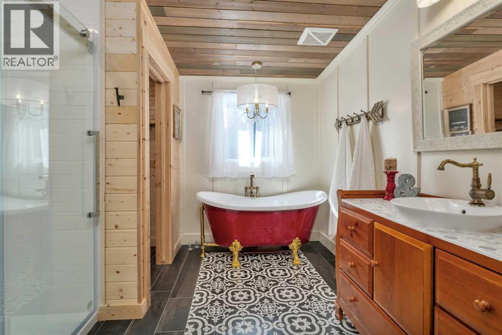 This lovely *RIVER FRONT* property features BREATHTAKING vaulted 16' wood CEILING and millwork create a DRAMATIC sense of arrival, while expansive windows draw in NATURAL LIGHT and treed views. The space is anchored by a Rumford 1000 Guillotine WOOD BURNING fireplace, with an oversized, old-growth MANTEL milled from a tree felled on the property, which is an ARCHITECTURAL statement designed for UNFORGETTABLE evenings. Crafted for both ENTERTAINING and everyday ease, the kitchen pairs UPGRADED white CABINETRY with butcher block counters, a REFINED tile backsplash, and S/S appliances, including a GAS RANGE. A reclaimed VINTAGE island in a soft DESIGNER blue adds character. The DEEP ceramic farmhouse sink is CROWNED by a rare early 1800s British COPPER fireplace hood. Custom BANQUETTE seating with built-in STORAGE completes a dining space that feels CURATED and INTENTIONAL. Privately positioned, the PRIMARY suite is a true sanctuary entered through ANTIQUE French doors. Vaulted ceilings with custom BEAM detailing and a double 10' DORMER enhance its usability, while a serene sitting area captures the PRIVATE river view. Designed with a SPA sensibility, the ensuite features an OVERSIZED shower, subway and large format tile, finished with BRASS fixtures, plus a private water closet and antique door. A striking RED and GOLD clawfoot tub becomes the CENTREPIECE! Purpose-built for hosting and MEMORY making, the bunk room is a STANDOUT! With two doubles, two singles, and two trundles, it can sleep 8. Each bed includes DEDICATED lighting, with USB chargers at the double bunks. The custom-welded and painted PIPE rails/ ladders add boutique LODGE elements. A view-oriented room with two LARGE windows offers FLEXIBILTY as a guest room, office, or quiet lounge. Behind the scenes, the home is EQUIPPED with stacked laundry, a water softener, a high-efficiency combi boiler SUPPORTING on-demand hot water/in-floor heating. Extending the living space beyond the main home, the SUNROOM off ers a tranquil, light-filled retreat with a versatile Sunshade WINDOW/SCREEN SYSTEM, tinted flexible windows, and two sliding door entries. A SHOWPIECE courtyard features a large gravelled FIREPIT area with the custom FORNO BRAVO CASA90 36" PIZZA OVEN-the ultimate in outdoor ENTERTAINING. A charming ADDITIONAL cabin offers FLEX-SPACE for overflow guests/studio. Finished with D PINE interior, RUSTIC STYLE flooring, a covered deck, and its OWN 30amp electrical service-a rare bonus that EXPANDS the property’s POSSIBILITIES. 2 dedicated CAMPSITES add a unique lifestyle element-1, 30 amp service-2nd, 15amp, a gravel pad and a SEPERATE firepit area. An outdoor shower adds CONVENIENCE, perfect after a day on the WATER or TRAILS. The tandem DOUBLE garage is fully equipped for WORKSHOP use with its 100amp electrical SERVICE and 220V wiring for tools/machinery, 50amp EV CHARGER, attached 320 sq ft CARPORT, and custom entrance PORTICO. Monolithic slabs with SUPPORTING screw piles ensure lasting STRUCTURAL integrity! (id:63190)