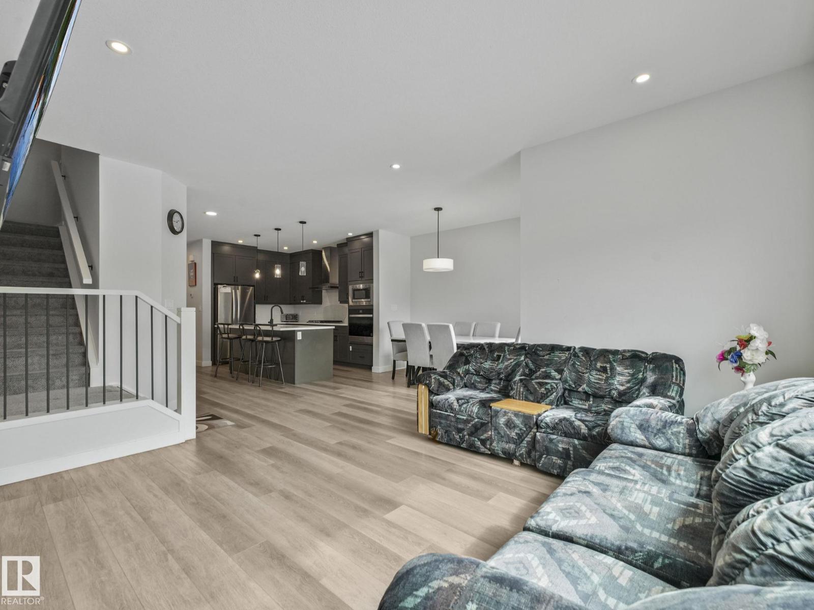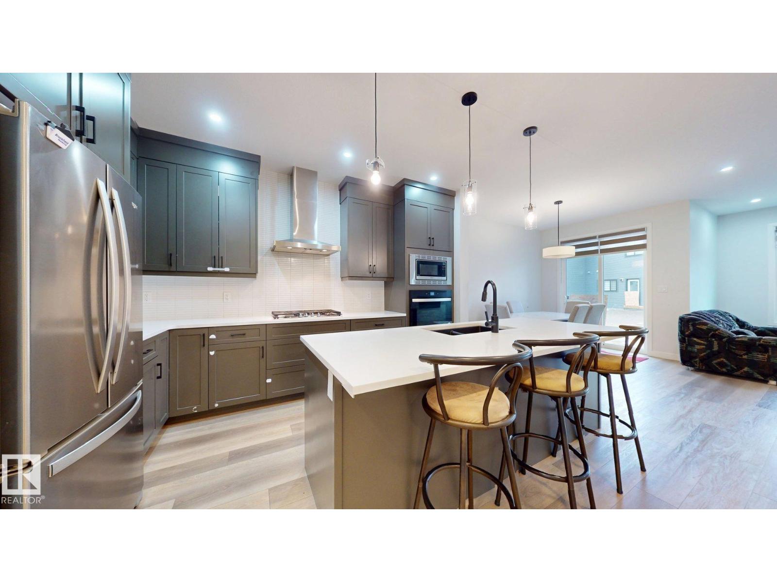 Discover exceptional value in Orchards! This stylish home features ***DOUBLE ATTACHED GARAGE AND FINISHED BASEMENT WITH SEPARATE SIDE ENTRANCE***. Bright, open-concept layout with South-backing exposure fills the home with natural sunlight year-round. Main floor impresses with; 9-ft ceiling, stunning chef’s kitchen with stainless steel appliances, full-height cabinetry, quartz countertops, undermount sinks, and large island with wrap-around seating—ideal for both everyday living and entertainment. Spacious family room with sleek fireplace, dining area, and 2-pc bath completes the main level. Upstairs, unwind in the generous primary suite featuring walk-in closet and 4-pc ensuite, Two large bedrooms, 3-pc bathroom, bright bonus room, and conveniently located laundry. ***FINISHED BASEMENT*** includes 1 bedroom, kitchen, living area, and 3-pc bath—perfect for extended family. Close to schools, playgrounds, parks, walking trails, transit, shopping, and major routes—offering comfort, style, and affordability! (id:63190)