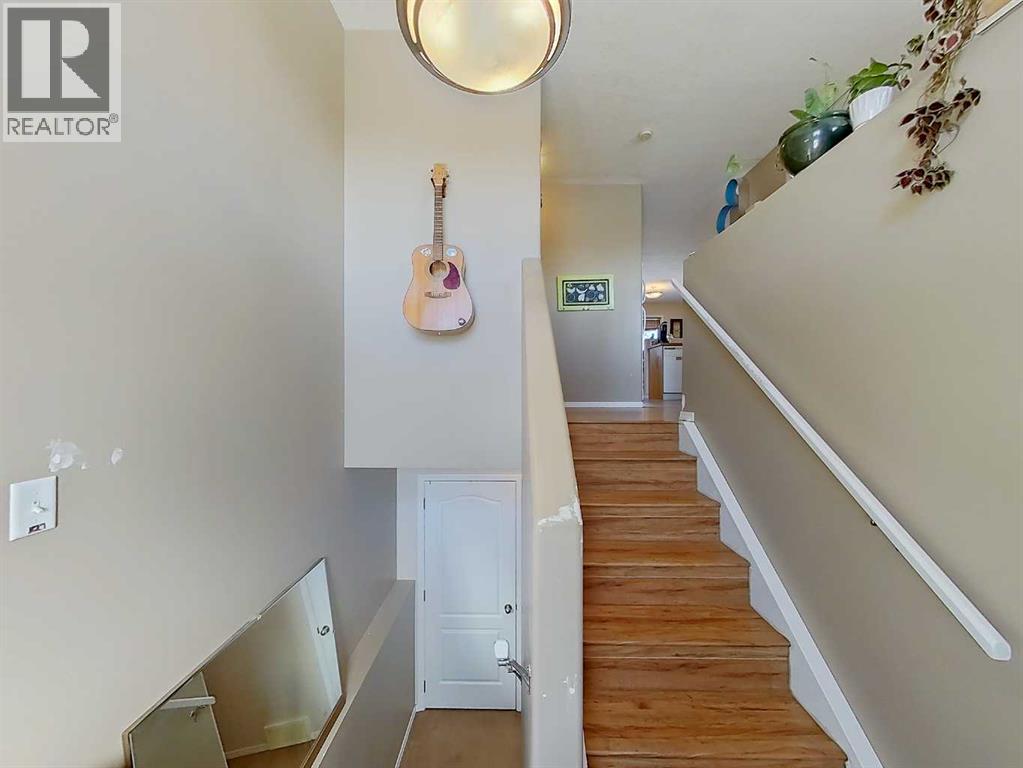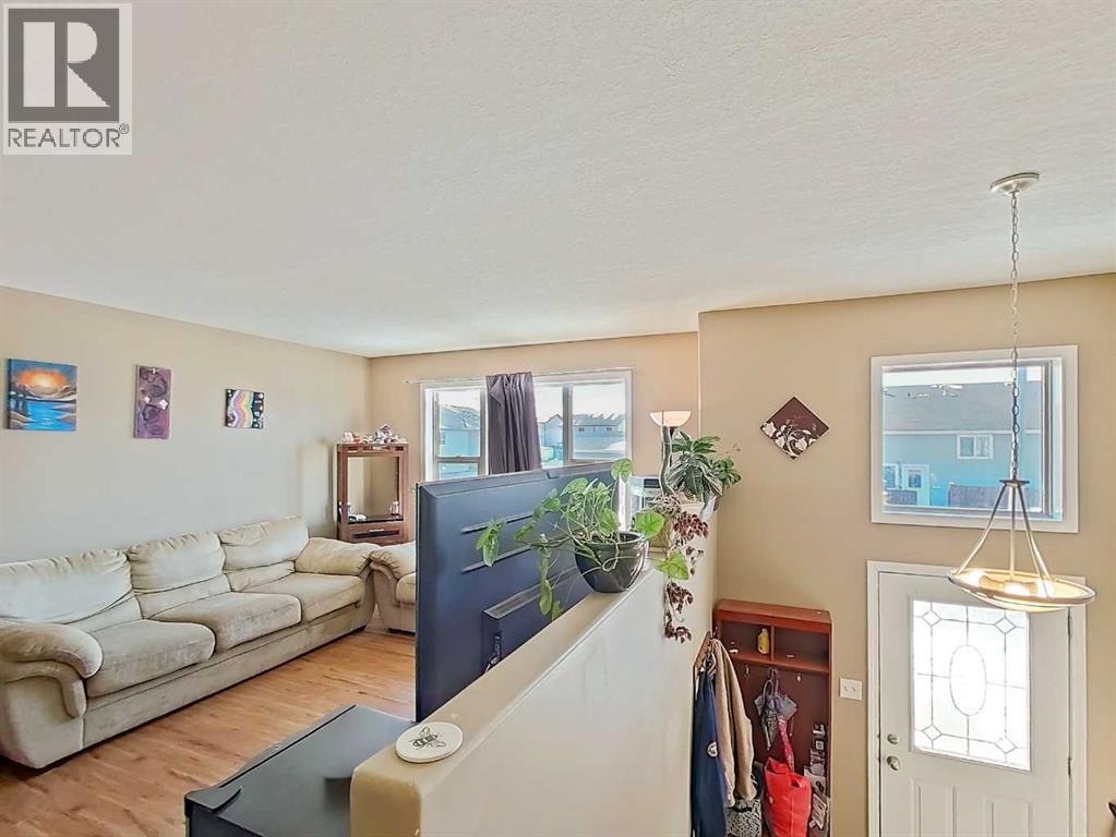 Step into home ownership with this affordable, fully finished half duplex in Mountain Village, Rocky Mtn. House. Nice and comfortable layout with a large living room, u-shaped kitchen with plenty of cupboard/counter space, two piece bathroom located near the front stairs and the laundry area conveniently located near the back door of the main level. The lower level features 3 bedrooms with nice sized windows, a full bathroom and under stairs storage with a sump pump. There's a covered back deck as well as a fenced back yard with parking pad and storage shed. The shingles were replaced 2 years ago and the hot water tank replaced 5 years ago. (id:63190)