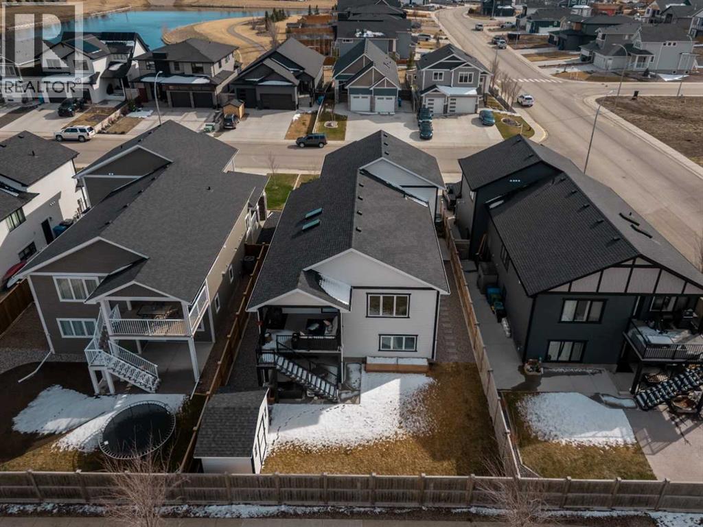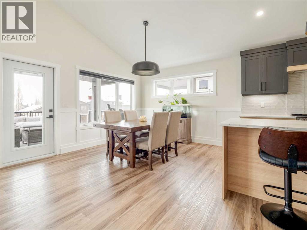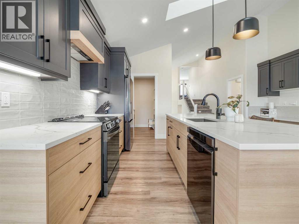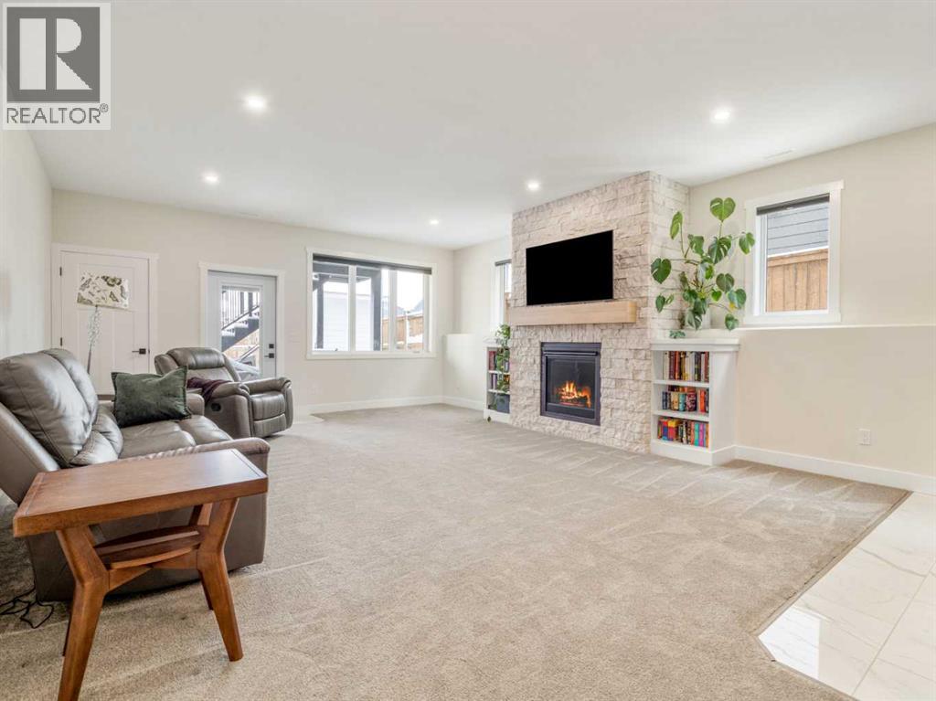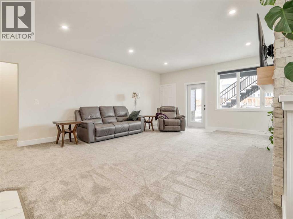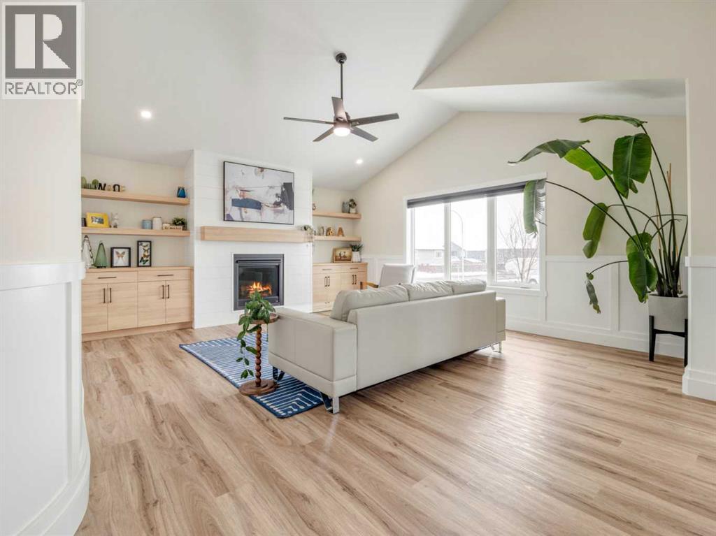 Incredible 2 year old large modified bi-level home in Cottonwood Estates originally built by Grizzly Ridge Developments! This 5 bed, 3.5 bath home has hardiplank exterior siding with stone accents, and a MASSIVE concrete front driveway that fits 6 vehicles! Heated garage is also a 26x29 and easily fits 2 more vehicles. Large welcoming entry. A half staircase to main floor showcases a large vaulted ceiling and vinyl plank flooring. Kitchen has upper grey upper cabinets, and lower lighter wood pattern. Kitchen has quartz counters, stainless steel appliances, and butler pantry with more cabinets and counterspace. Dining room is a good size and has large window and door to covered deck out back with gas line and water tap. Living room has custom built-in shelving and cabinets with gas fireplace and mantle centered on a feature wall with shiplap design. Main floor also has primary bedroom with ensuite that features double sinks, large tiled walk-in shower, separate toilet room, and walk-in closet with laundry machines. There is also another 2 piece bathroom on the main. Upper level above garage features a large bonus room with big hall closet, 2 big bedrooms, and a full bathroom with tub/shower combo. Walk-Out Basement with 9 foot ceilings is fully developed with wet bar featuring space for a full size fridge, family room with feature floor to ceiling stone wall surrounding the gas fireplace, and closet and door to covered patio out back. There are also 2 more large bedrooms each with their own walk-in closet, a full bathroom with tub/shower combo, and a laundry room(currently being used as a small office) with counter and cabinets. Yard is fenced and landscaped with a nice shed. Home has conveniences of central a/c and tankless hot water! This home is turn-key ready to move in and enjoy! (id:63190)