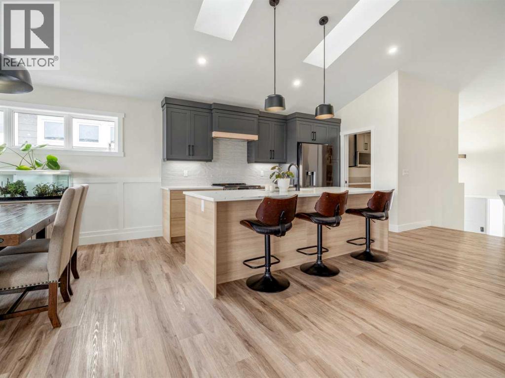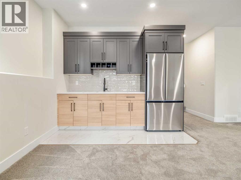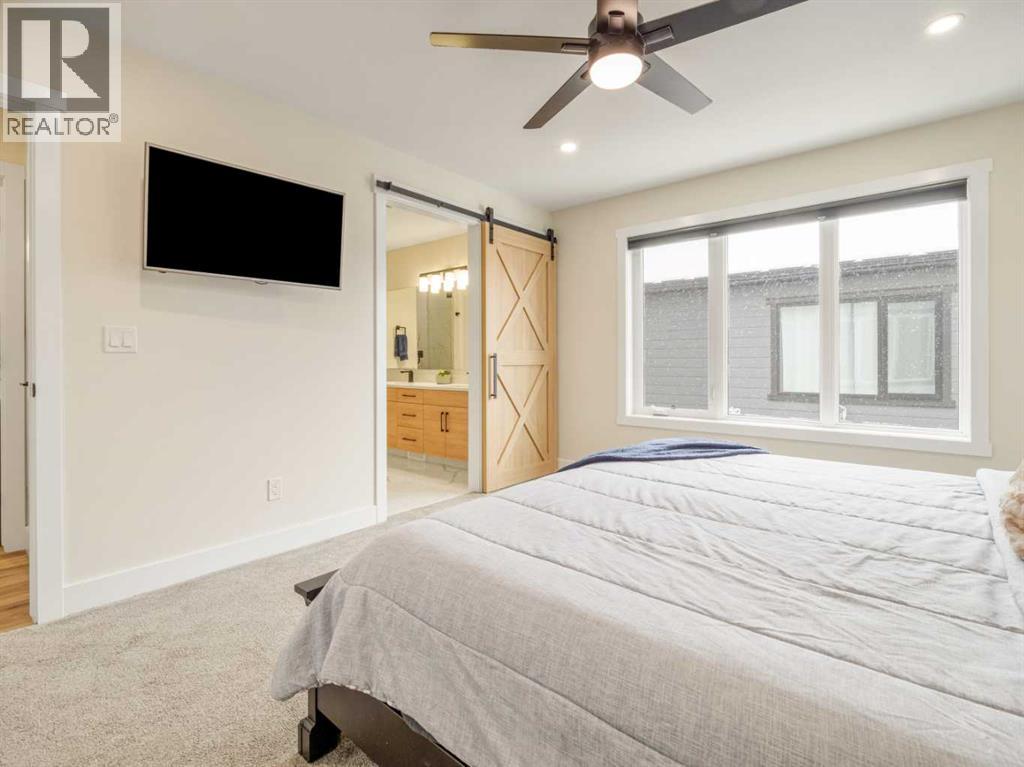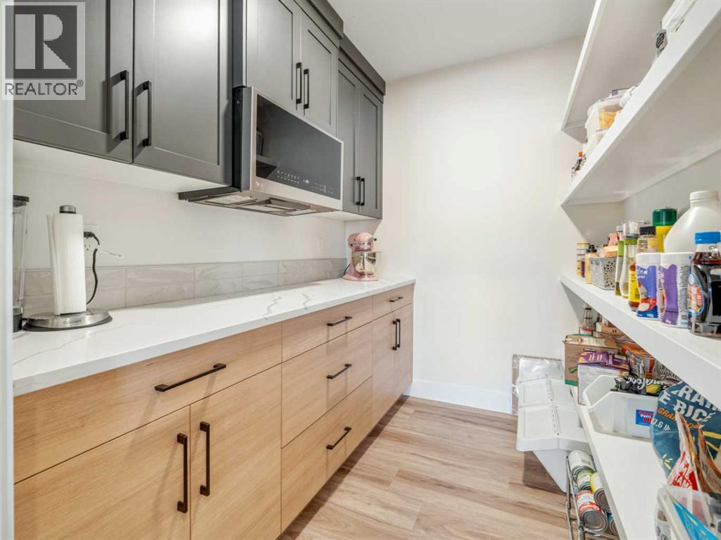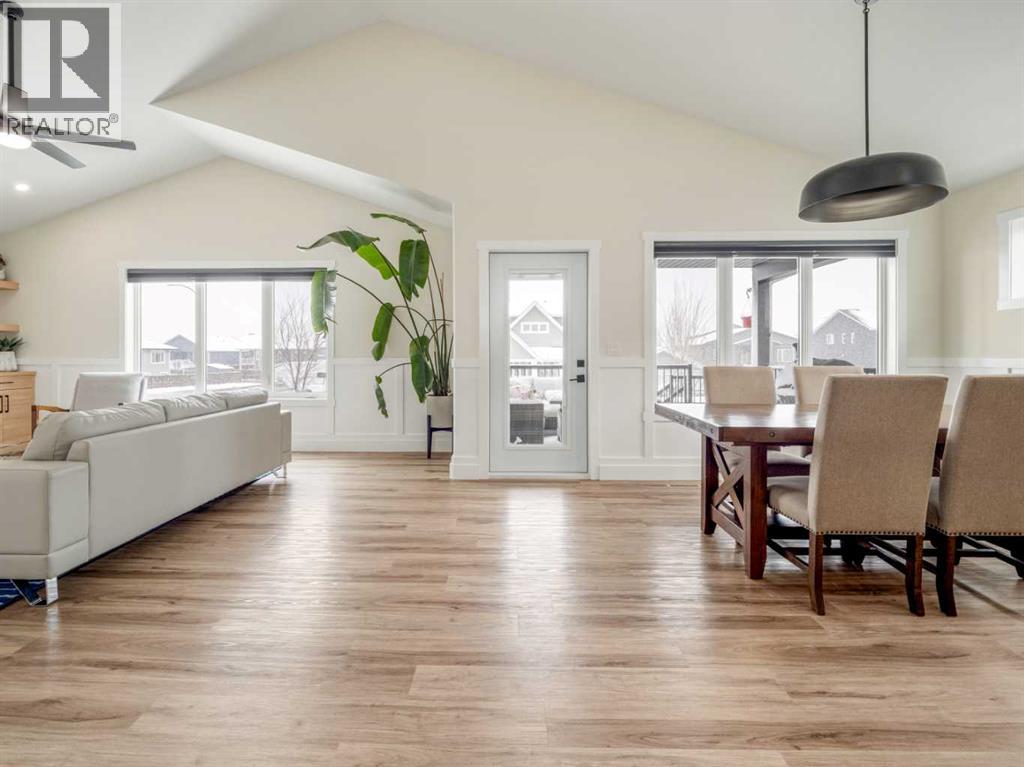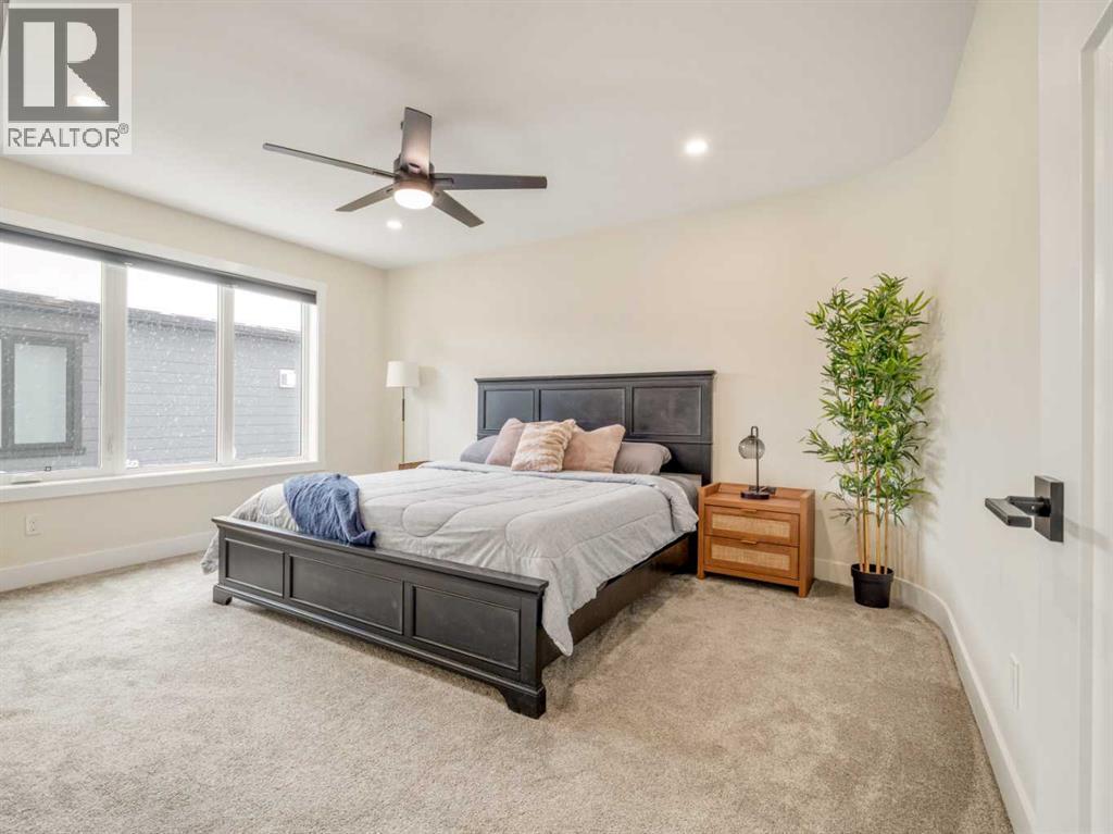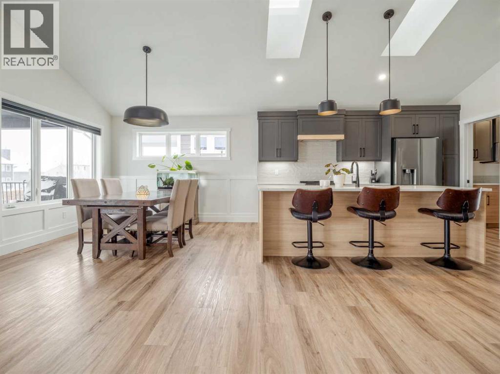 Incredible 2 year old large modified bi-level home in Cottonwood Estates originally built by Grizzly Ridge Developments! This 5 bed, 3.5 bath home has hardiplank exterior siding with stone accents, and a MASSIVE concrete front driveway that fits 6 vehicles! Heated garage is also a 26x29 and easily fits 2 more vehicles. Large welcoming entry. A half staircase to main floor showcases a large vaulted ceiling and vinyl plank flooring. Kitchen has upper grey upper cabinets, and lower lighter wood pattern. Kitchen has quartz counters, stainless steel appliances, and butler pantry with more cabinets and counterspace. Dining room is a good size and has large window and door to covered deck out back with gas line and water tap. Living room has custom built-in shelving and cabinets with gas fireplace and mantle centered on a feature wall with shiplap design. Main floor also has primary bedroom with ensuite that features double sinks, large tiled walk-in shower, separate toilet room, and walk-in closet with laundry machines. There is also another 2 piece bathroom on the main. Upper level above garage features a large bonus room with big hall closet, 2 big bedrooms, and a full bathroom with tub/shower combo. Walk-Out Basement with 9 foot ceilings is fully developed with wet bar featuring space for a full size fridge, family room with feature floor to ceiling stone wall surrounding the gas fireplace, and closet and door to covered patio out back. There are also 2 more large bedrooms each with their own walk-in closet, a full bathroom with tub/shower combo, and a laundry room(currently being used as a small office) with counter and cabinets. Yard is fenced and landscaped with a nice shed. Home has conveniences of central a/c and tankless hot water! This home is turn-key ready to move in and enjoy! (id:63190)