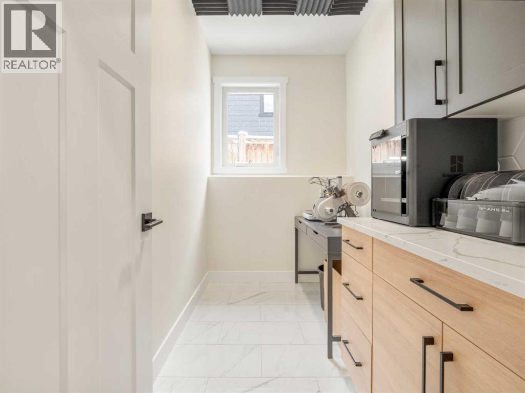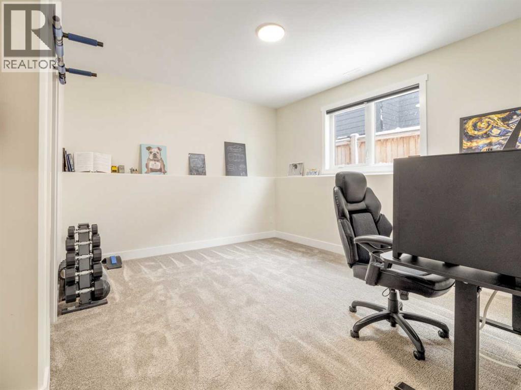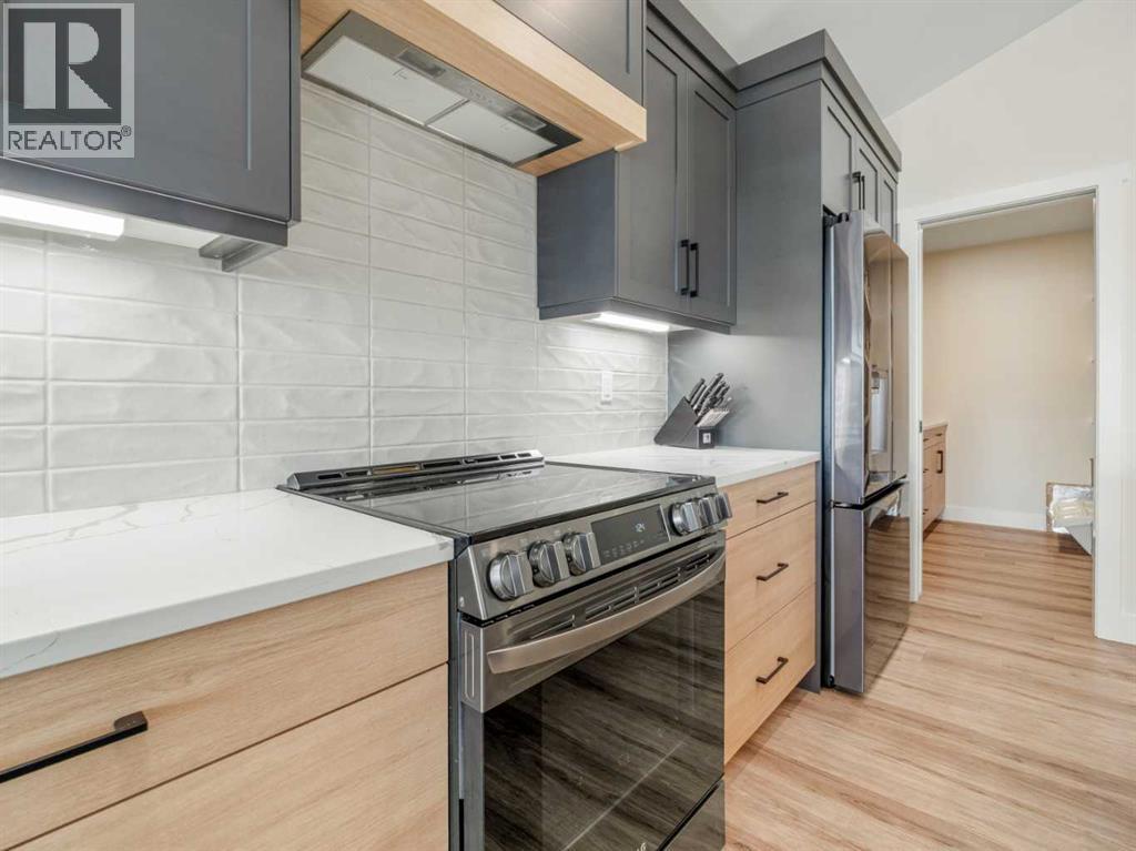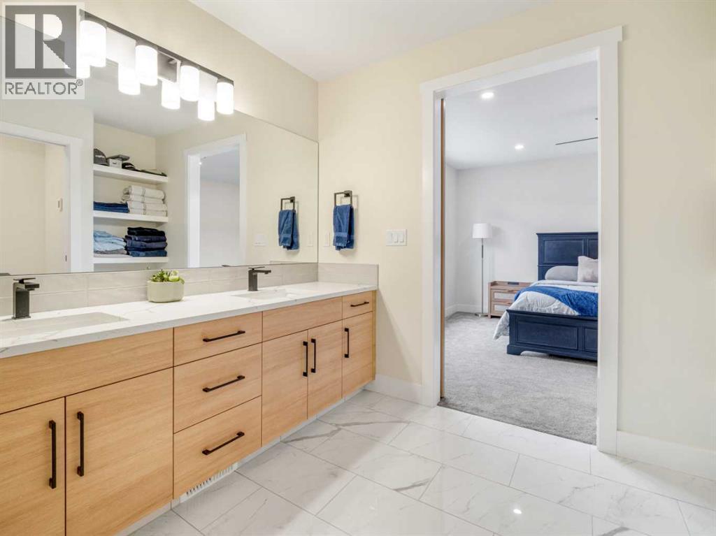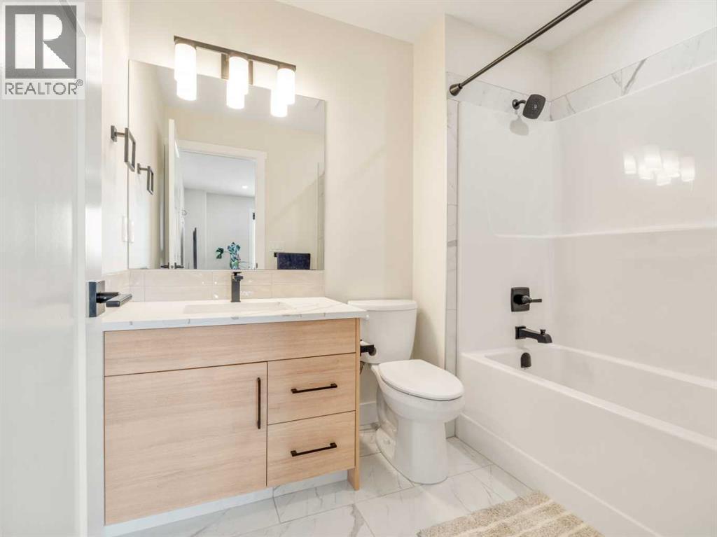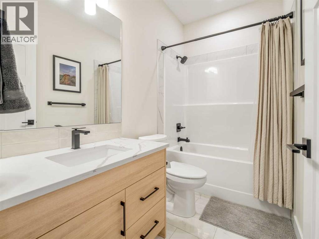Incredible 2 year old large modified bi-level home in Cottonwood Estates originally built by Grizzly Ridge Developments! This 5 bed, 3.5 bath home has hardiplank exterior siding with stone accents, and a MASSIVE concrete front driveway that fits 6 vehicles! Heated garage is also a 26x29 and easily fits 2 more vehicles. Large welcoming entry. A half staircase to main floor showcases a large vaulted ceiling and vinyl plank flooring. Kitchen has upper grey upper cabinets, and lower lighter wood pattern. Kitchen has quartz counters, stainless steel appliances, and butler pantry with more cabinets and counterspace. Dining room is a good size and has large window and door to covered deck out back with gas line and water tap. Living room has custom built-in shelving and cabinets with gas fireplace and mantle centered on a feature wall with shiplap design. Main floor also has primary bedroom with ensuite that features double sinks, large tiled walk-in shower, separate toilet room, and walk-in closet with laundry machines. There is also another 2 piece bathroom on the main. Upper level above garage features a large bonus room with big hall closet, 2 big bedrooms, and a full bathroom with tub/shower combo. Walk-Out Basement with 9 foot ceilings is fully developed with wet bar featuring space for a full size fridge, family room with feature floor to ceiling stone wall surrounding the gas fireplace, and closet and door to covered patio out back. There are also 2 more large bedrooms each with their own walk-in closet, a full bathroom with tub/shower combo, and a laundry room(currently being used as a small office) with counter and cabinets. Yard is fenced and landscaped with a nice shed. Home has conveniences of central a/c and tankless hot water! This home is turn-key ready to move in and enjoy! (id:63190)
