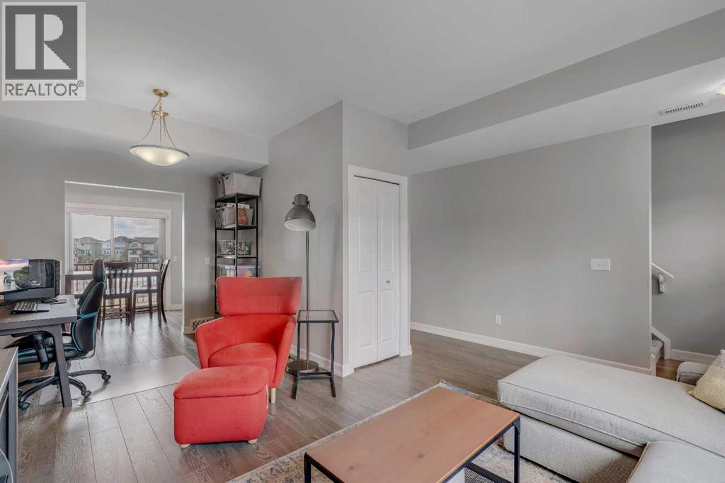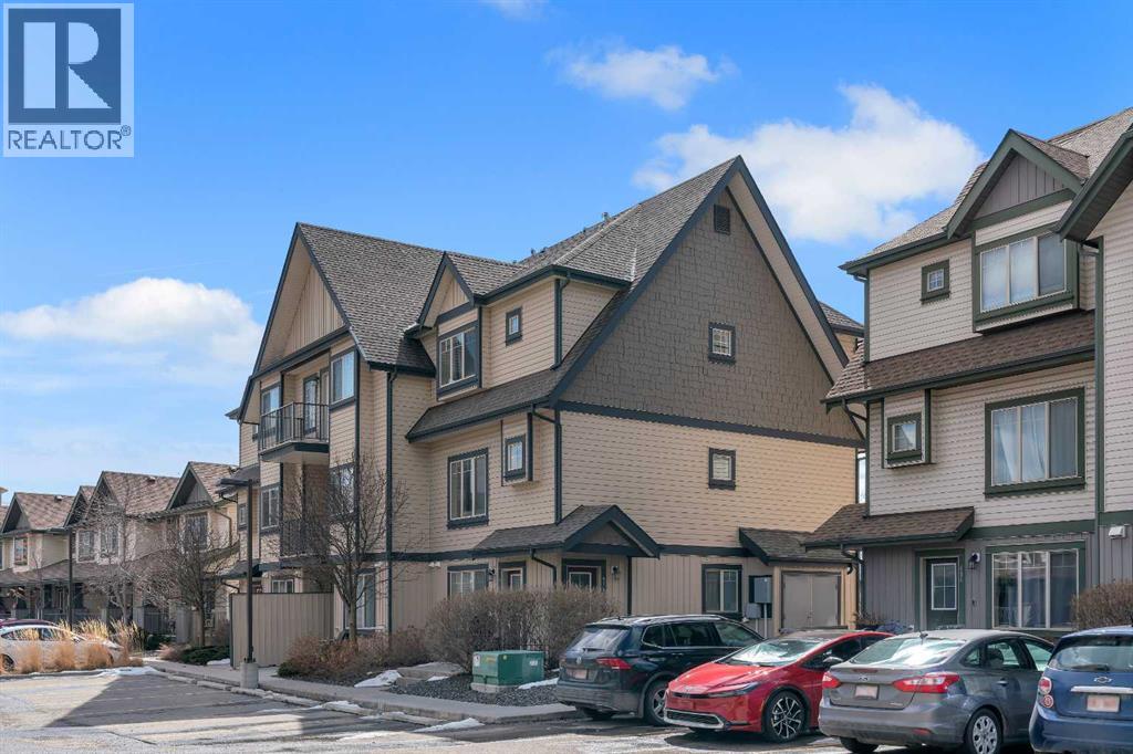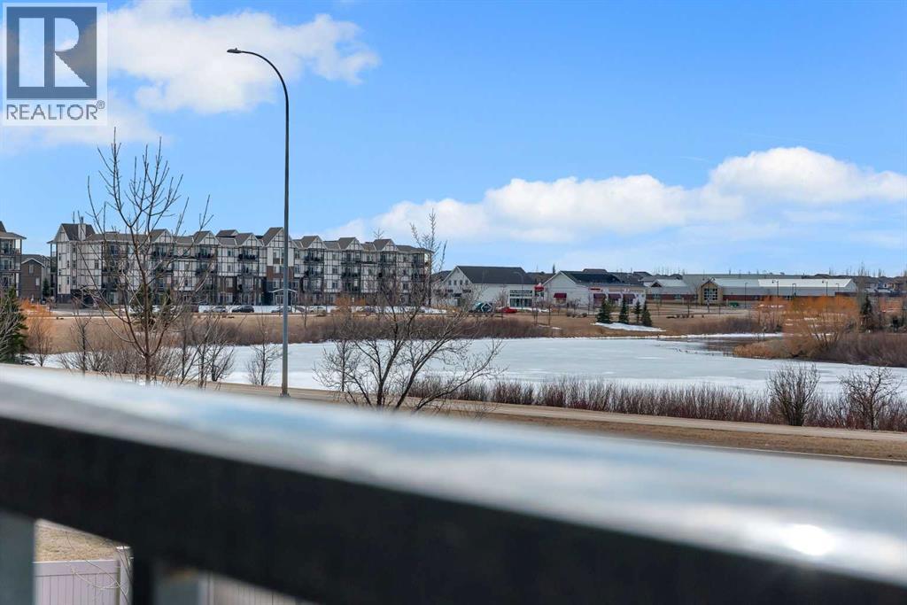 Welcome to Copperfield Village! This move-in ready end unit townhome offers over 1,180 sq. ft. of thoughtfully designed living space. The open concept main level features 9 ft ceilings, a modern kitchen with peninsula island, granite countertops, tile backsplash, and stainless-steel appliances. The adjacent dining area opens onto a private deck with peaceful pond views, perfect for relaxing or entertaining. The spacious living room is filled with natural light, while a versatile flex space provides the ideal spot for a home office or additional dining area. A convenient powder room and insuite laundry complete the main level. Upstairs, you’ll find a generous primary bedroom with a walk-in closet and private ensuite, along with two additional bedrooms, one featuring its own upper deck, and a full main bathroom. This home also includes an outdoor parking stall right out front and a separate storage unit. Enjoy low maintenance living with affordable condo fees that cover snow removal and exterior maintenance. Ideally located with easy access to Deerfoot and Stoney Trail, schools, shopping, and amenities. Perfect for first-time buyers, young professionals, or investors, this home offers exceptional value in a great community. (id:63190)
