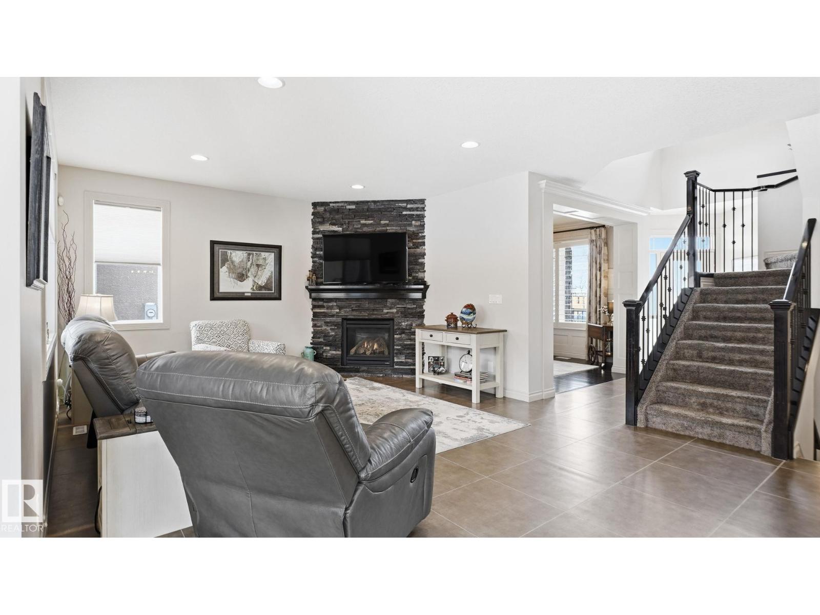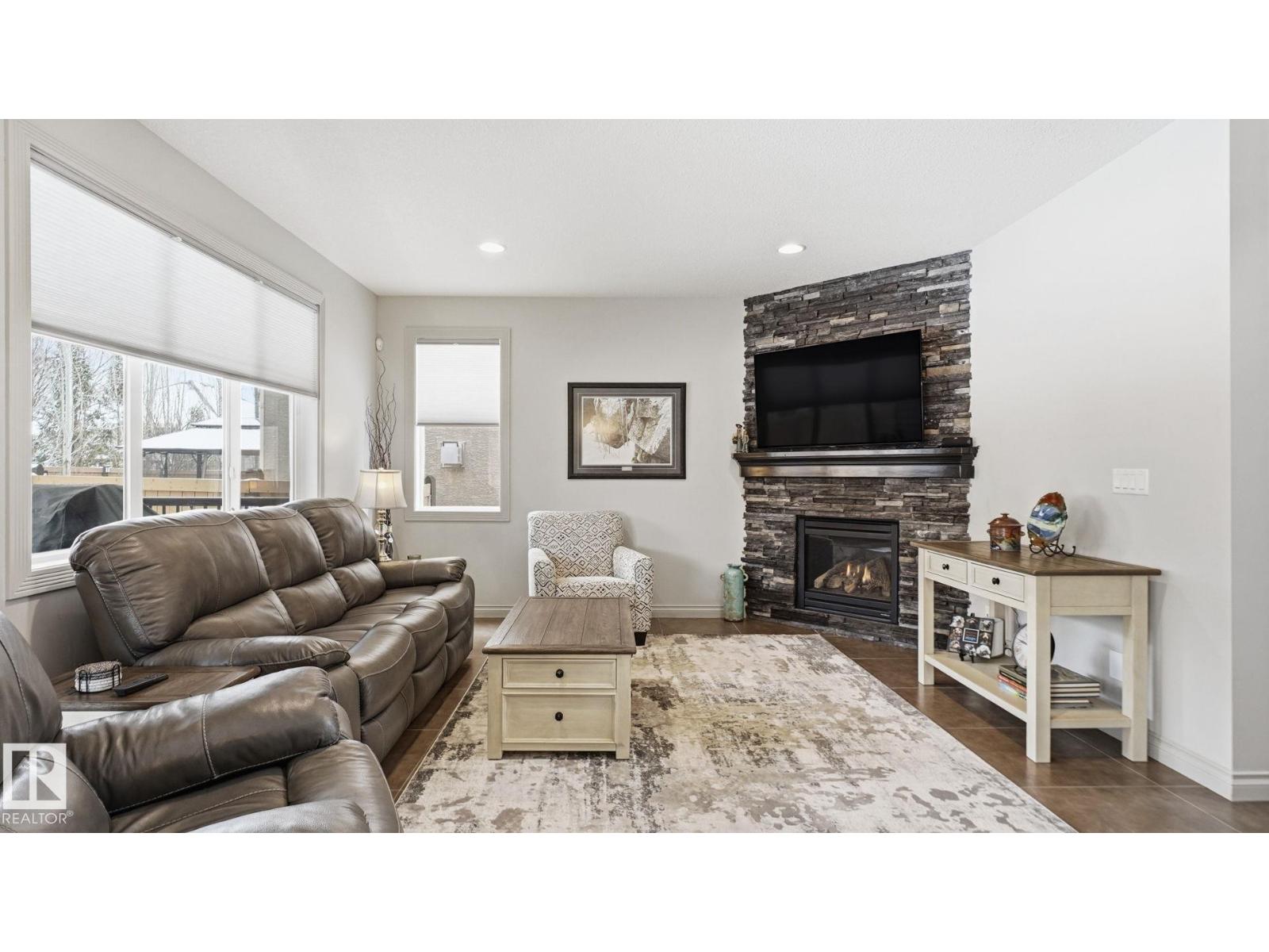 Former Showhome Alert! Rare opportunity to own this immaculate 2-story residence, built for luxurious, open-concept living. This stunning family home features 4 generously sized bedrooms and 4 beautifully appointed bathrooms. The main floor is highlighted by a cozy gas fireplace, while the upper level includes a convenient laundry room and a versatile bonus room, perfect for a media centre or children's play area. The living space is further expanded by a fully finished basement, offering endless possibilities. Outside, discover your private retreat: a meticulously maintained, mature backyard featuring a covered patio, ideal for year-round entertaining. Complete with a double attached garage, this property seamlessly blends elegance and superior functionality. Experience premium living in a prime location. (id:63190)