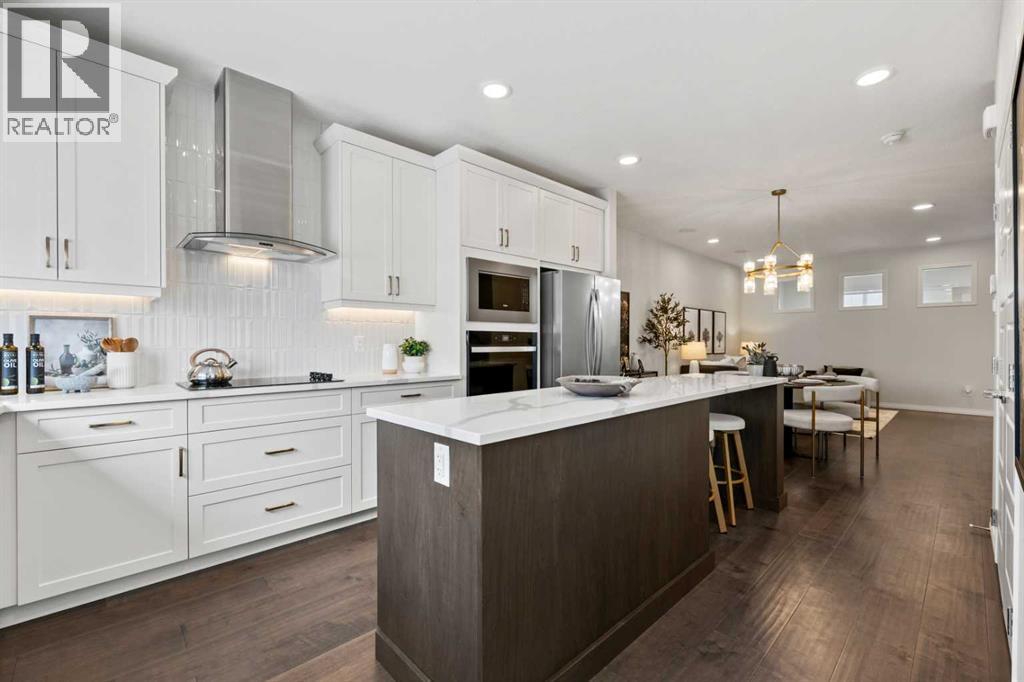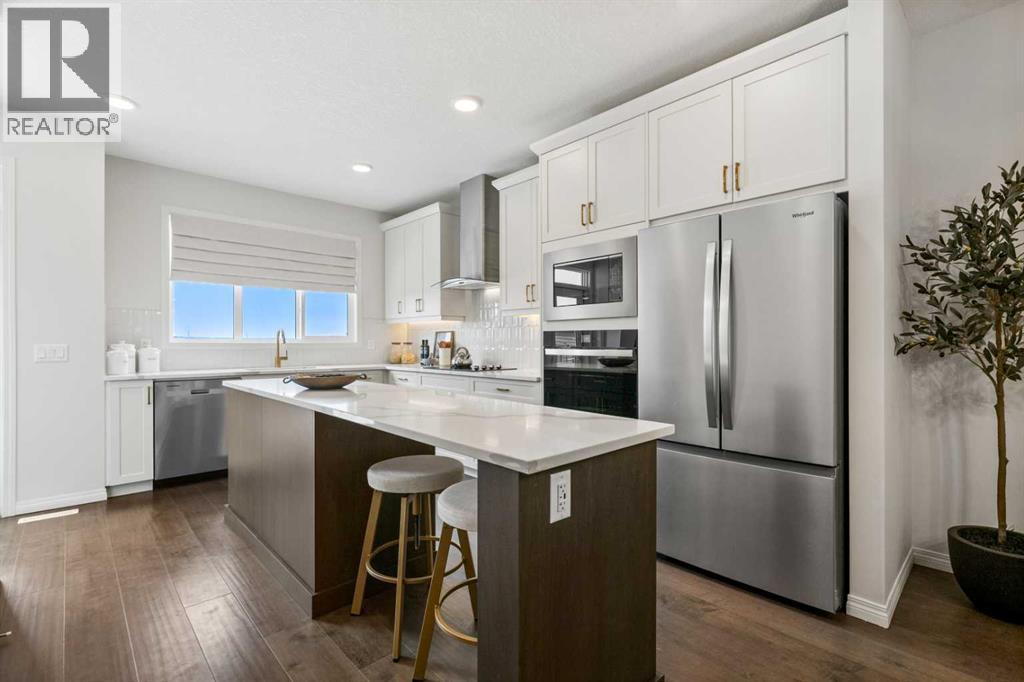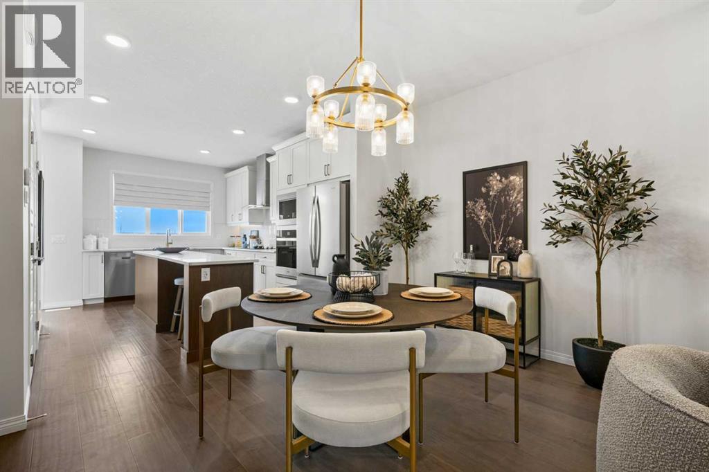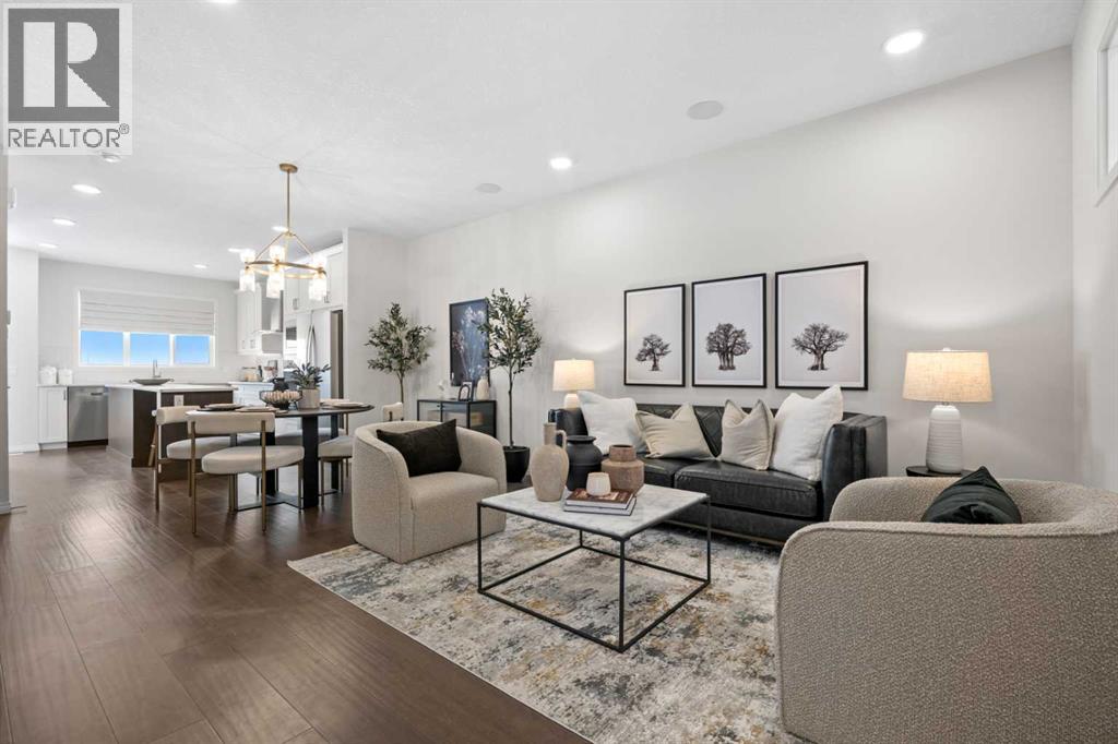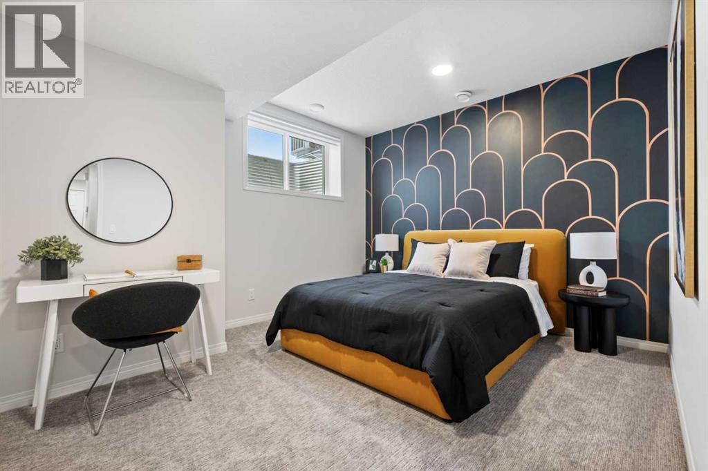 Welcome to 135 Huxland Road NE, a beautifully designed brand-new two-storey home offering over 1,813 sq. ft. of thoughtfully planned living space plus a fully developed 2-bedroom legal basement suite, ideal for multigenerational living or generating rental income. Perfectly situated on an east-facing homesite near green space, recreation areas, and within walking distance to a future school, this property offers both comfort and long-term value in a growing Calgary community. This home may be available with a builder leaseback program, offering the opportunity to earn rental income while the property is maintained as a professionally cared-for showhome. Lease terms and details available upon request.The main level features a bright open-concept layout enhanced by large windows that allow natural light to fill the home throughout the day. The kitchen is designed with both style and functionality in mind, showcasing 42” upper cabinetry with crown moulding, quartz countertops, a spacious island with breakfast bar seating, built-in oven, electric cooktop, and modern finishes. The adjoining dining and living areas provide an ideal space for both everyday living and entertaining. The electric fireplace in the great room creates a warm focal point, adding comfort and ambiance. A versatile main floor flex room offers flexibility for a home office, guest room, or study space, complemented by a convenient full bathroom. The rear deck includes a BBQ gas line, perfect for outdoor gatherings.Upstairs, the thoughtfully designed upper level offers three spacious bedrooms plus a central bonus room, providing valuable additional living space for relaxing or family activities. The primary retreat features a walk-in closet and a luxurious 5-piece ensuite complete with glass and tile shower, soaker tub, and double vanity. The secondary bedrooms each include walk-in closets, offering ample storage and functionality. A full laundry room on the upper level enhances everyday convenien ce.The fully finished basement includes a self-contained 2-bedroom legal secondary suite with its own kitchen, living space, full bathroom, and separate exterior entry, providing an excellent opportunity for rental income or private accommodations for extended family.Additional highlights include central air conditioning, high ceilings, vinyl plank flooring, quartz counters throughout, modern lighting, and off-street parking. This home has been designed as a no animal and no smoking property, offering a clean and well-maintained environment.Located close to parks, playgrounds, walking and biking pathways, shopping, and future schools, this home offers an exceptional balance of lifestyle and convenience. With its functional layout, income potential, and quality craftsmanship, 135 Huxland Road NE presents an outstanding opportunity to own a new home designed for modern living. (id:63190)