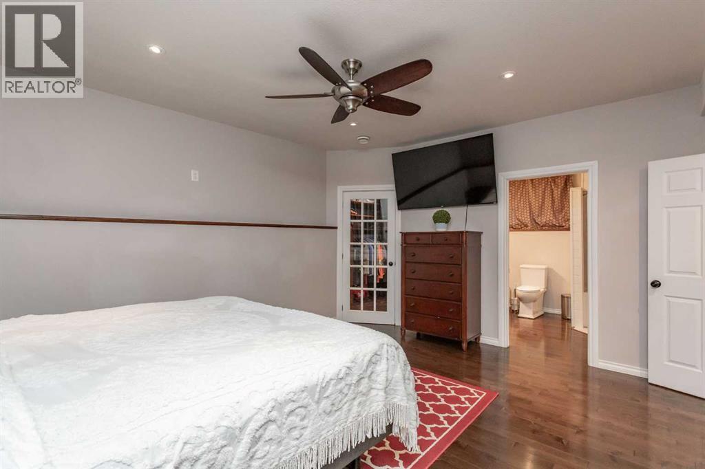 This well-kept bi-level in Timberlands checks a lot of boxes for first-time buyers and young families. Built in 2011 and sitting at 1,212 sq ft above grade, it's the kind of home that feels solid without trying too hard — a functional layout, and a location that genuinely delivers on the neighbourhood front. You're walking distance to an elementary school, the public library, parks and playgrounds, and everyday shopping including grocery and restaurants.The main floor opens with a spacious tiled entryway before stepping up into a bright living room with hardwood floors and a large window that pulls in plenty of natural light. The kitchen has dark maple cabinetry, a island, and counters with a stylish epoxy finish that gives it a bit of a custom feel. The dining area is a good size with a view to the backyard. The primary bedroom has hardwood floors, a larger closet, and connects directly to a 3-piece ensuite with a stand-up shower. The second bedroom is carpeted, while the third features hardwood and a built-in cabinet with a murphy bed — a setup that works equally well as a guest room or a dedicated home office.Downstairs is where things get interesting. The basement is finished to a high standard with hardwood throughout, tall ceilings, and pot lights. The living area is set up as a media room, complete with a projector setup. The bedroom is oversized with a very generous walk-in closet and its own 3-piece bathroom featuring a deep soaker tub — a setup that functions almost like a second primary suite. The laundry room is a good size with cabinets and counter space.Outside, the stamped concrete walkways wrap around both sides of the home leading to a wood deck and patio in the backyard, all enclosed with a wood fence. There's a large gravel parking pad in the back. The high-efficiency furnace and hot water tank were both replaced in 2021, so the mechanical side of things is in great shape. (id:63190)