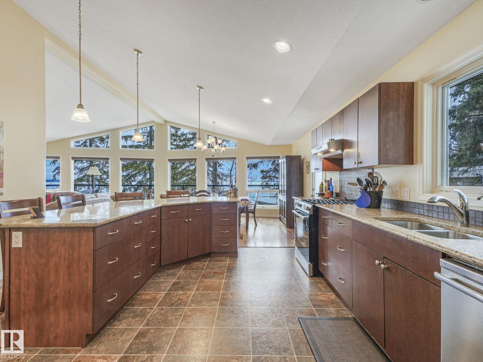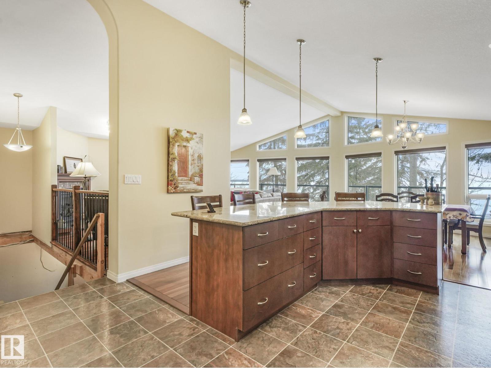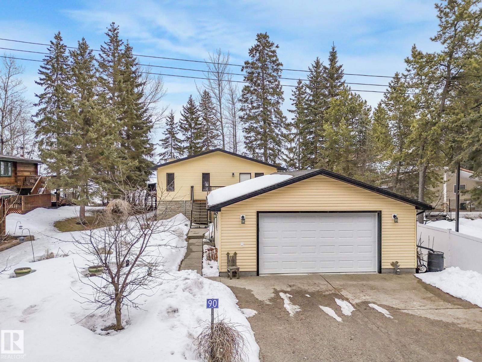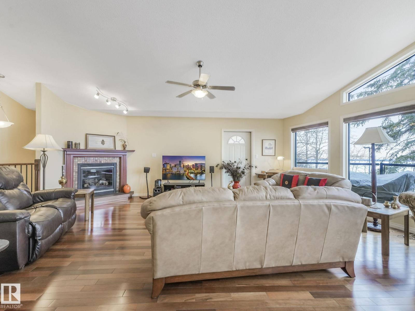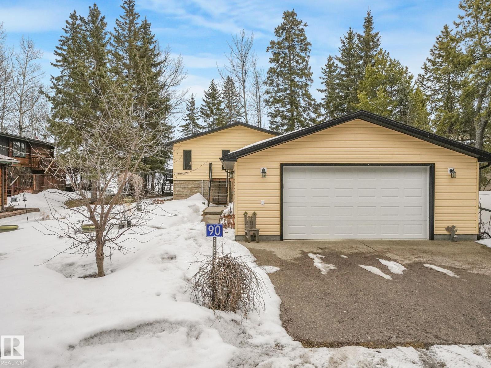 LAKE FRONT!!! Discover the hidden gem of Mitchell Beach! Where opportunities like this are rare! Now available for the first time from the original owners, this exceptional waterfront property at 90 2001 Twp Rd 474 is truly something special. This stunning 1,655 sq walkout bungalow offers soaring vaulted ceilings, an open concept layout, and a beautifully designed chef’s kitchen and gas fireplace. The spacious great room is flooded with natural light from massive lakeside windows. The main level includes 2 bedrooms and 2 bathrooms, while the massive unfinished basement with in floor heating, tall ceilings and multiple plumbing rough ins offers endless possibilities to customize your dream space. Step outside and enjoy not one, but two expansive decks overlooking the water. The property also features a boathouse and a double detached oversized garage. Whether you’re searching for a weekend retreat or a full-time lakeside residence, this home has been thoughtfully designed with no detail overlooked. (id:63190)